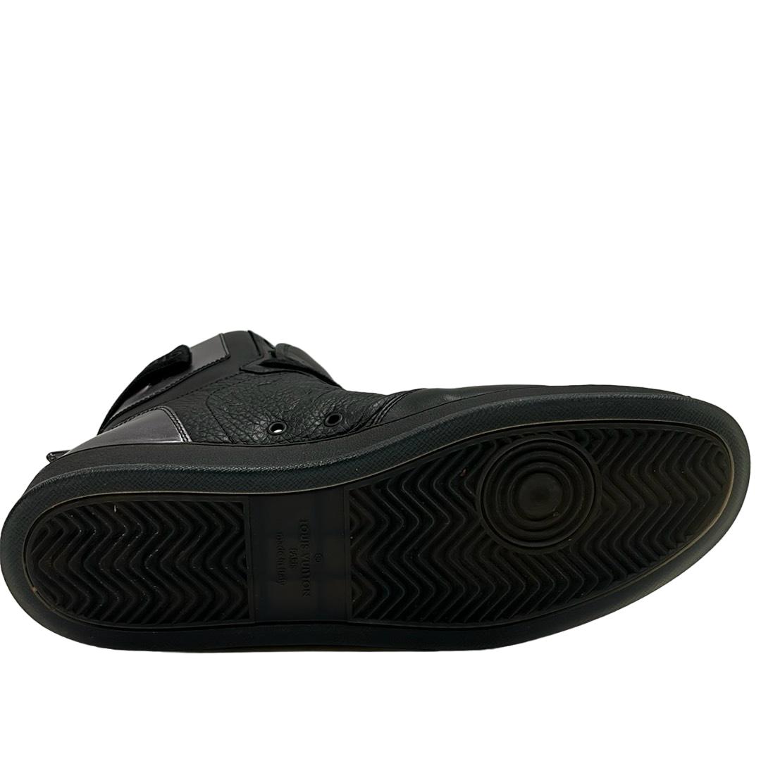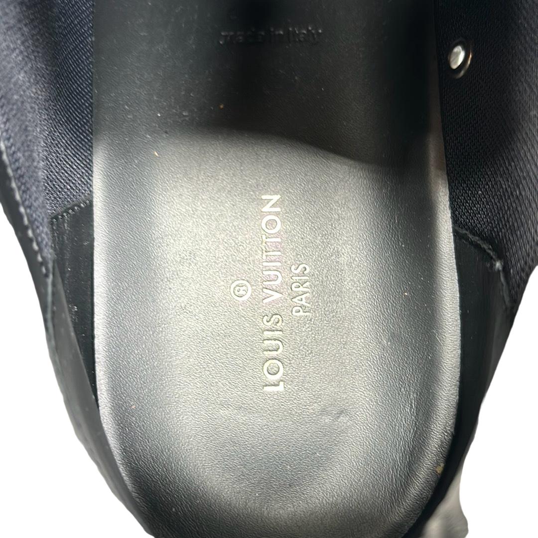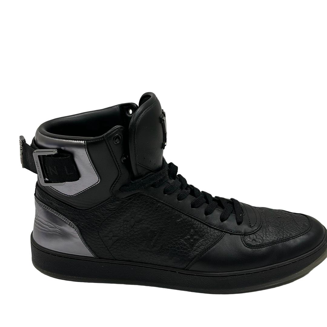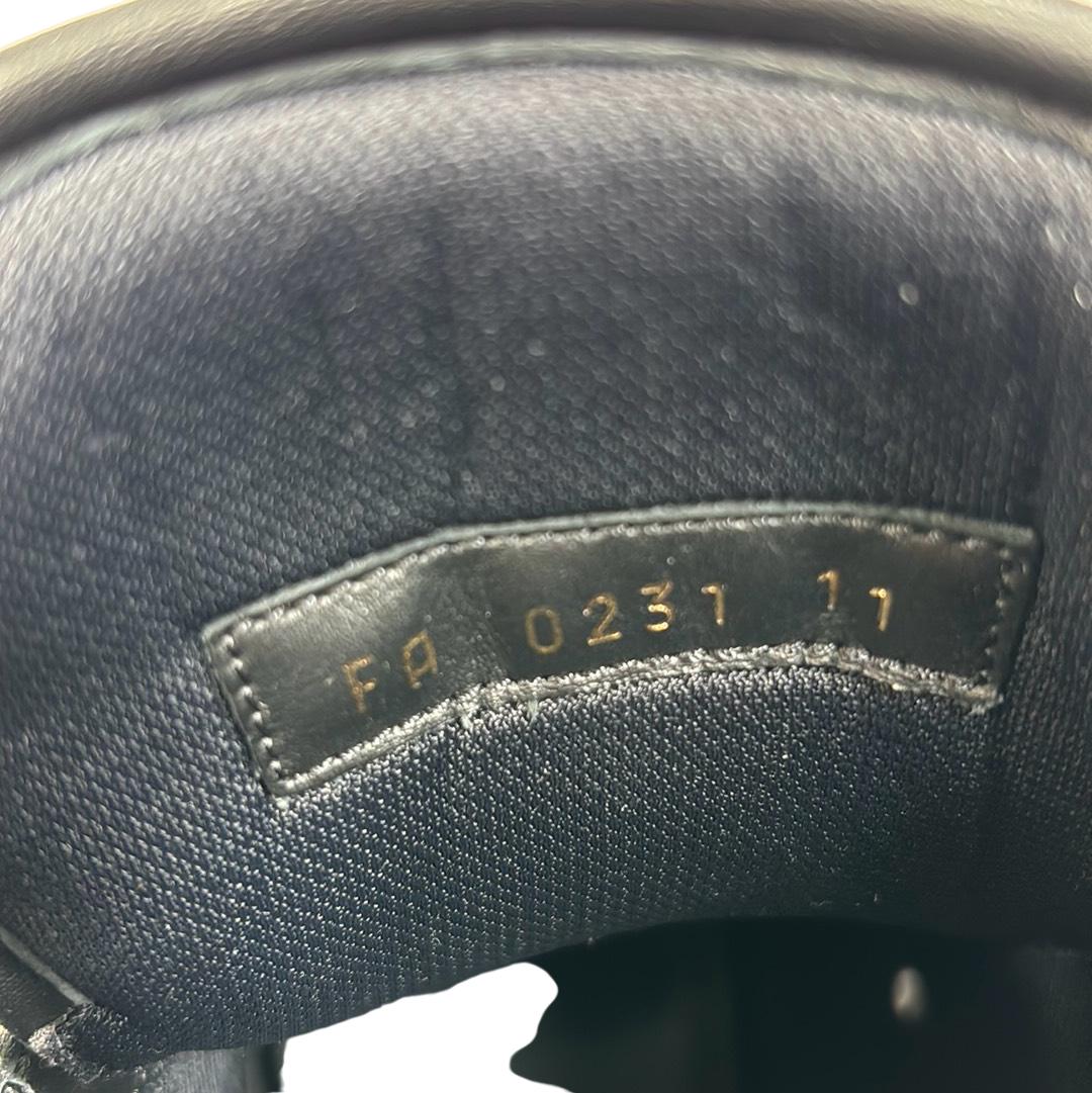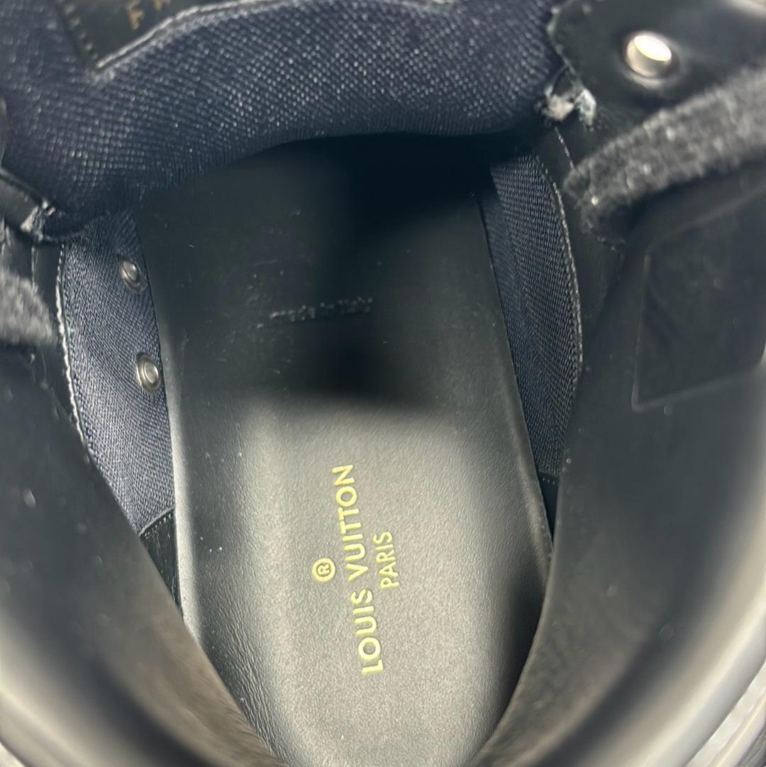 Indulge in luxury with the Louis Vuitton FA0231 Hi Top Rivoli Sneakers, a stunning blend of style and sophistication in black and silver. Crafted in Italy, these sneakers showcase the iconic Louis Vuitton logo, making them an emblem of elegance. Perfect for those who appreciate high fashion, these shoes come with their original box to complete your premium purchase.