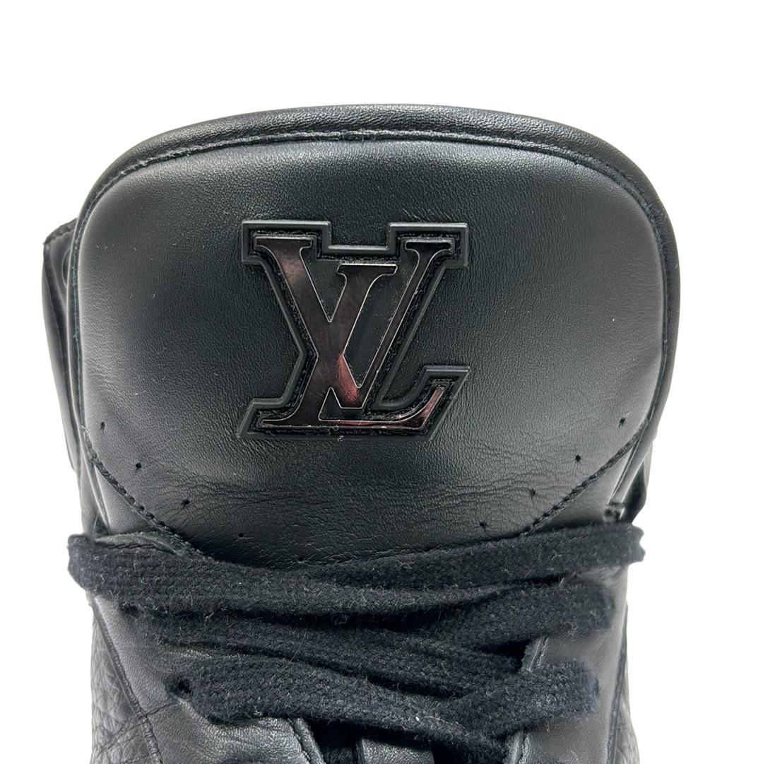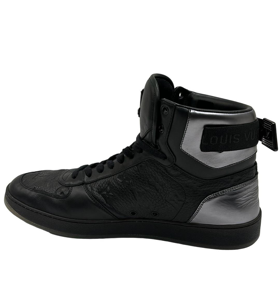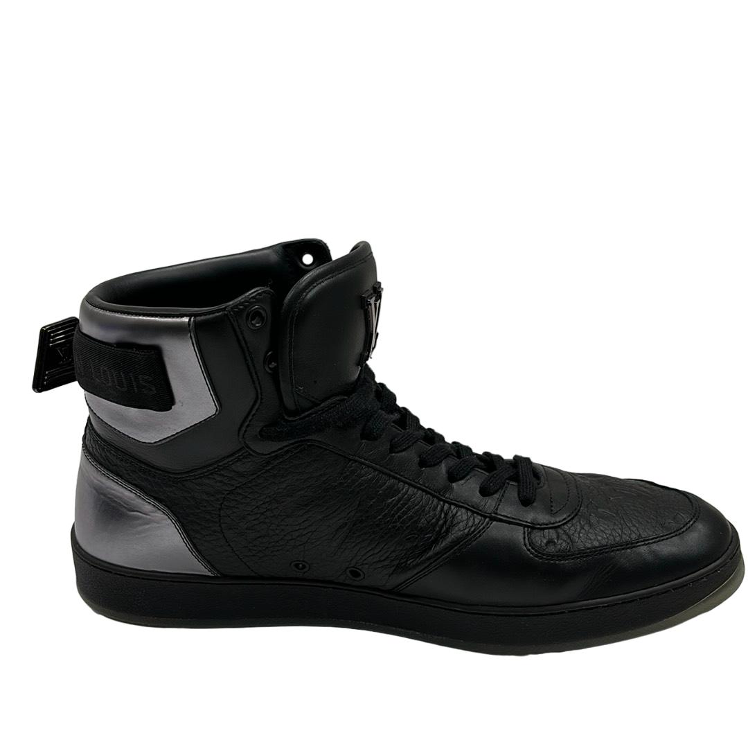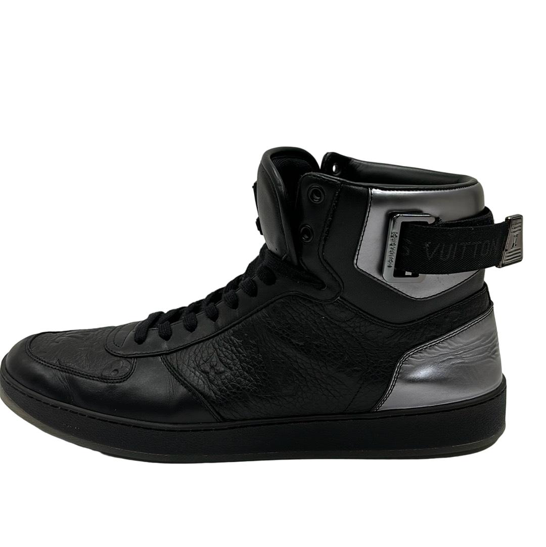Indulge in luxury with the Louis Vuitton FA0231 Hi Top Rivoli Sneakers, a stunning blend of style and sophistication in black and silver. Crafted in Italy, these sneakers showcase the iconic Louis Vuitton logo, making them an emblem of elegance. Perfect for those who appreciate high fashion, these shoes come with their original box to complete your premium purchase.