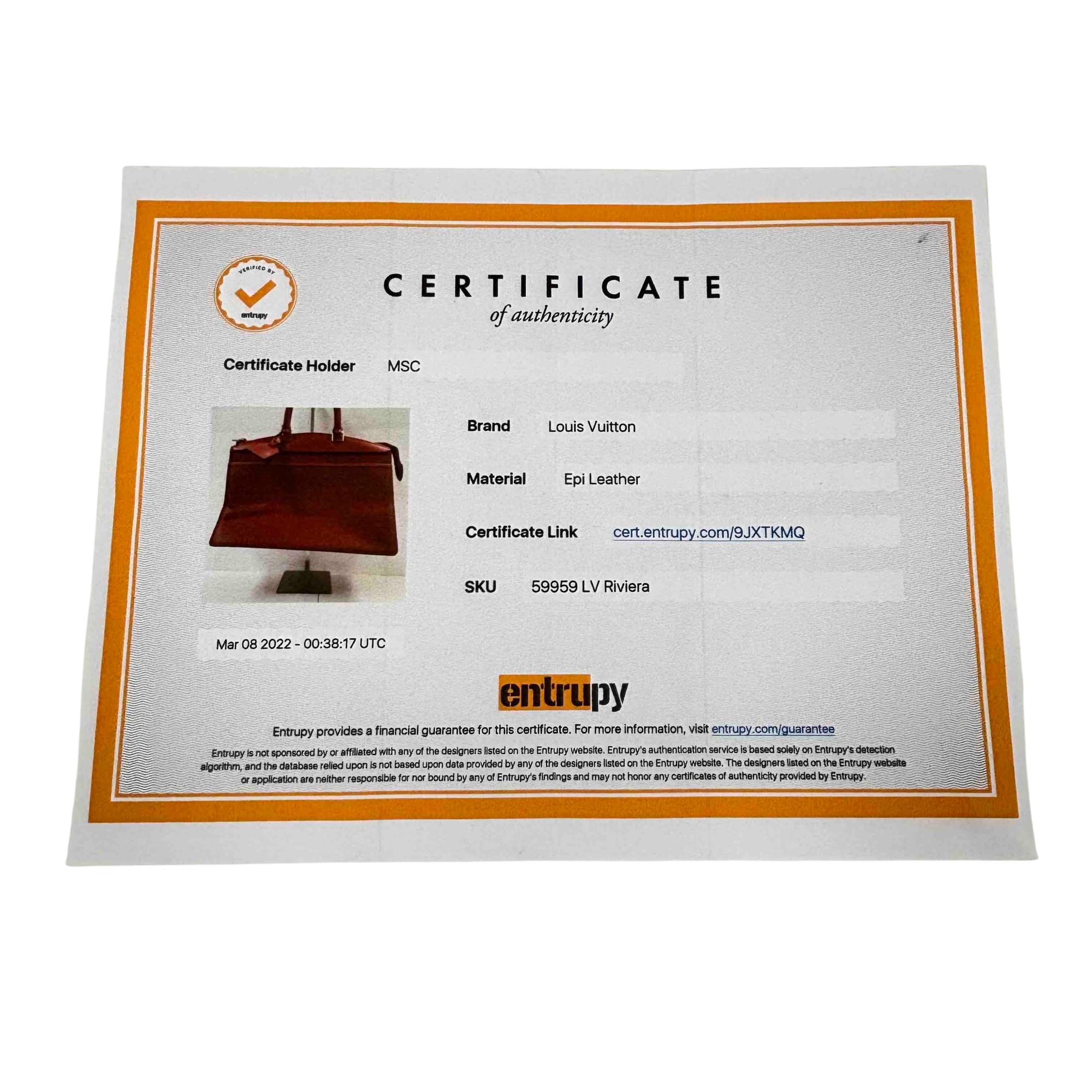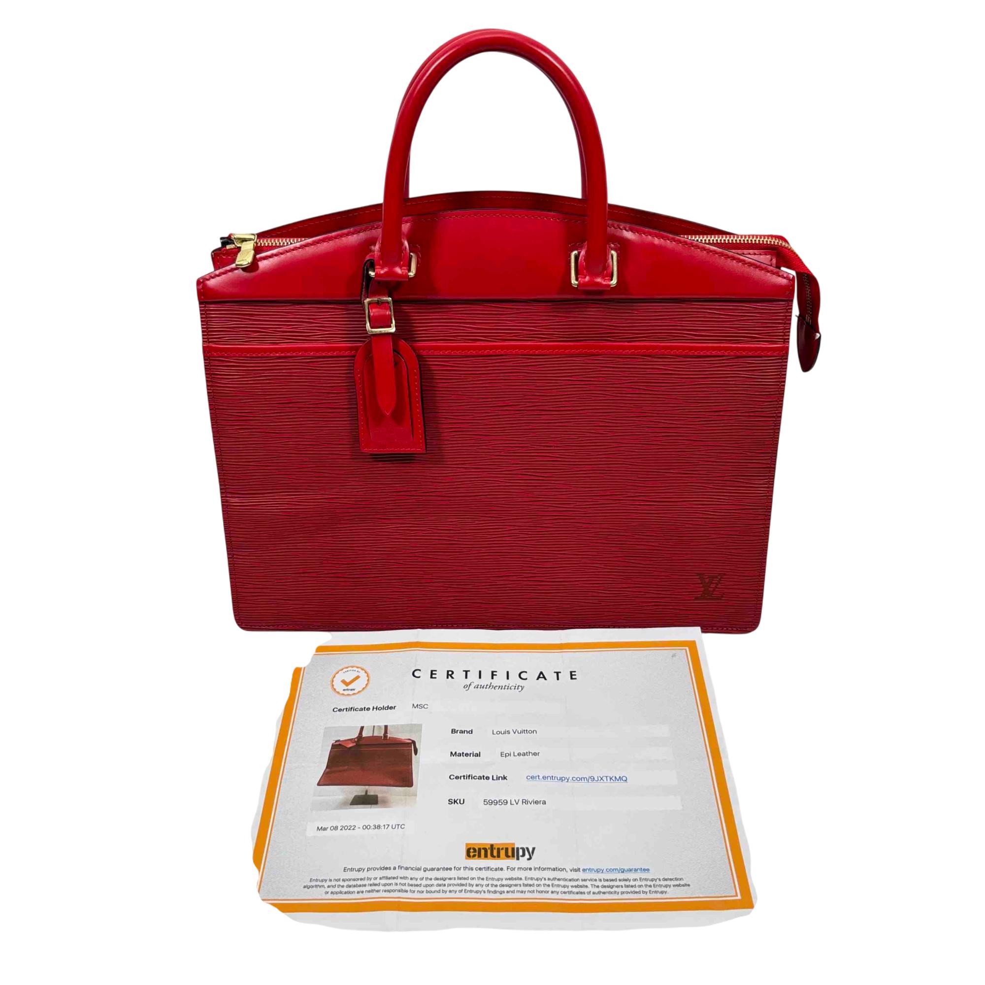 Elevate your style with this stunning Louis Vuitton LV Riviera Handbag, crafted from luxurious red Epi leather. This sophisticated accessory features a sleek design, complete with a certificate of authenticity ensuring its genuine quality. Perfect for any occasion, this handbag effortlessly combines elegance and functionality.