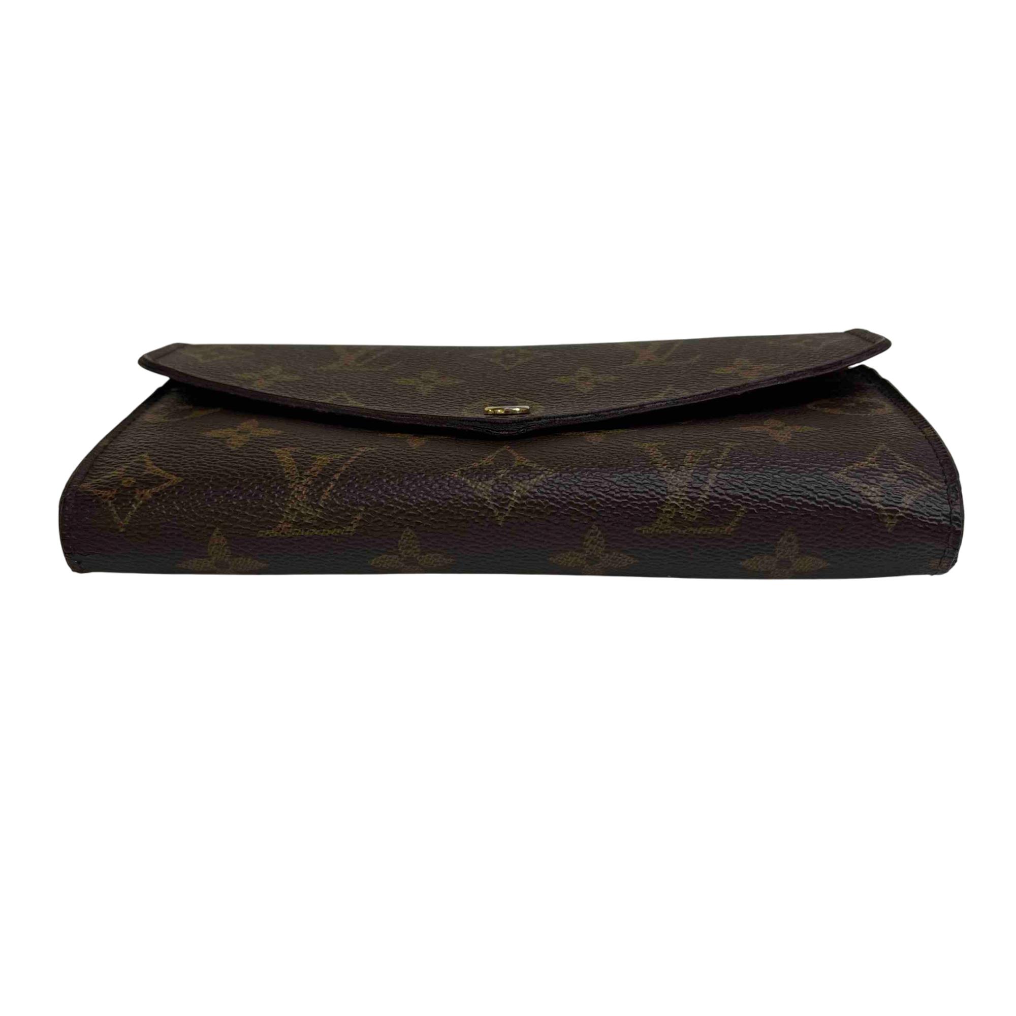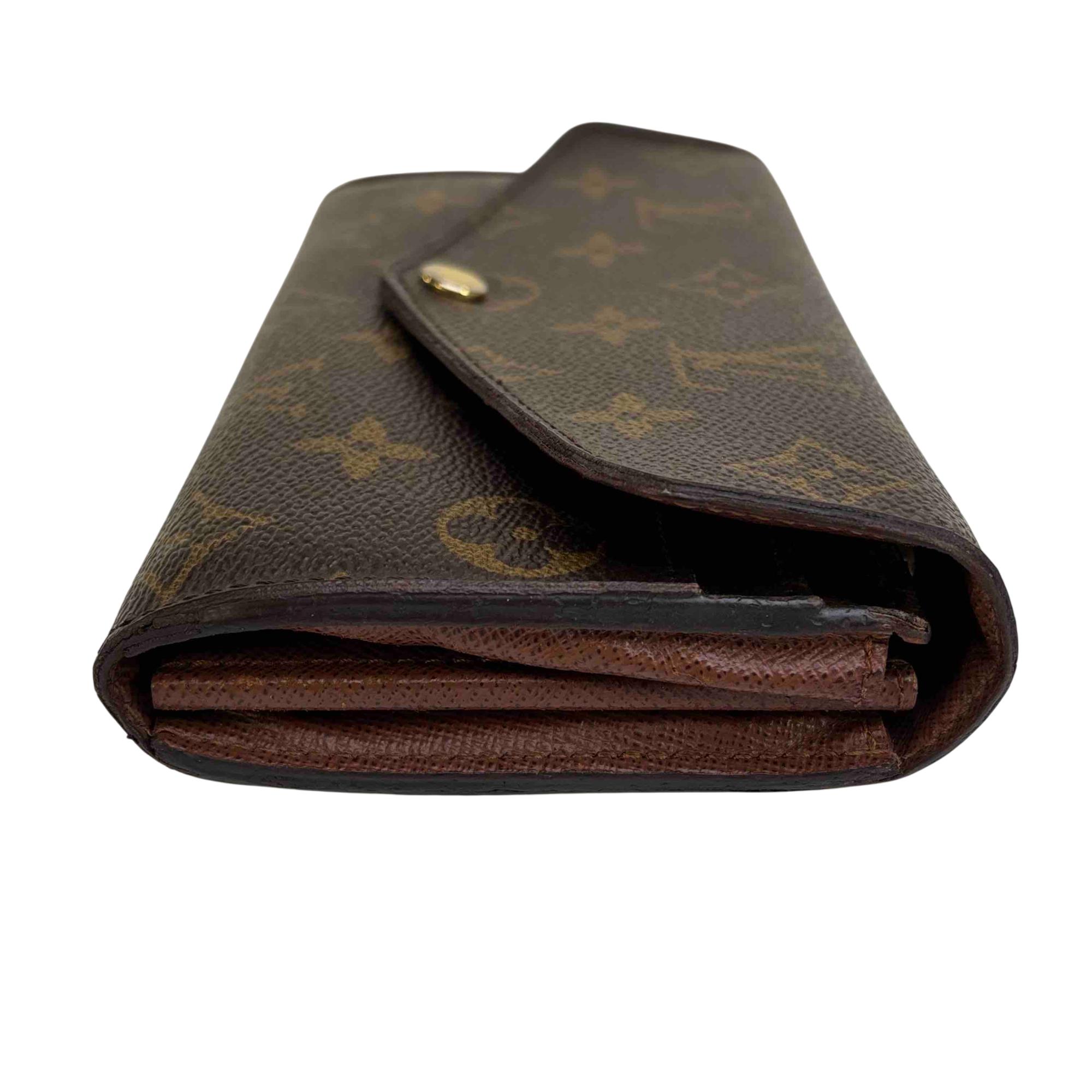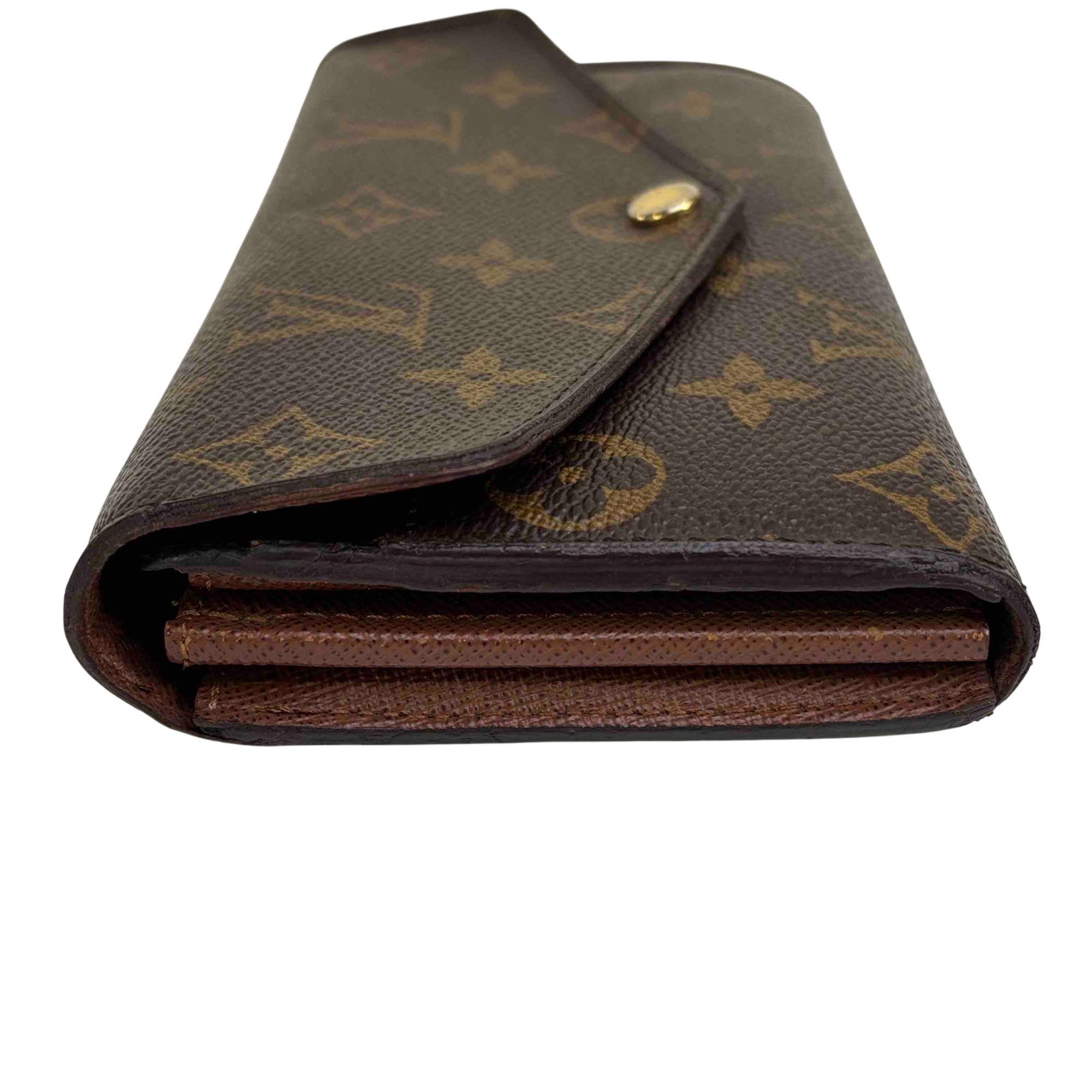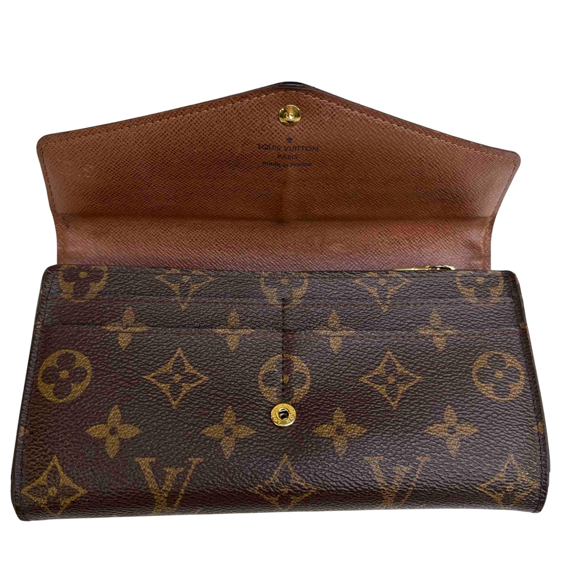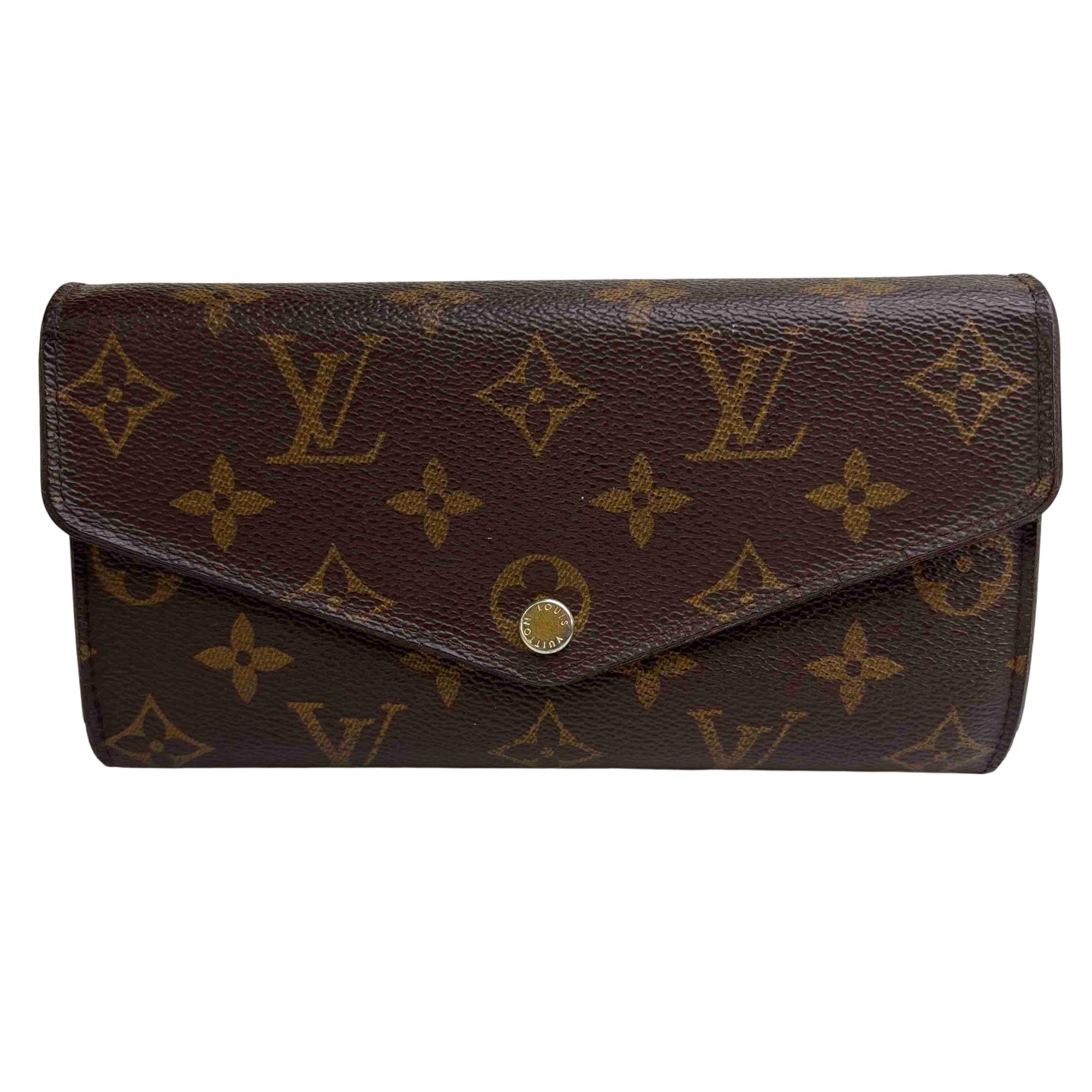 One of Louis Vuitton's classic models, the Sarah wallet combines Monogram canvas with a grained-leather lining. Its elegant envelope-style design conceals a spacious interior with two large compartments, a central zipped coin pocket and multiple card slots. The perfect choice to keep all essentials in one safe place.