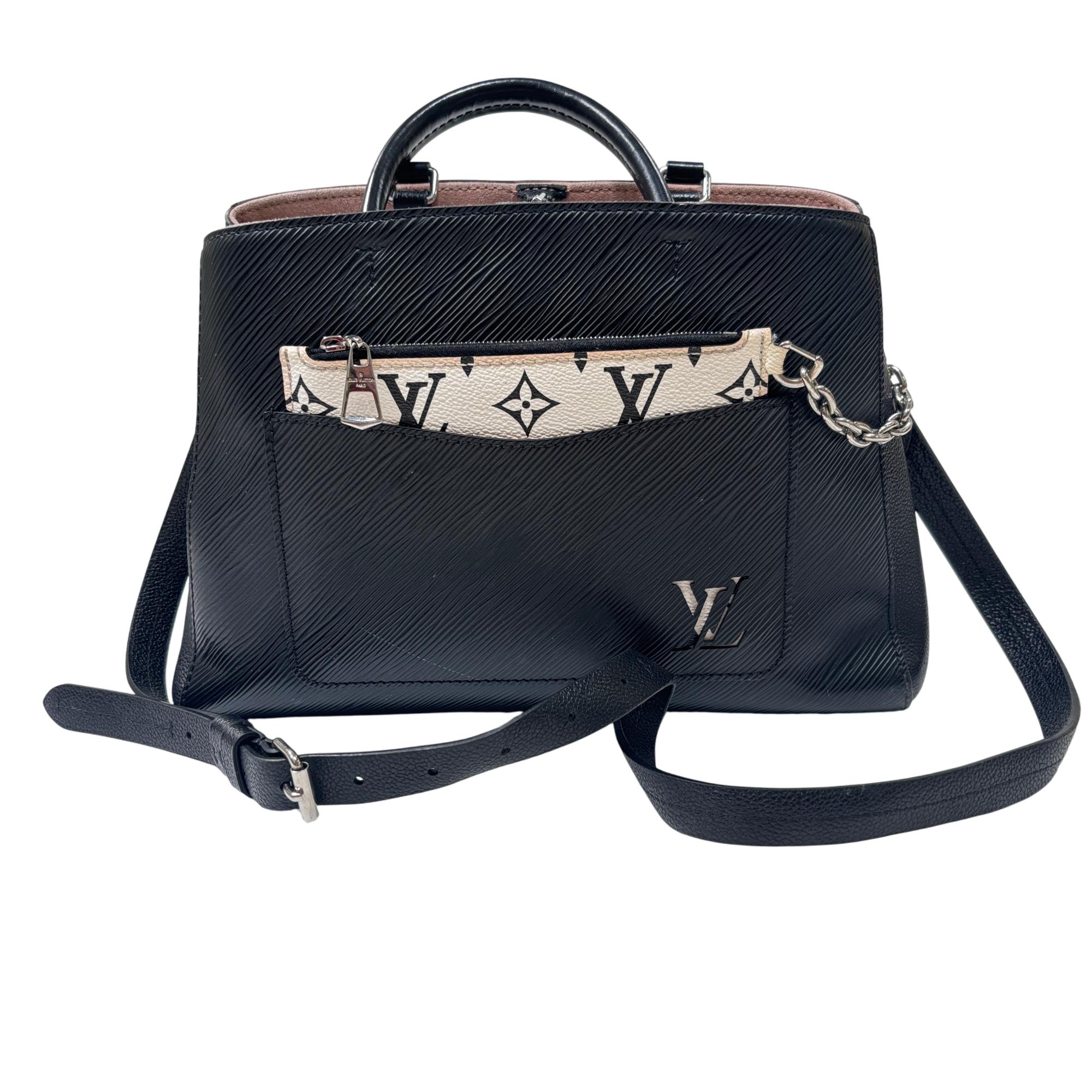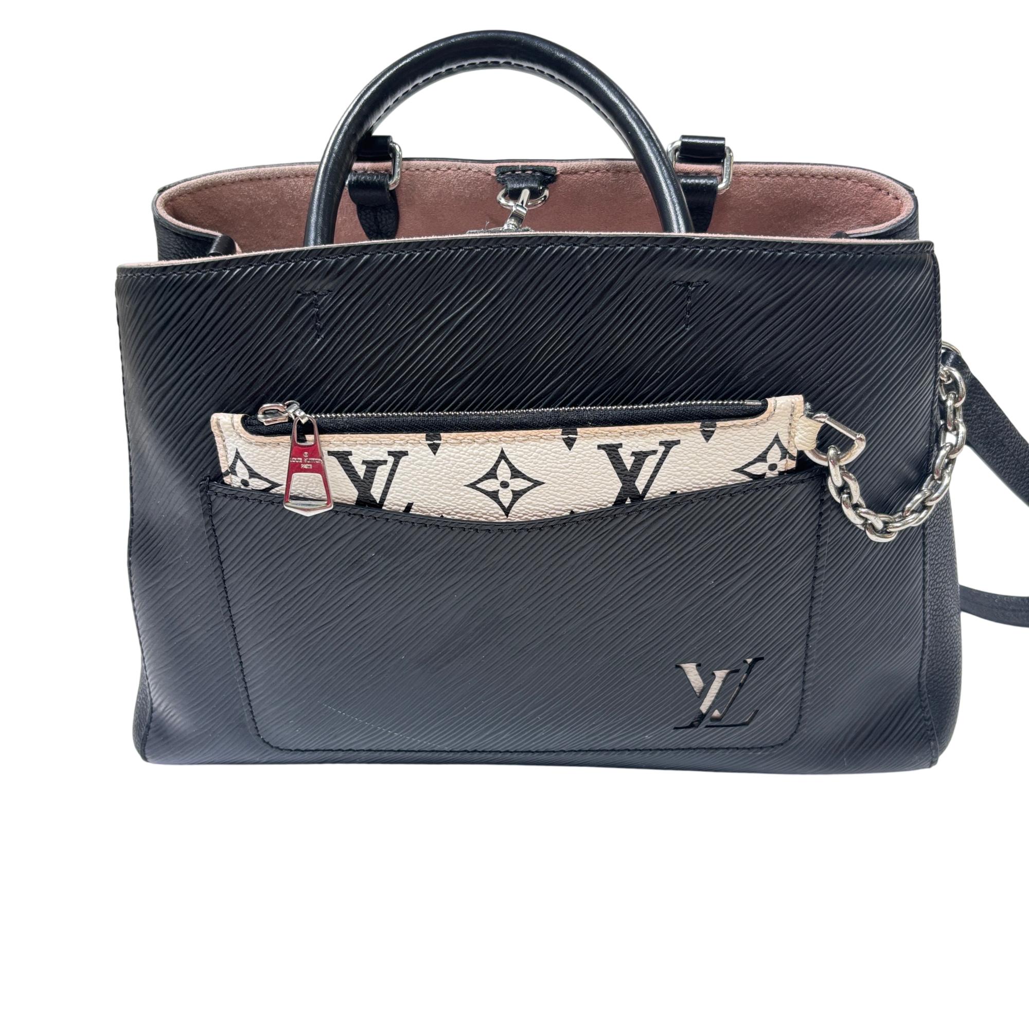 Louis Vuitton Marelle MM Epi Leather Tote Shoulder Bag – Black features a sleek design crafted from durable Epi leather, known for its textured, water-resistant finish. This medium-sized tote offers a sophisticated look with clean lines, a sturdy handle, and subtle detailing that enhances its timeless style. Ideal for everyday use, it combines functionality with elegant fashion appeal.