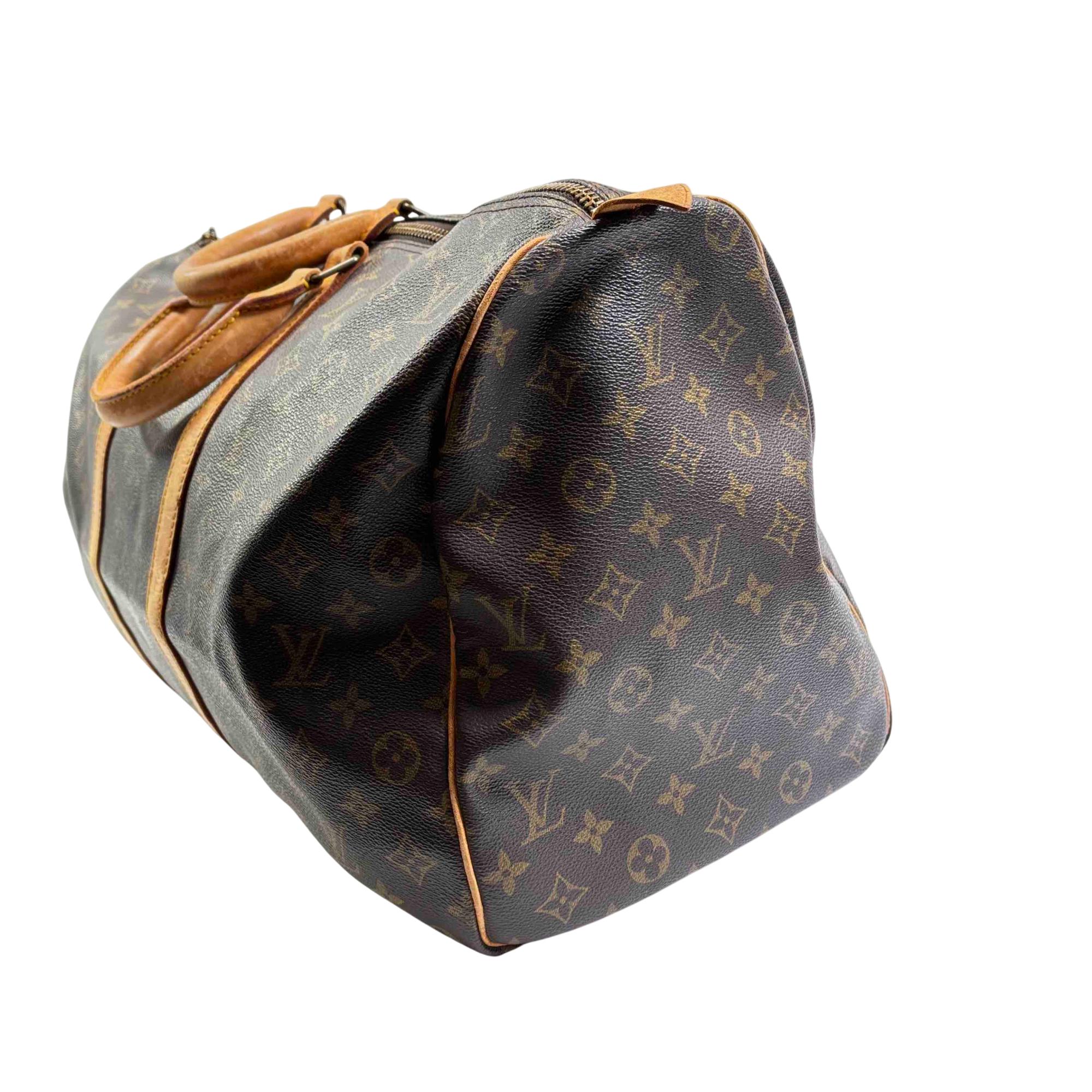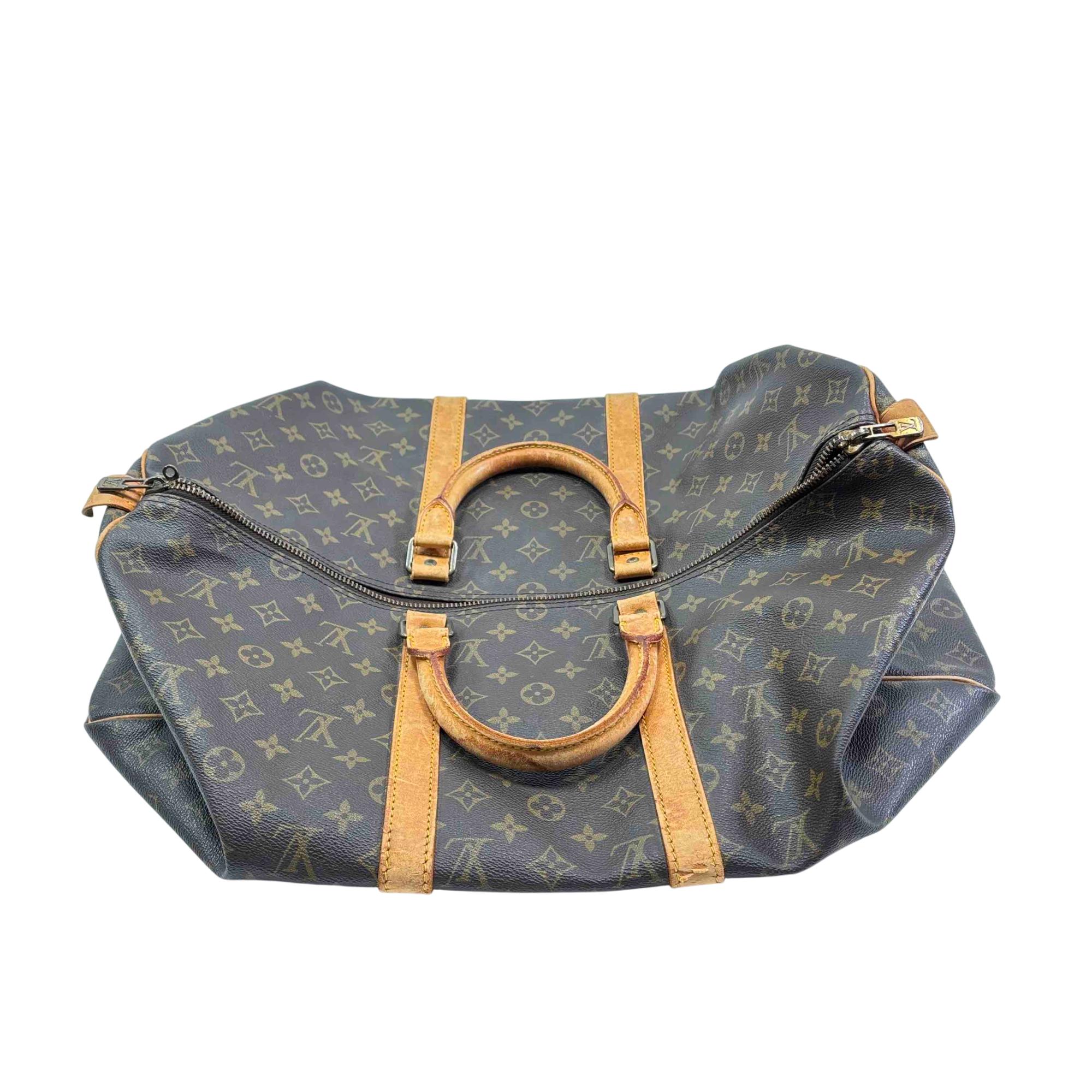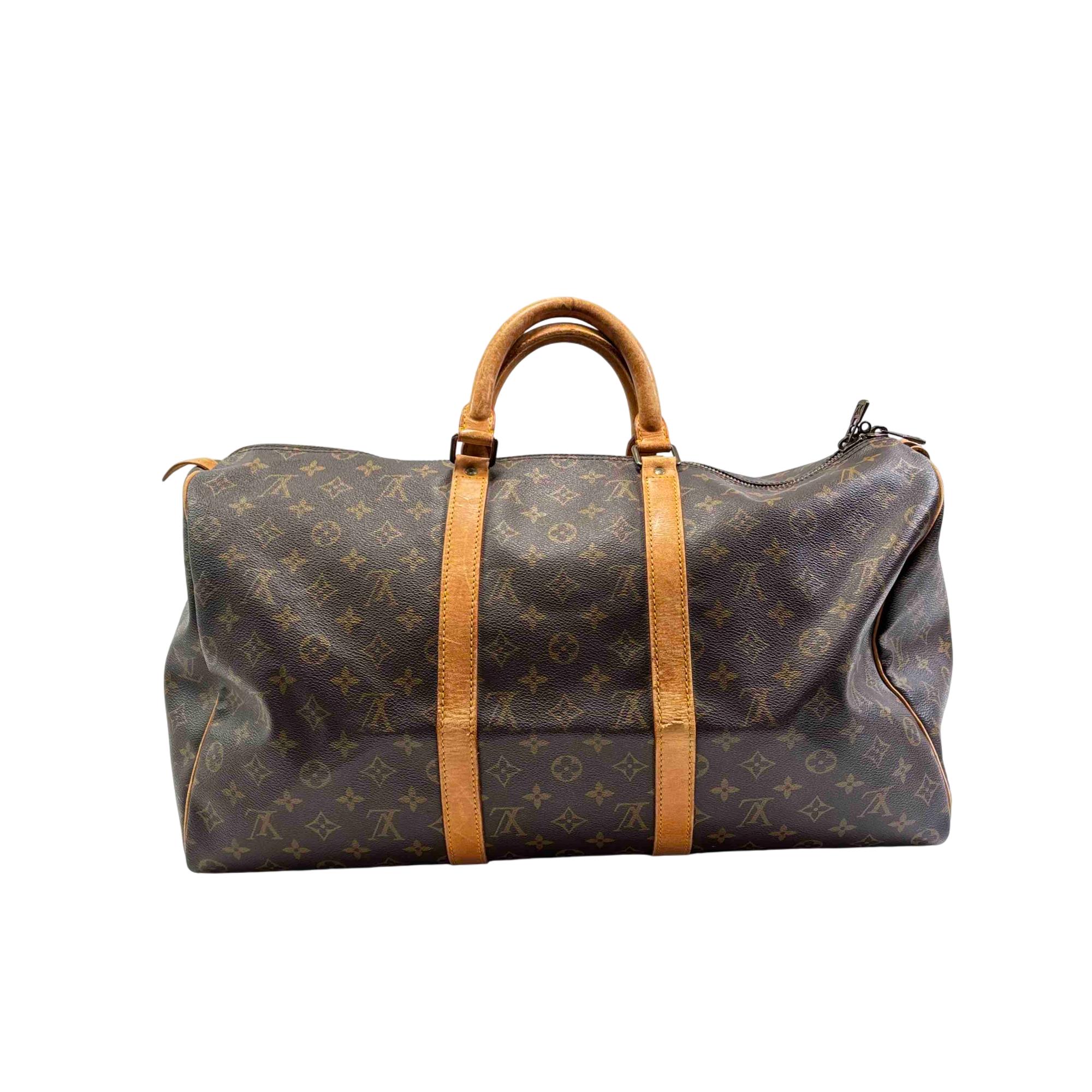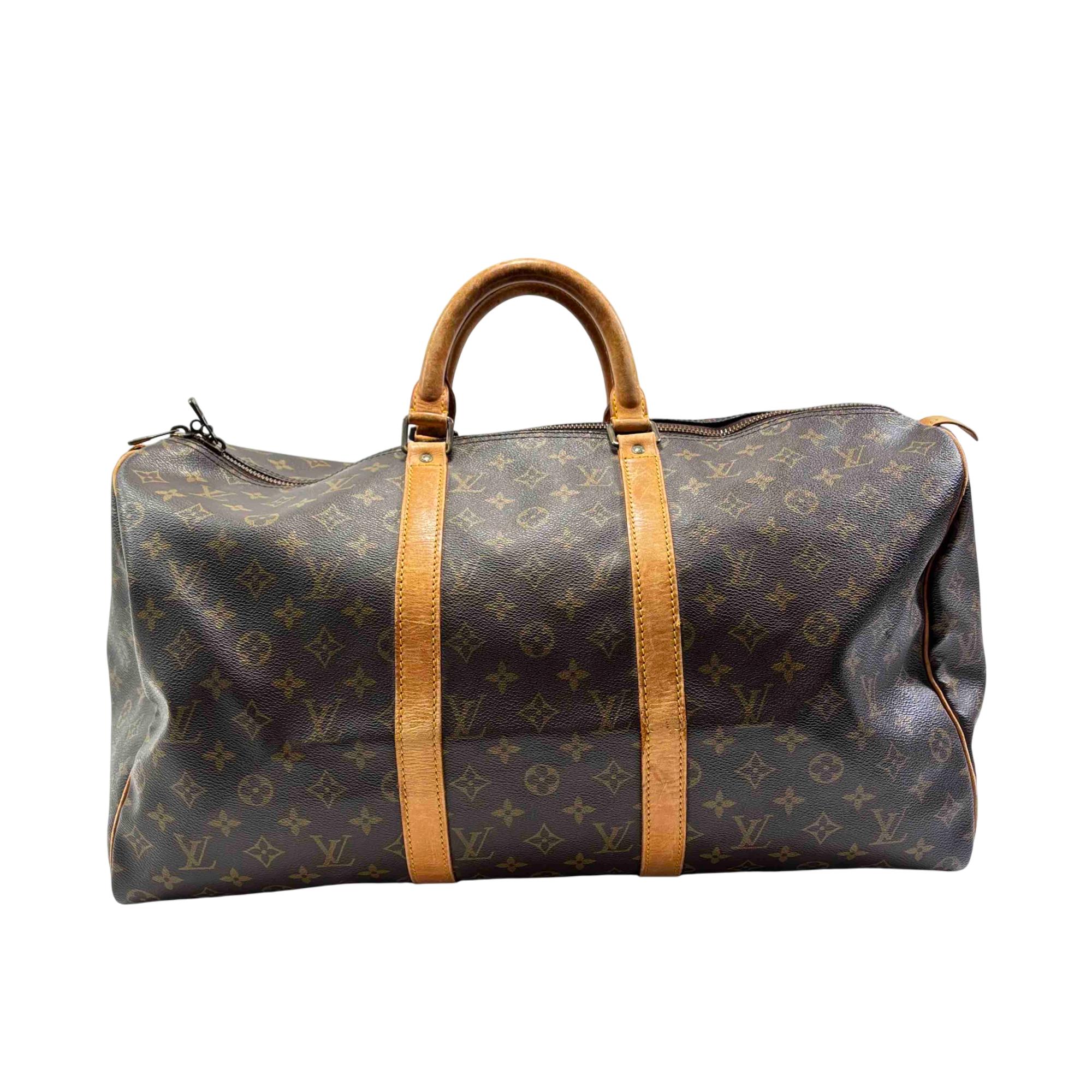 Elevate your travel style with the iconic Louis Vuitton Monogram Keepall 50. This luxurious travel bag is crafted with the brands signature monogram canvas, featuring a spacious interior and comfortable handles for easy carrying. Perfect for weekend getaways, this bag seamlessly blends timeless elegance with practicality.