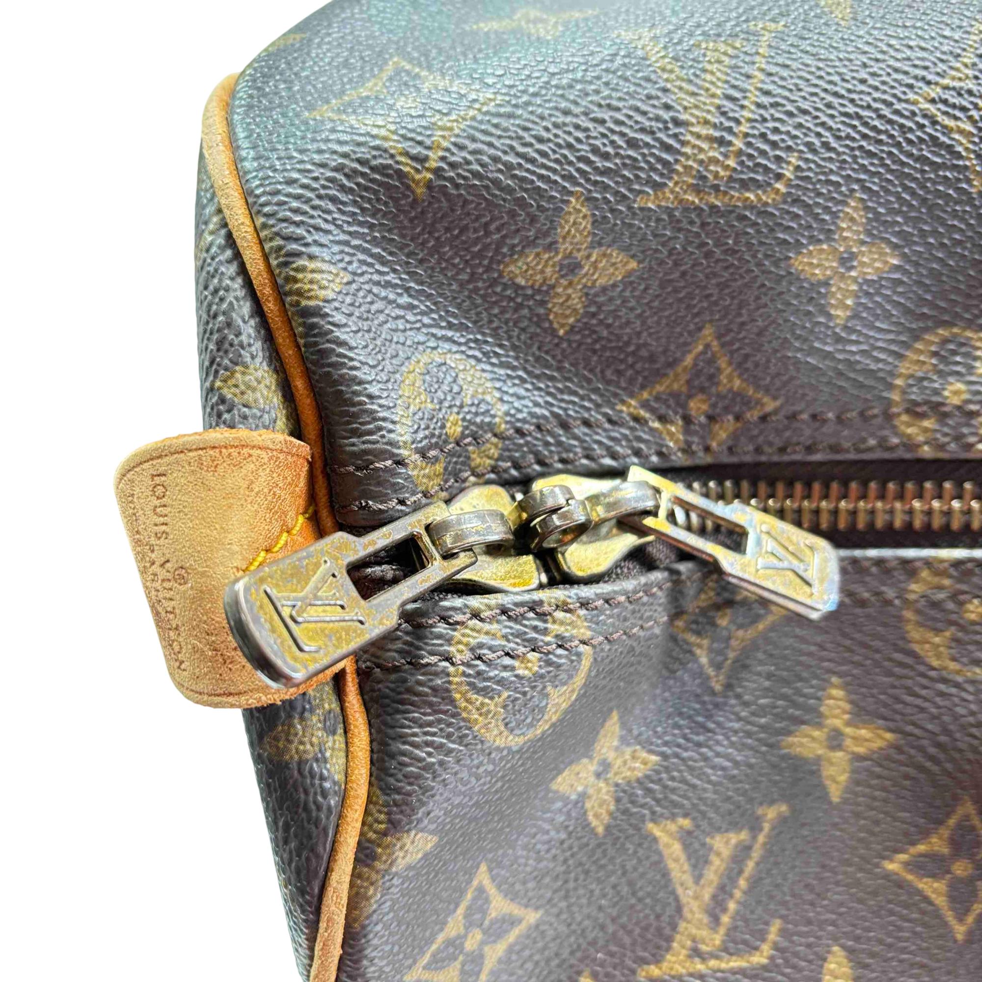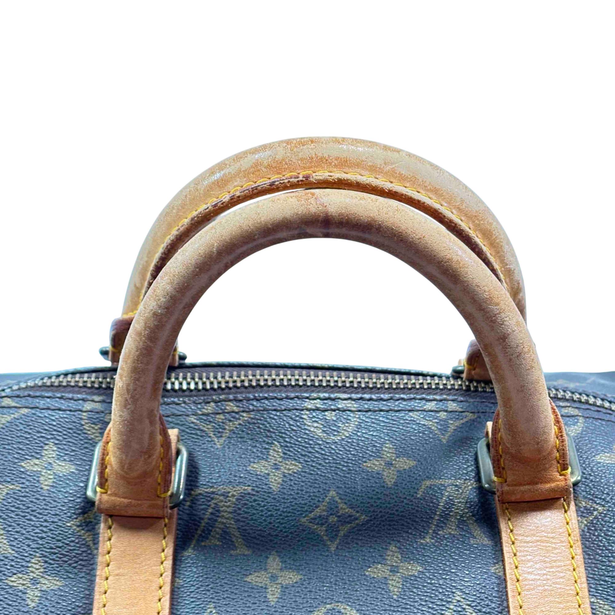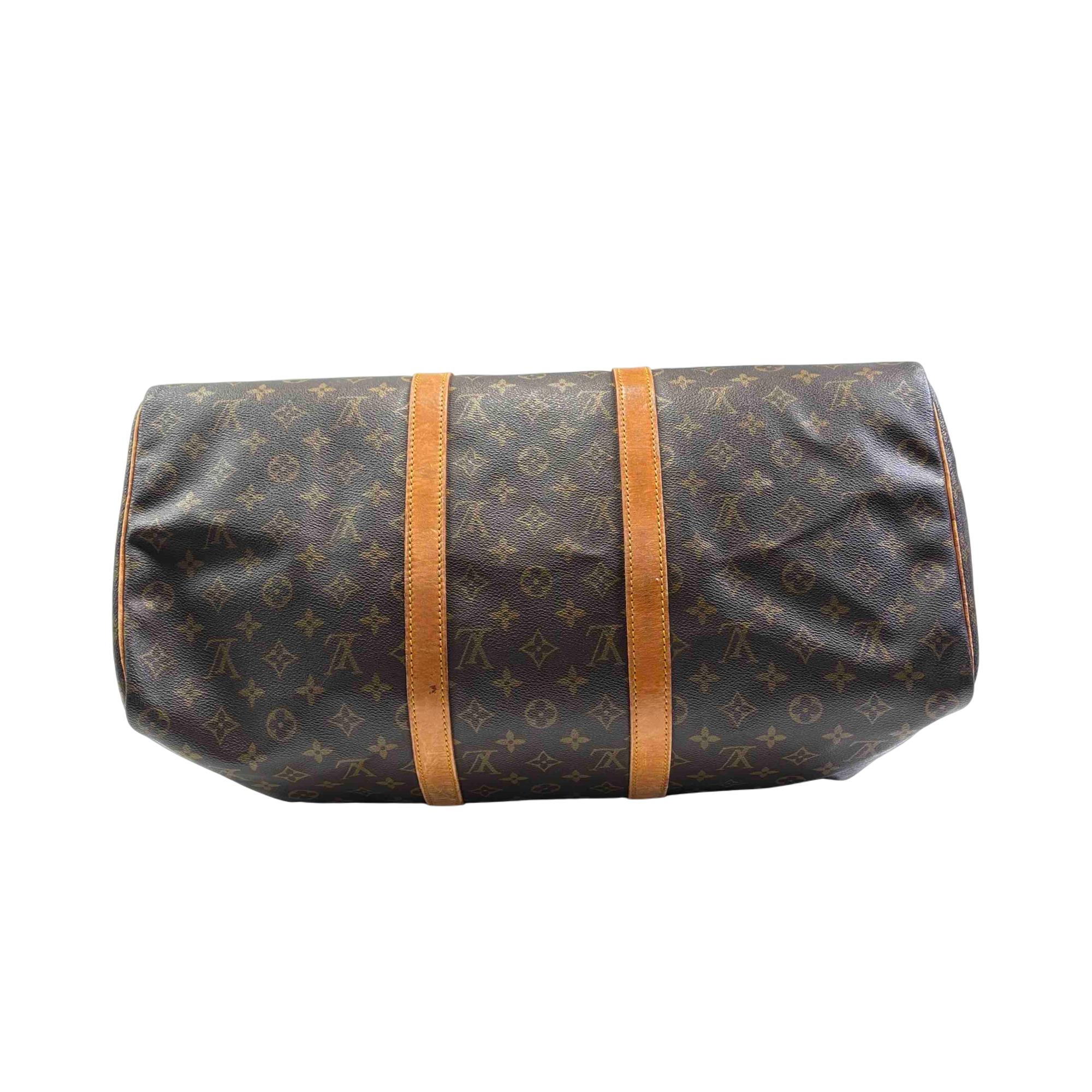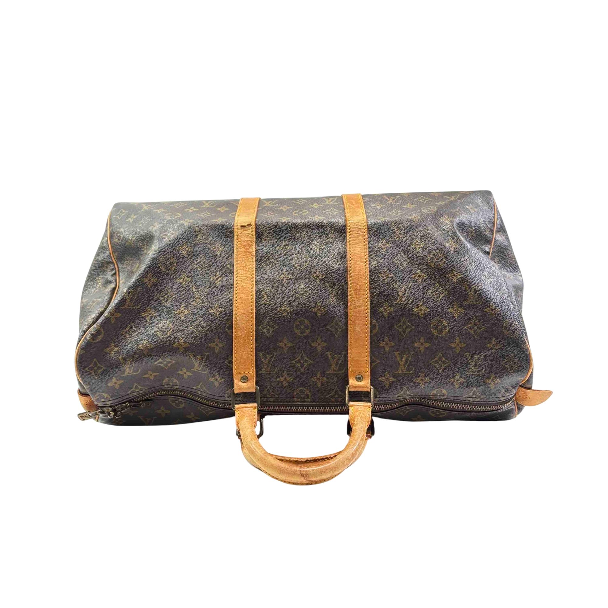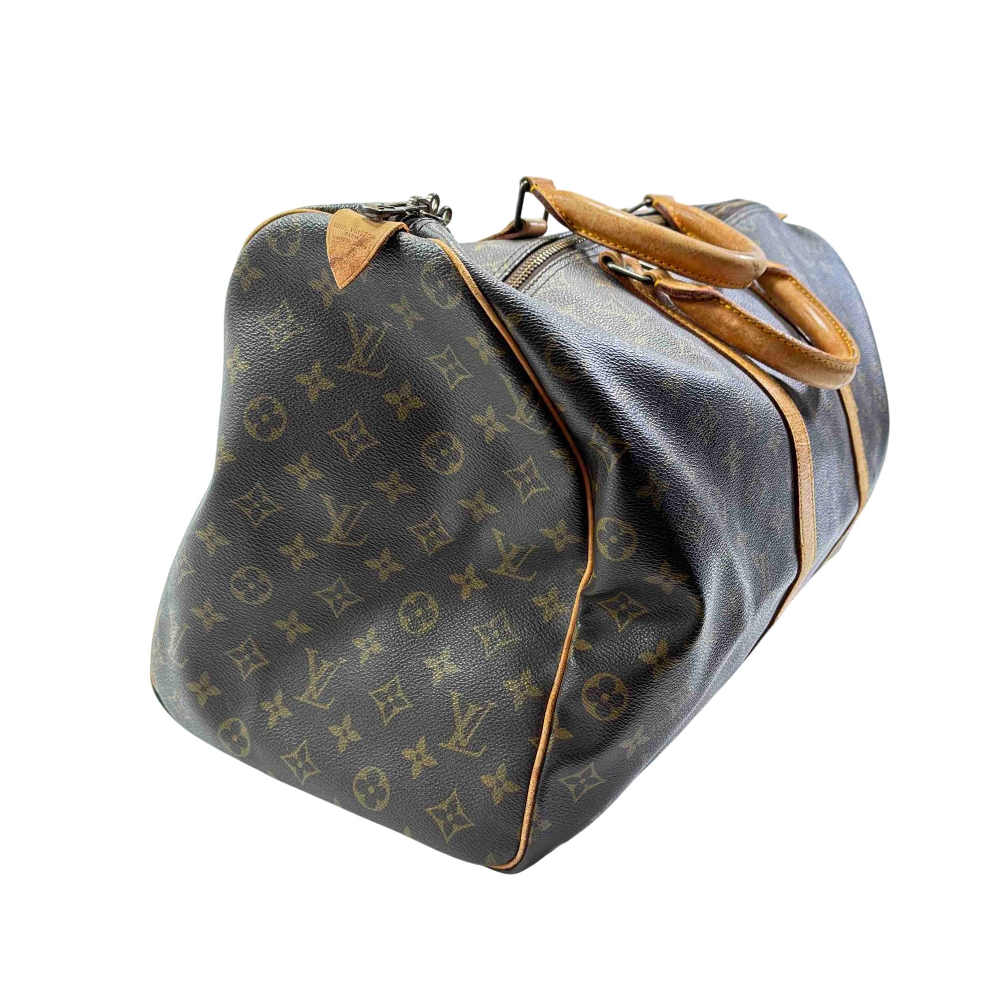 Elevate your travel style with the iconic Louis Vuitton Monogram Keepall 50. This luxurious travel bag is crafted with the brands signature monogram canvas, featuring a spacious interior and comfortable handles for easy carrying. Perfect for weekend getaways, this bag seamlessly blends timeless elegance with practicality.