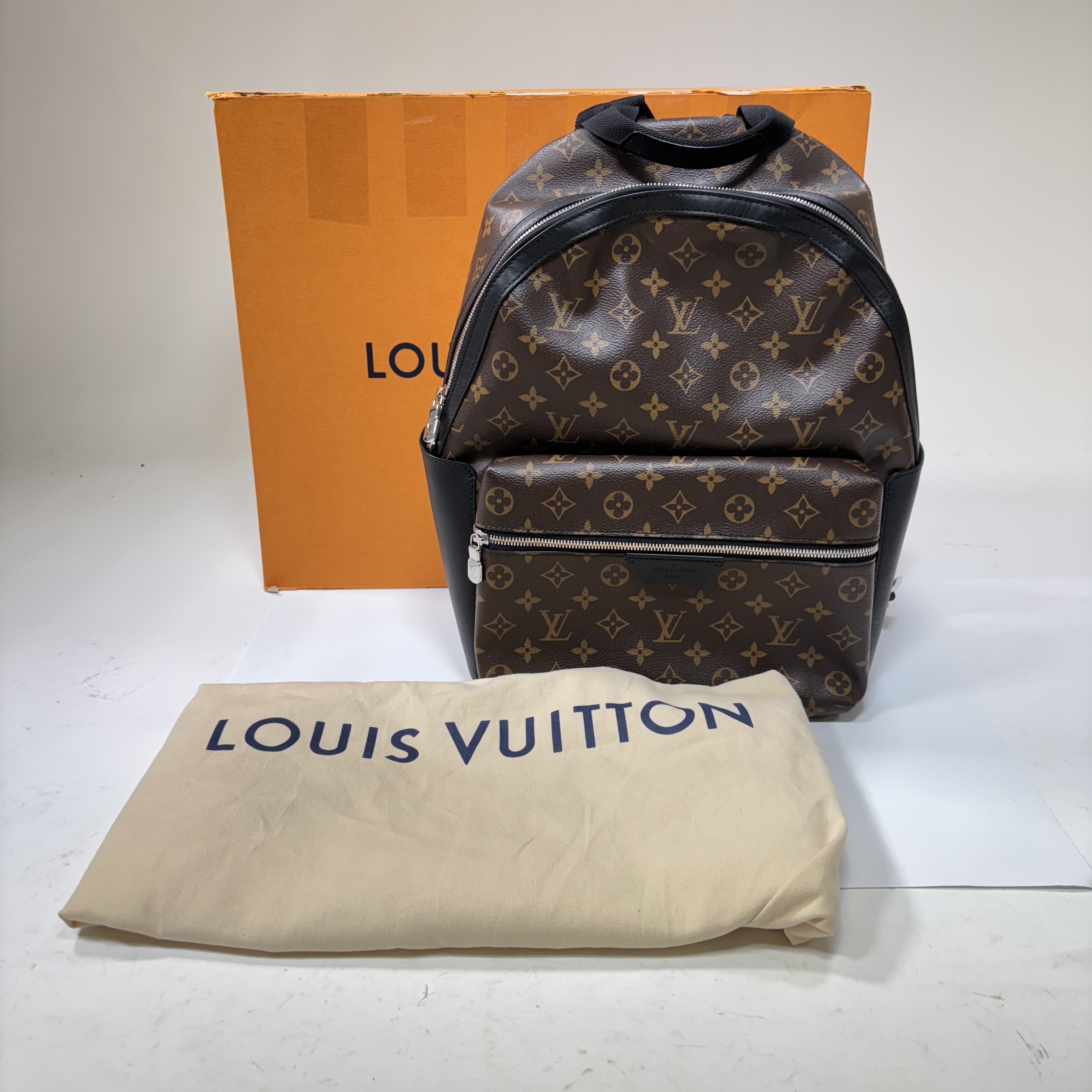 Louis Vuitton Monogram Macassar Discovery PM Backpack (M43644) features the brands iconic monogram canvas combined with sleek black Macassar leather trims, creating a sophisticated and modern look. This compact backpack is designed with adjustable straps and multiple compartments for organized storage, making it a stylish and practical accessory for everyday use or travel.