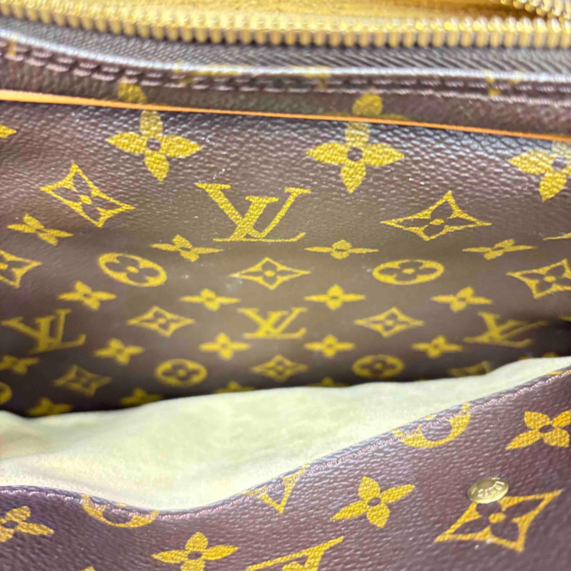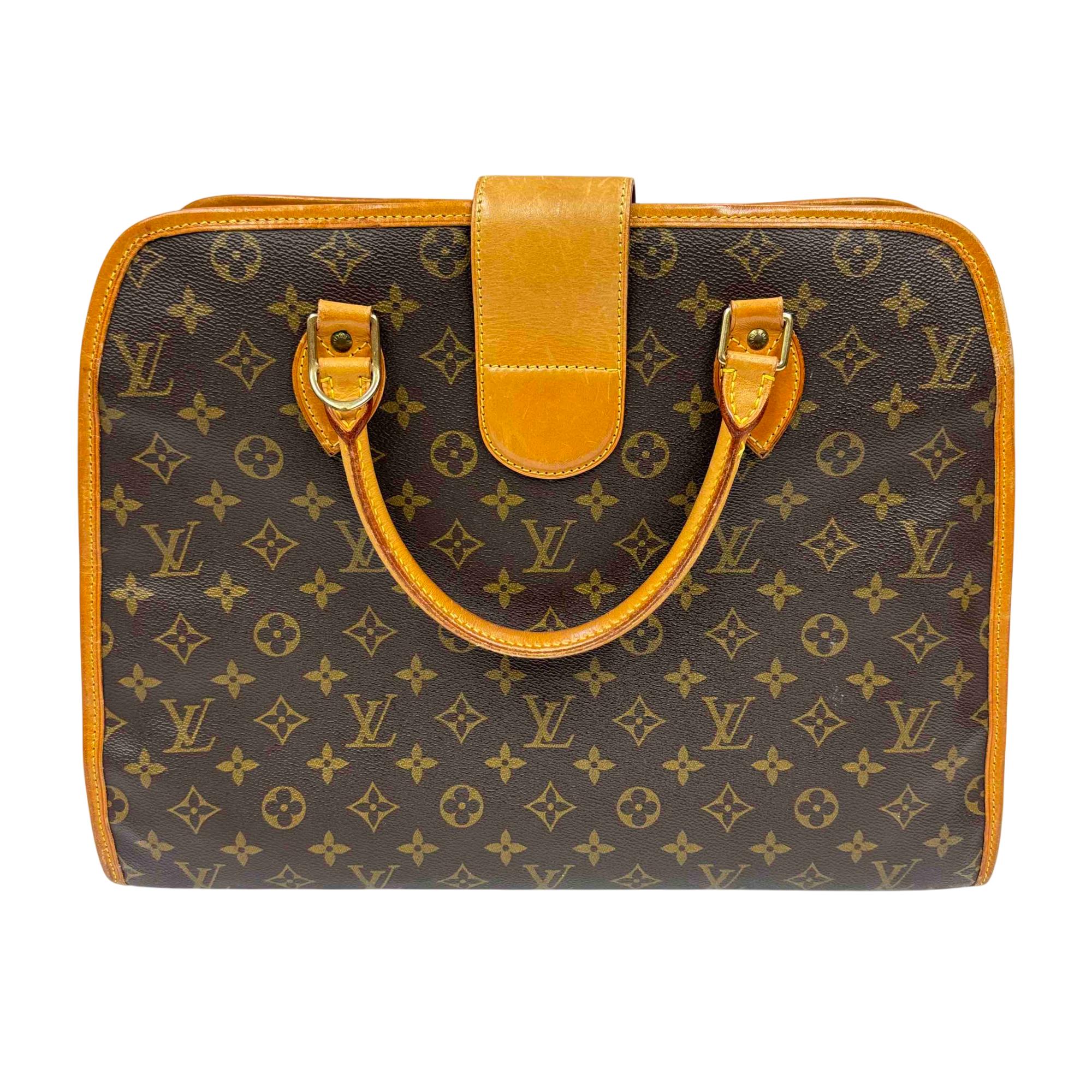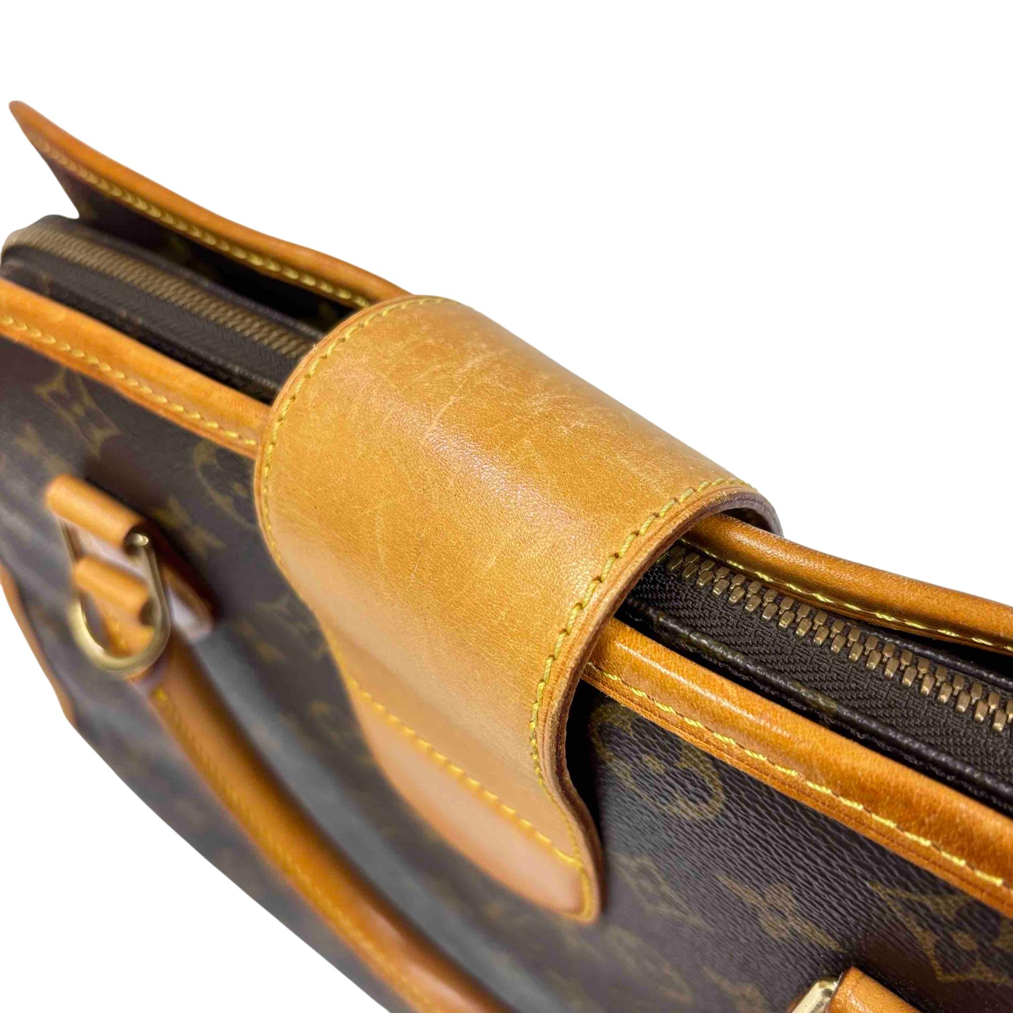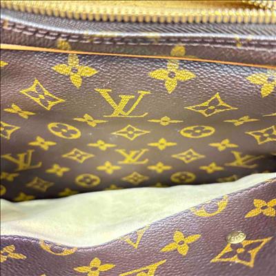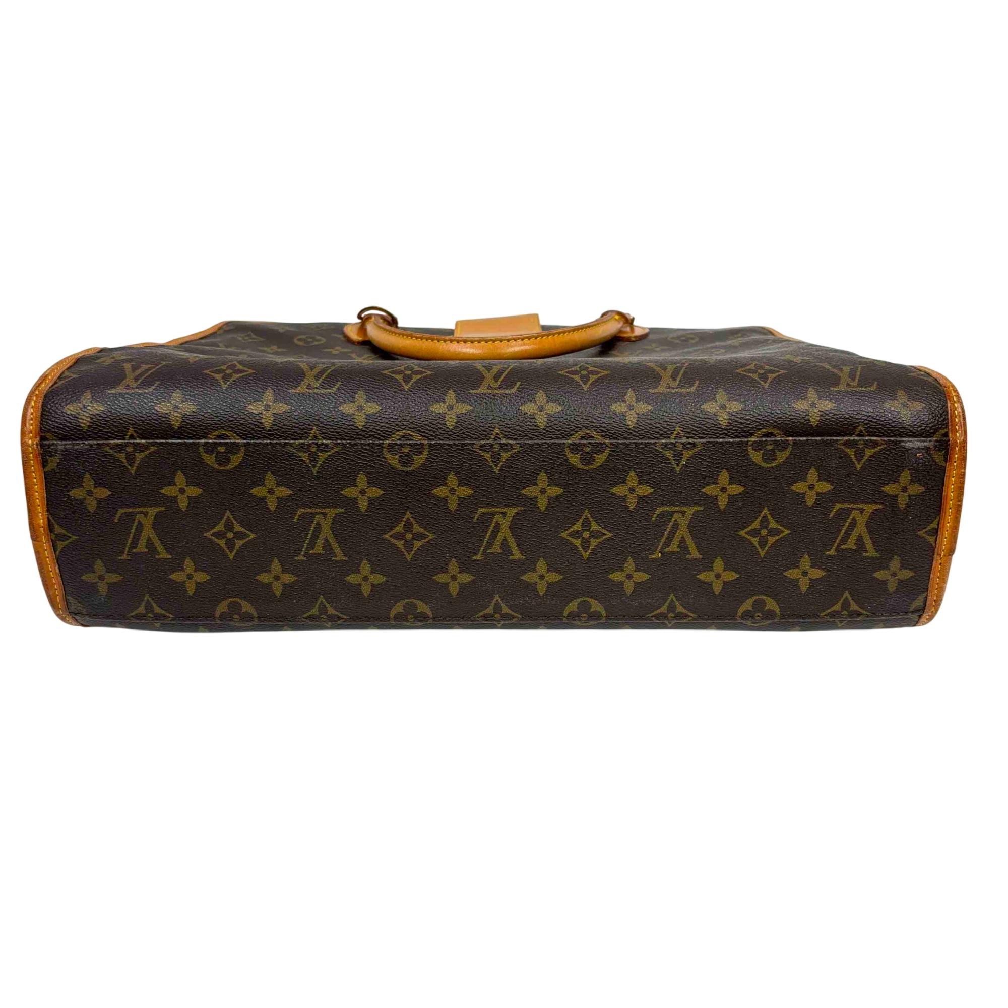 The Louis Vuitton Monogram Rivoli Briefcase Handbag is crafted from signature monogram canvas with natural leather trim, featuring a spacious interior designed to accommodate business essentials. This elegant and functional briefcase includes secure zipper closures and an adjustable leather shoulder strap, combining classic style with practical design for professional use.