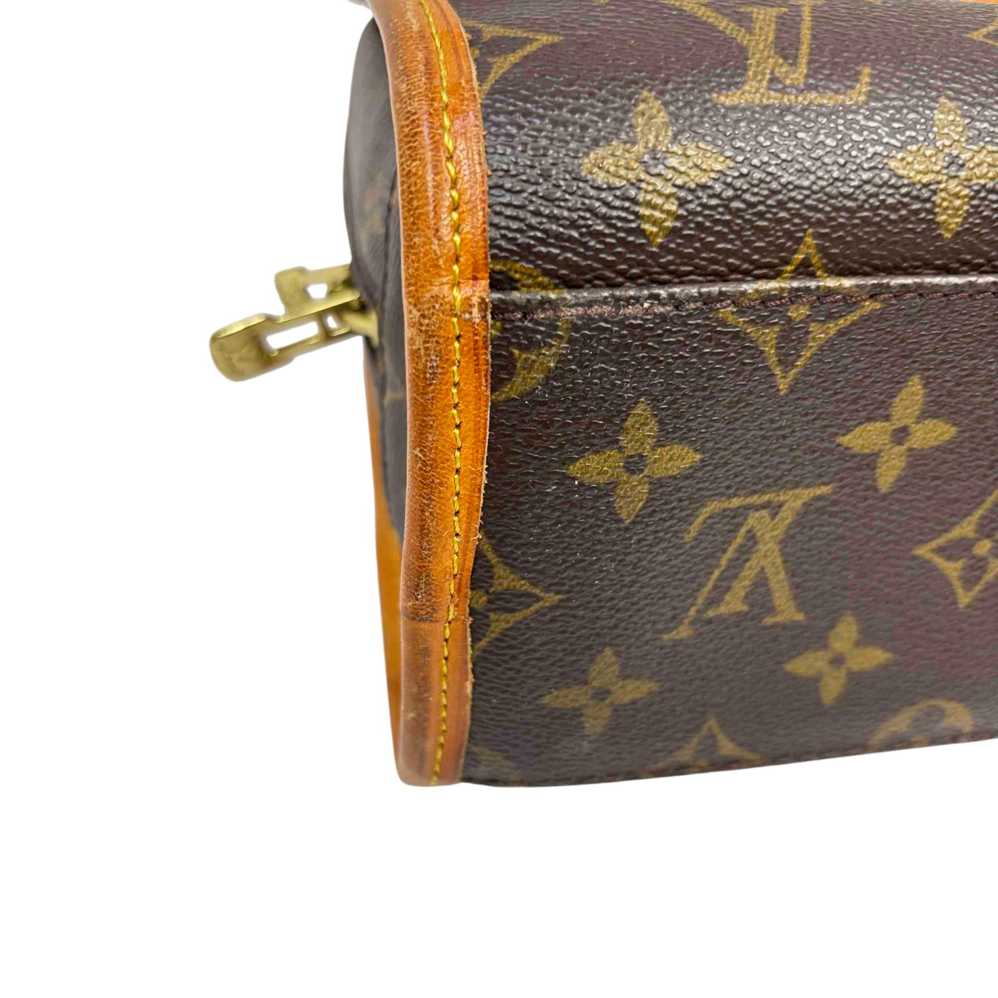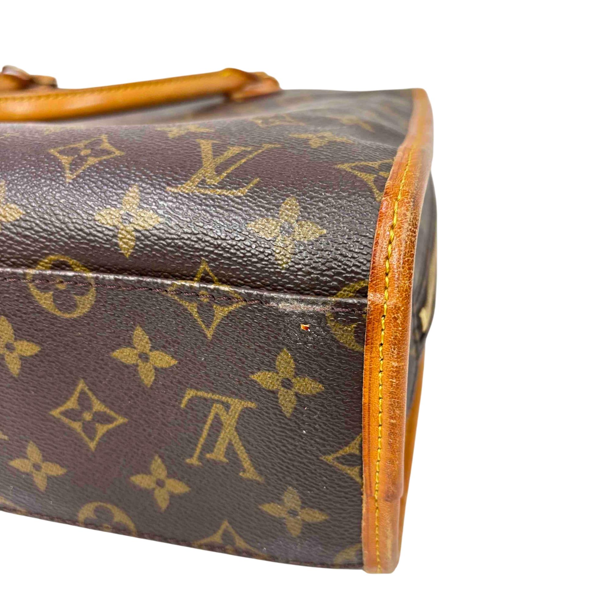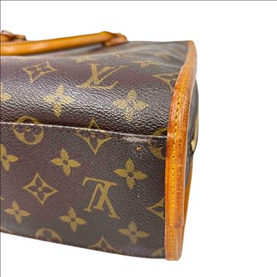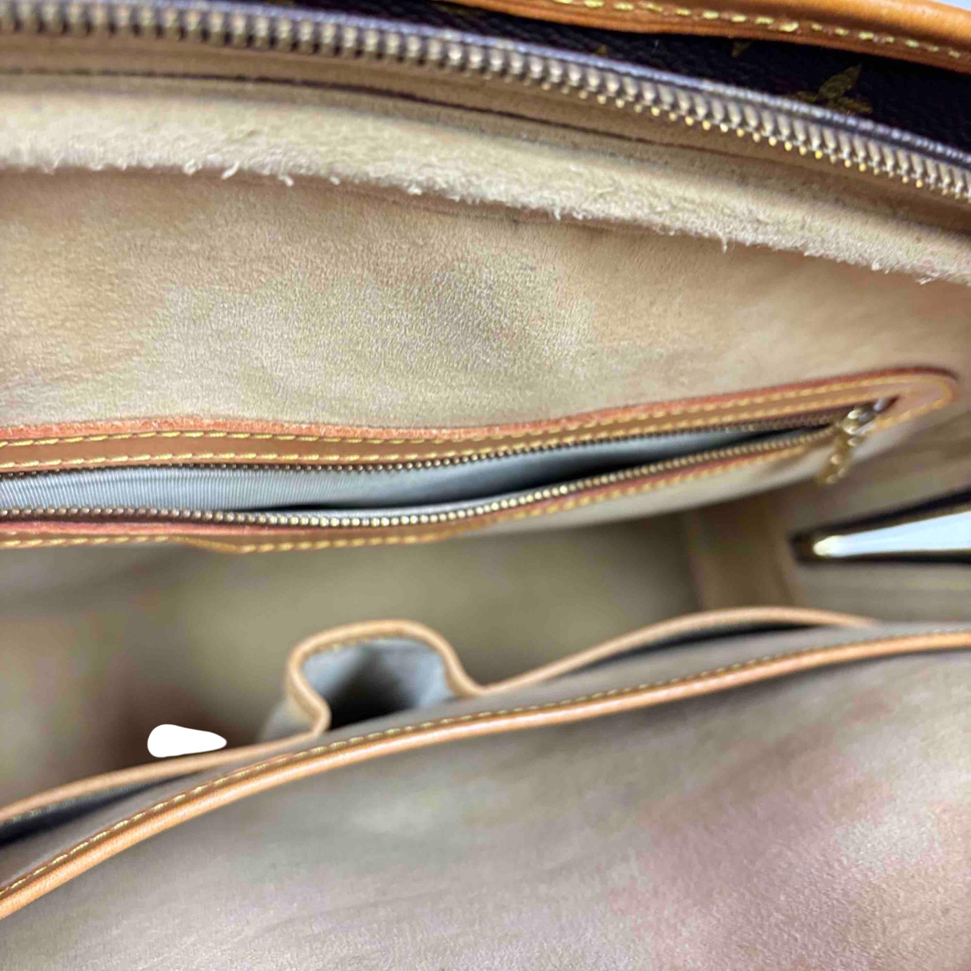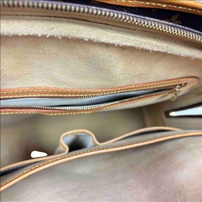 The Louis Vuitton Monogram Rivoli Briefcase Handbag is crafted from signature monogram canvas with natural leather trim, featuring a spacious interior designed to accommodate business essentials. This elegant and functional briefcase includes secure zipper closures and an adjustable leather shoulder strap, combining classic style with practical design for professional use.