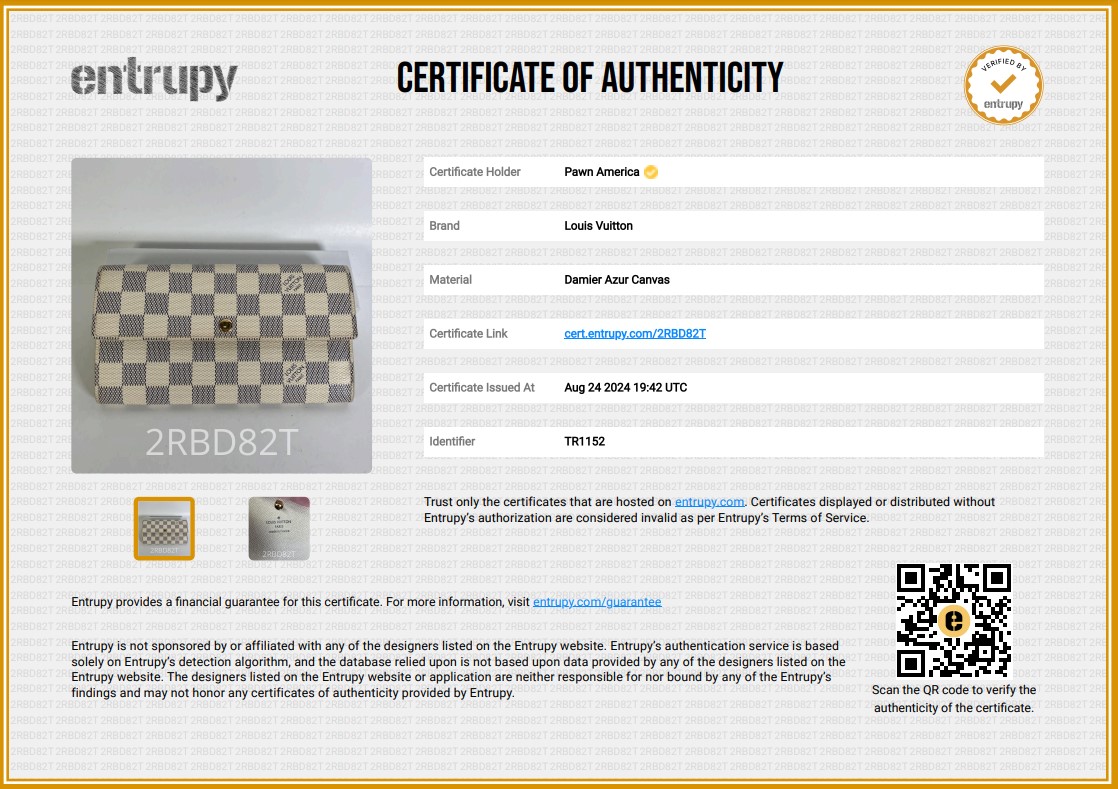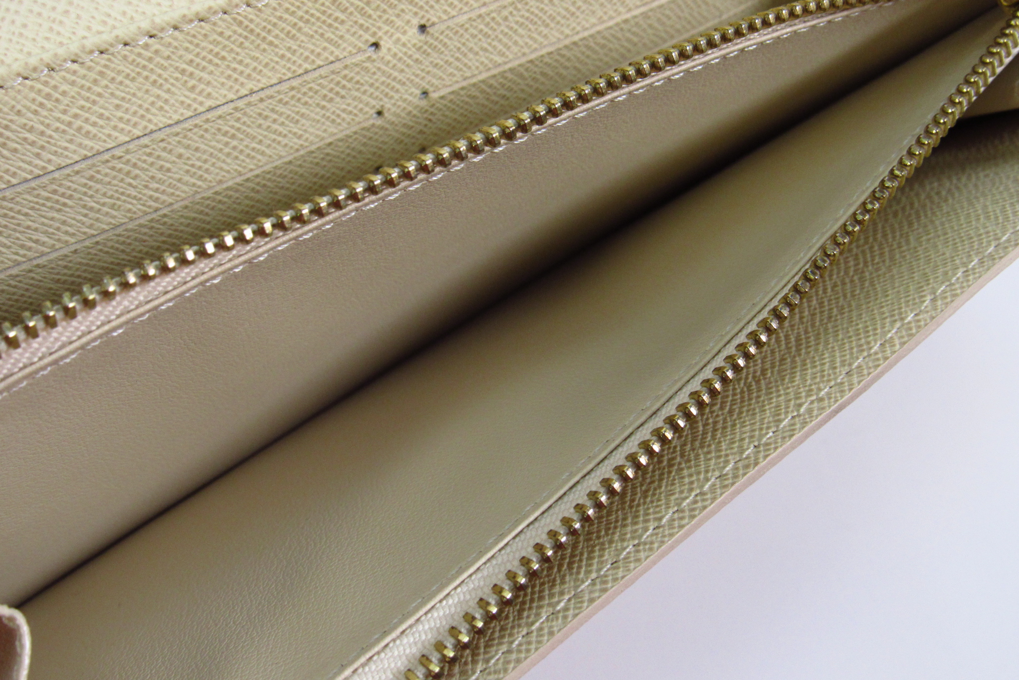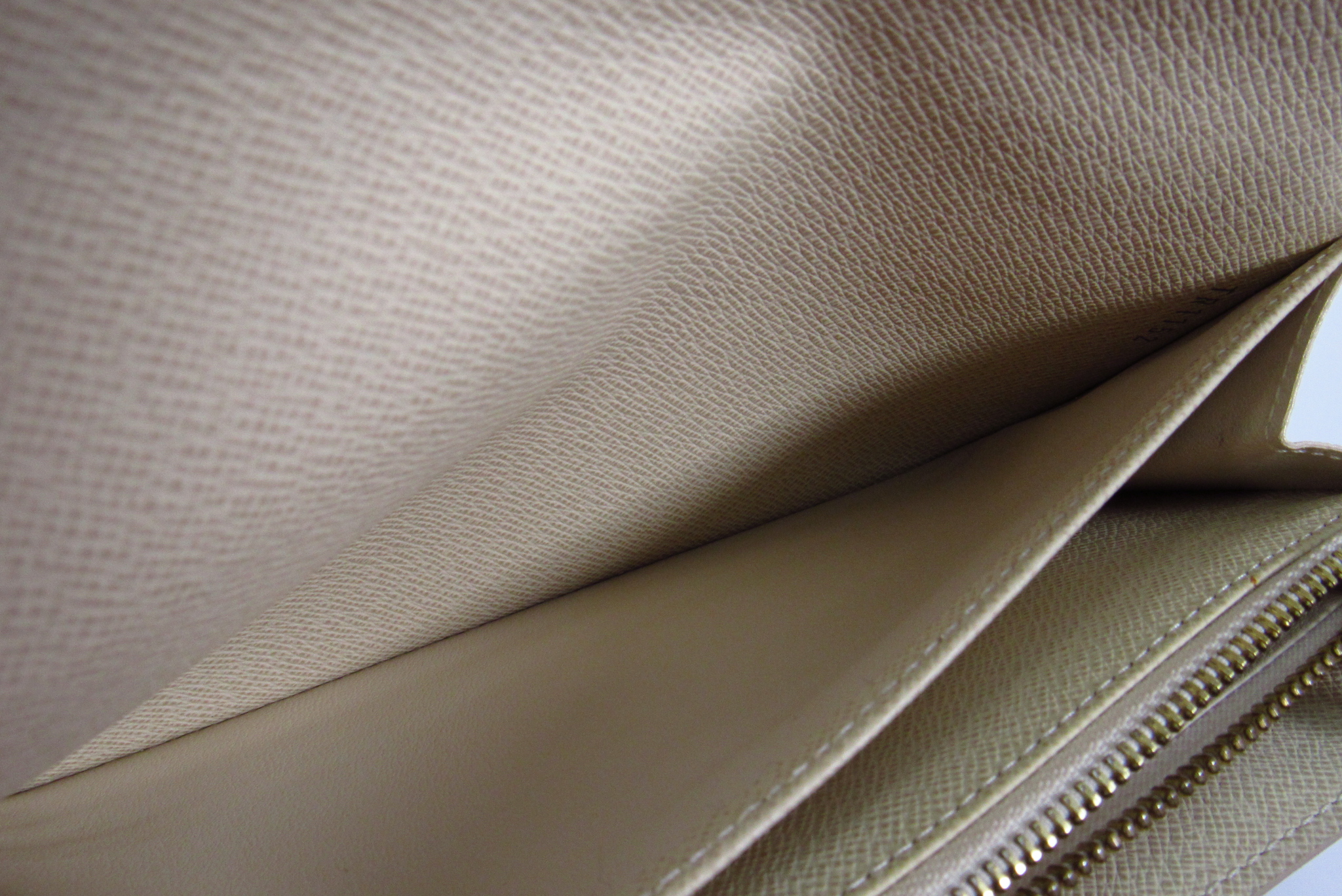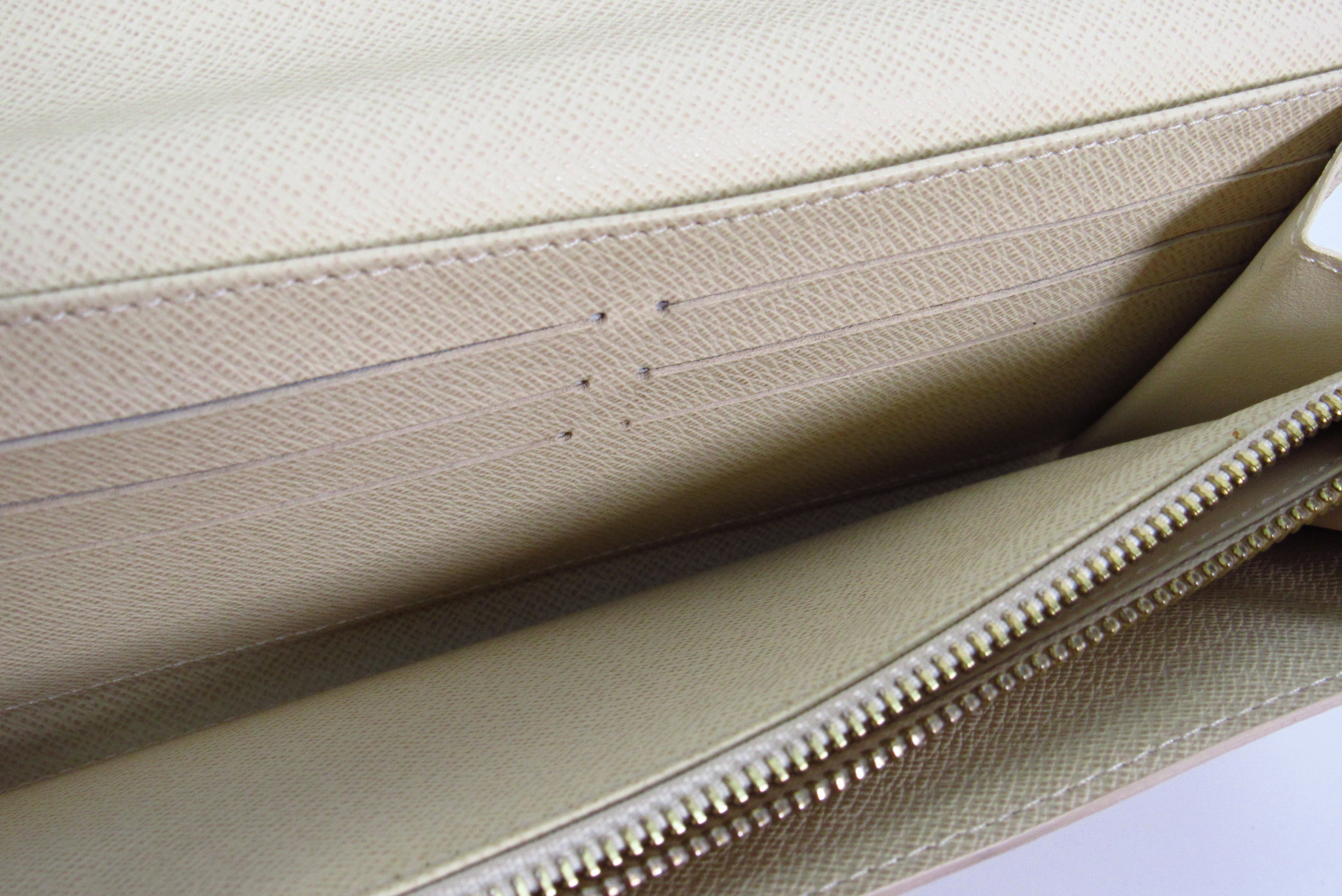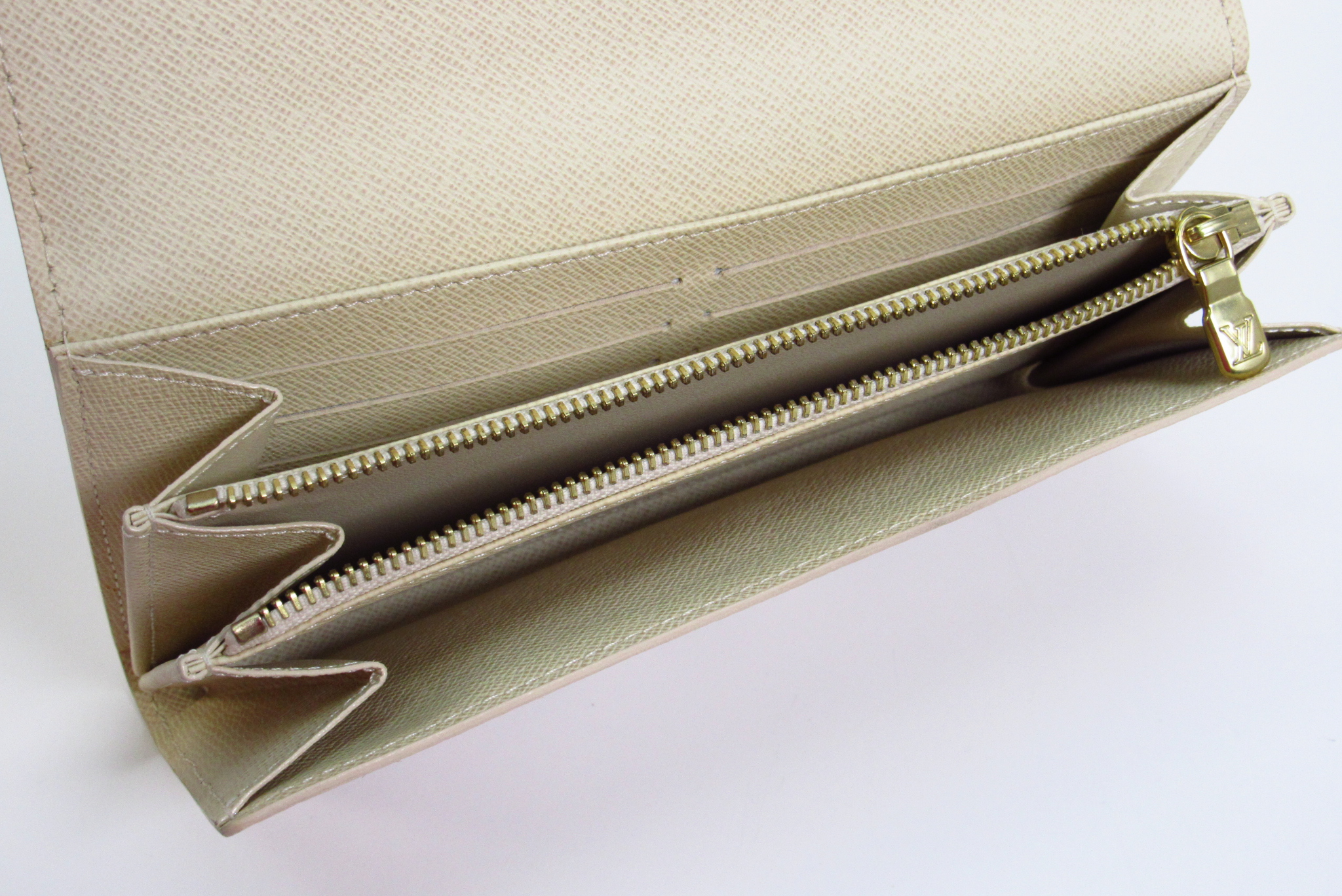 Damier Azur canvas brings a fresh look to Louis Vuitton's Sarah wallet, a timeless model with a simple, elegant exterior and a well-organized interior. Its envelope-style flap, which is secured with a gold-tone press-stud, opens to reveal two large compartments, multiple card slots and a zipped coin pocket.