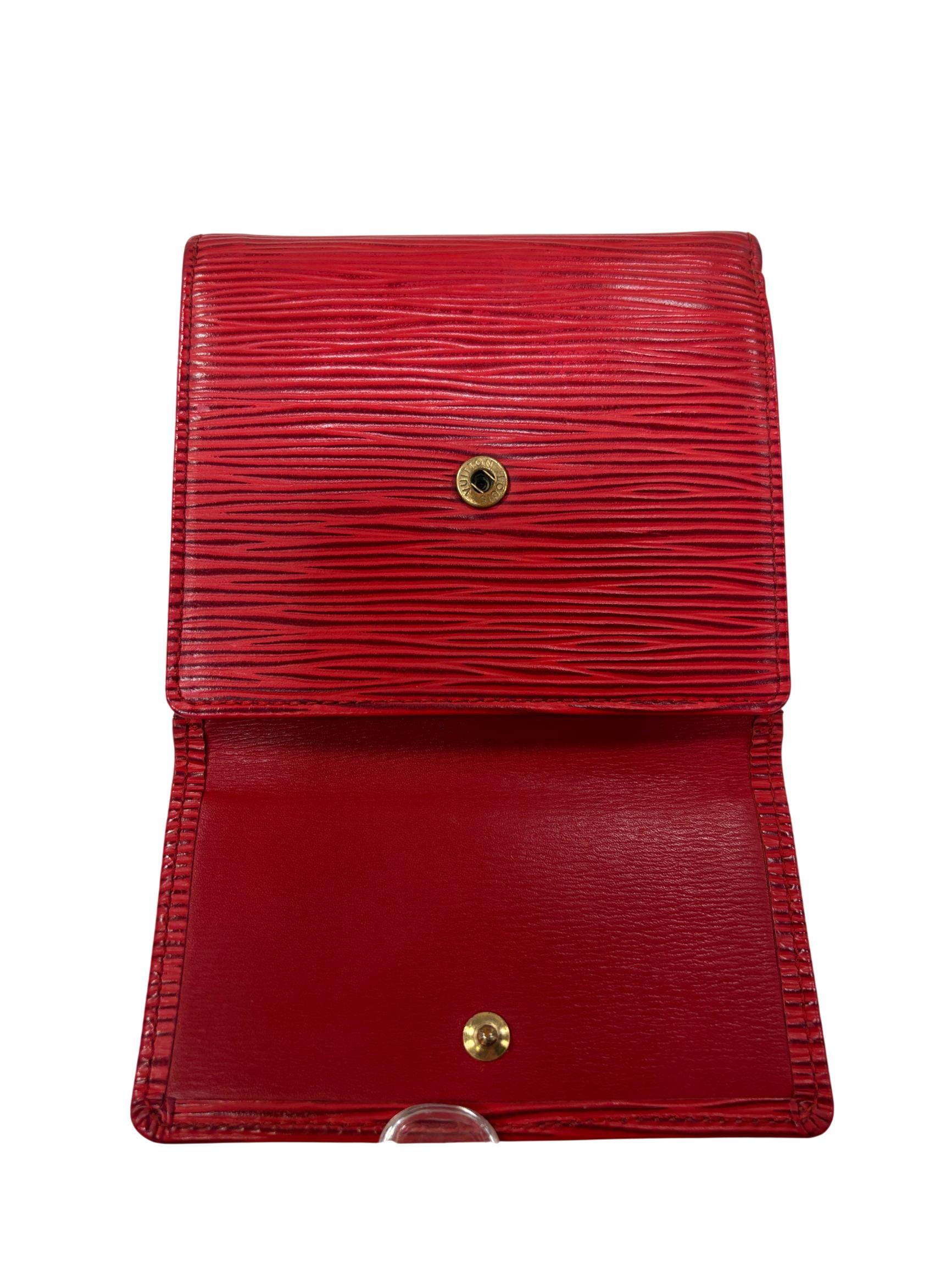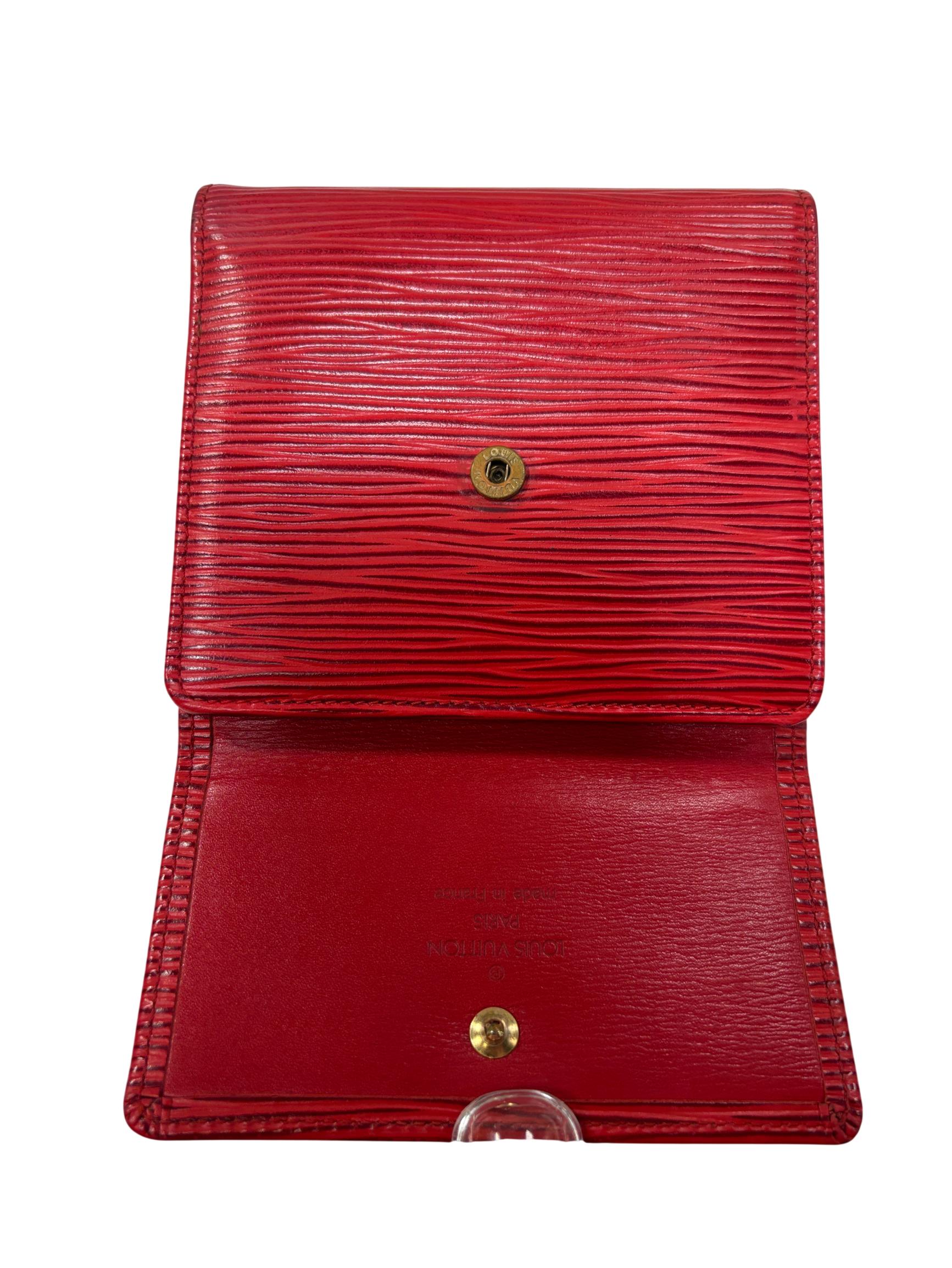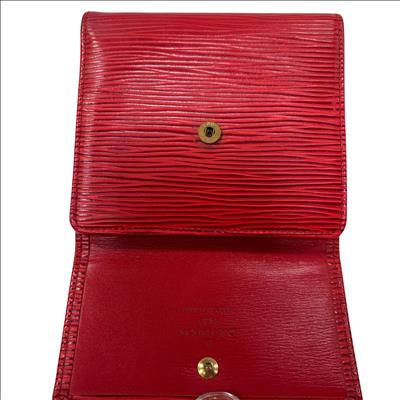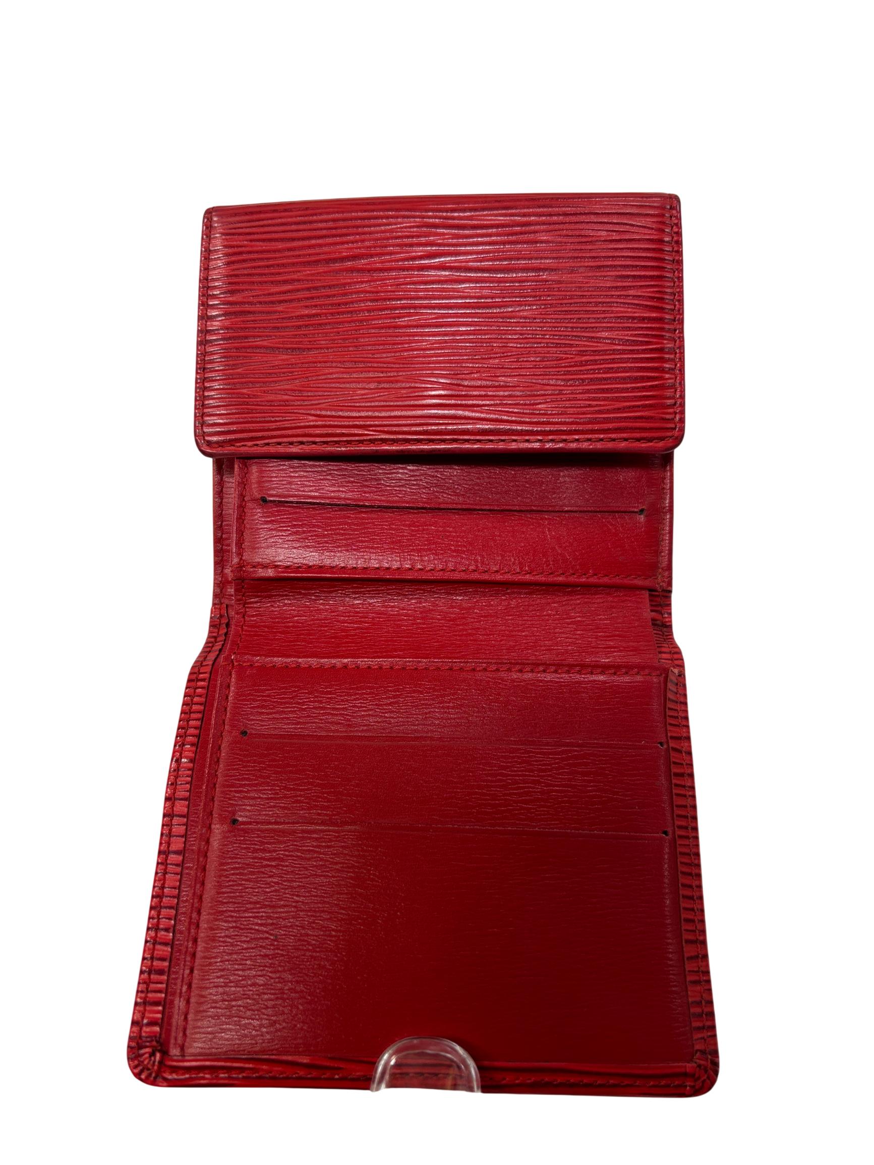 Louis Vuitton Epi Leather Elise Wallet Red features a distinctive textured Epi leather crafted in a vibrant red shade, offering a sleek and durable design ideal for everyday use. This compact wallet provides organized storage with multiple compartments, combining elegance and functionality in a timeless accessory.