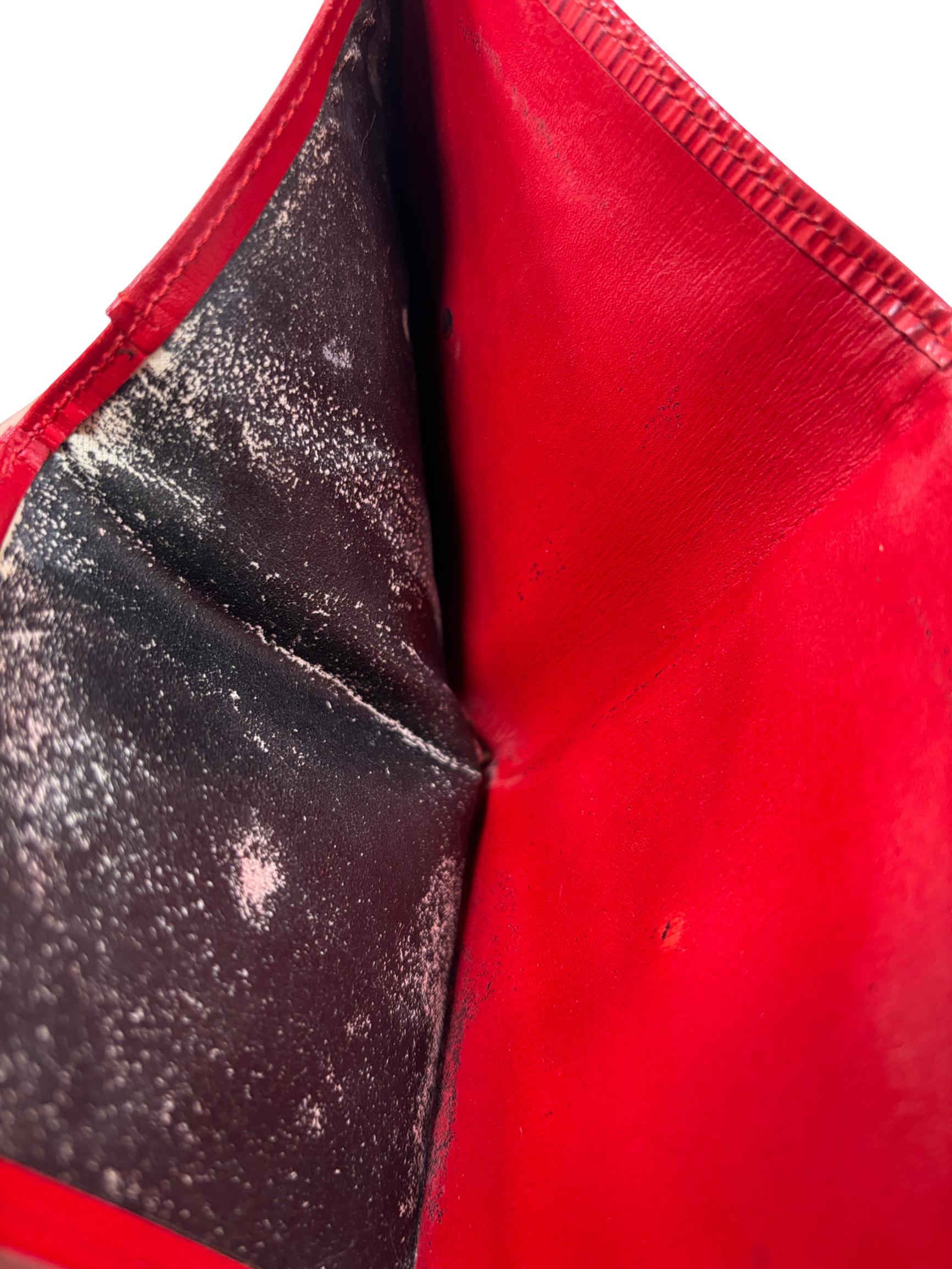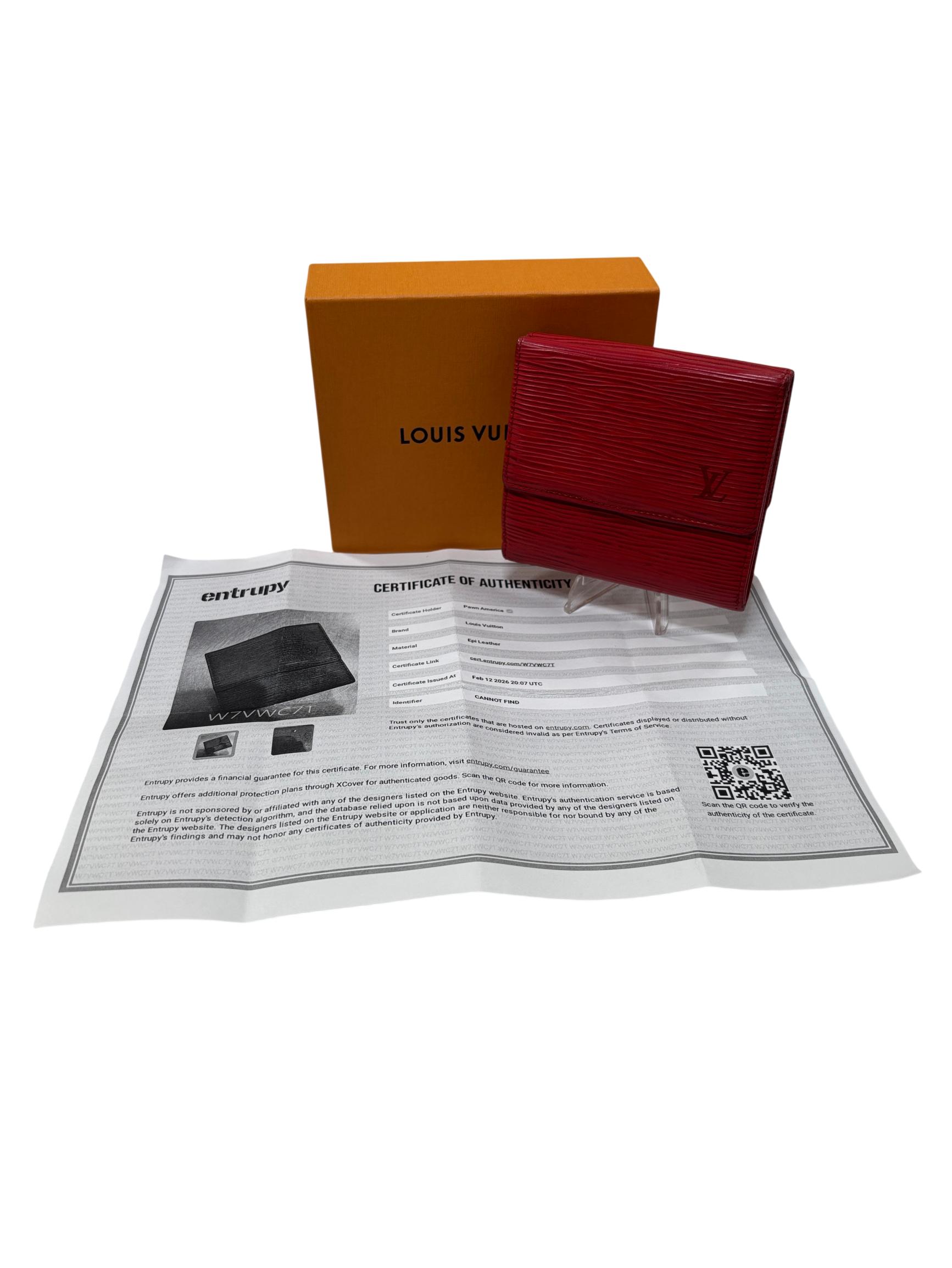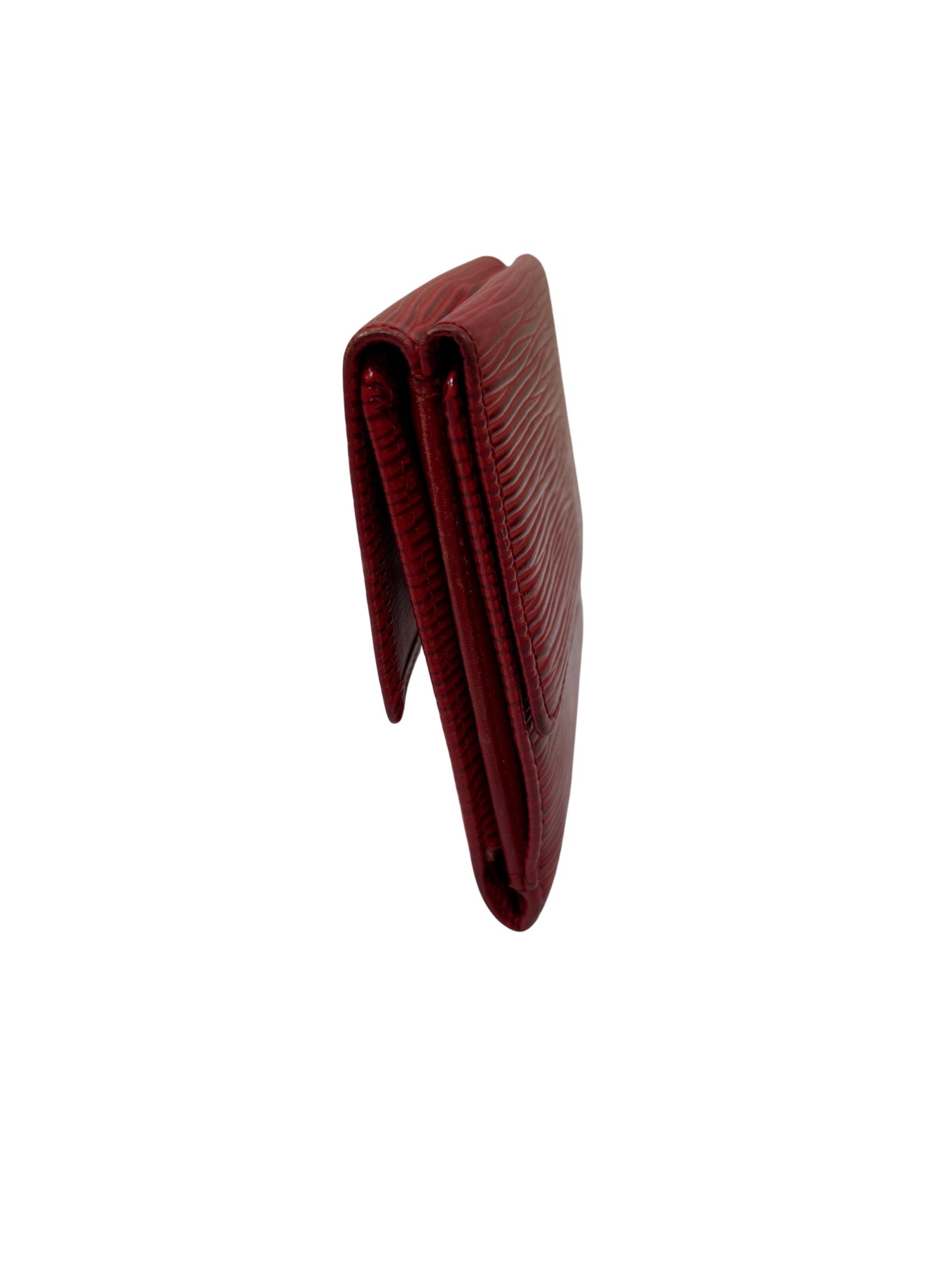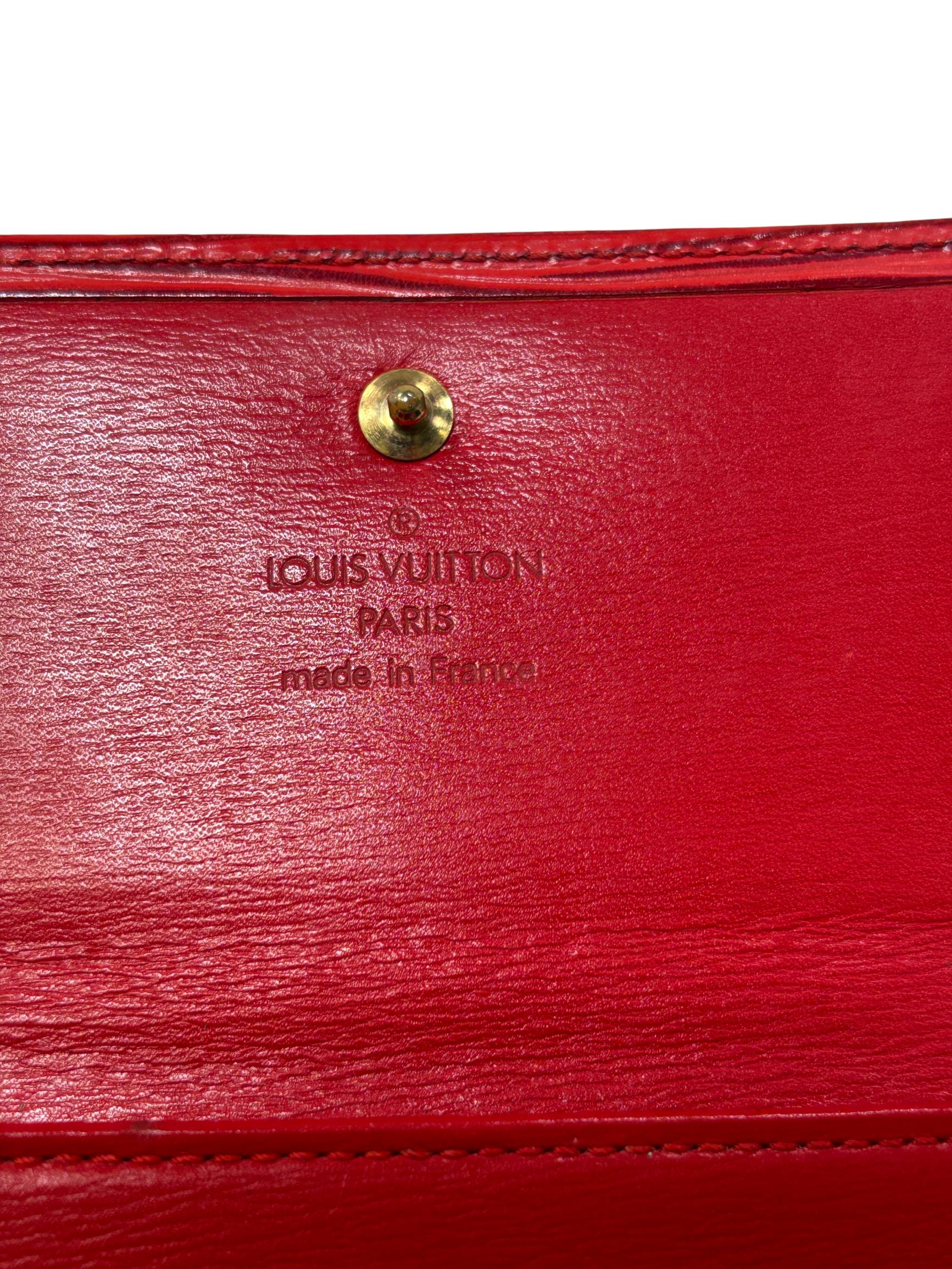 Louis Vuitton Epi Leather Elise Wallet Red features a distinctive textured Epi leather crafted in a vibrant red shade, offering a sleek and durable design ideal for everyday use. This compact wallet provides organized storage with multiple compartments, combining elegance and functionality in a timeless accessory.