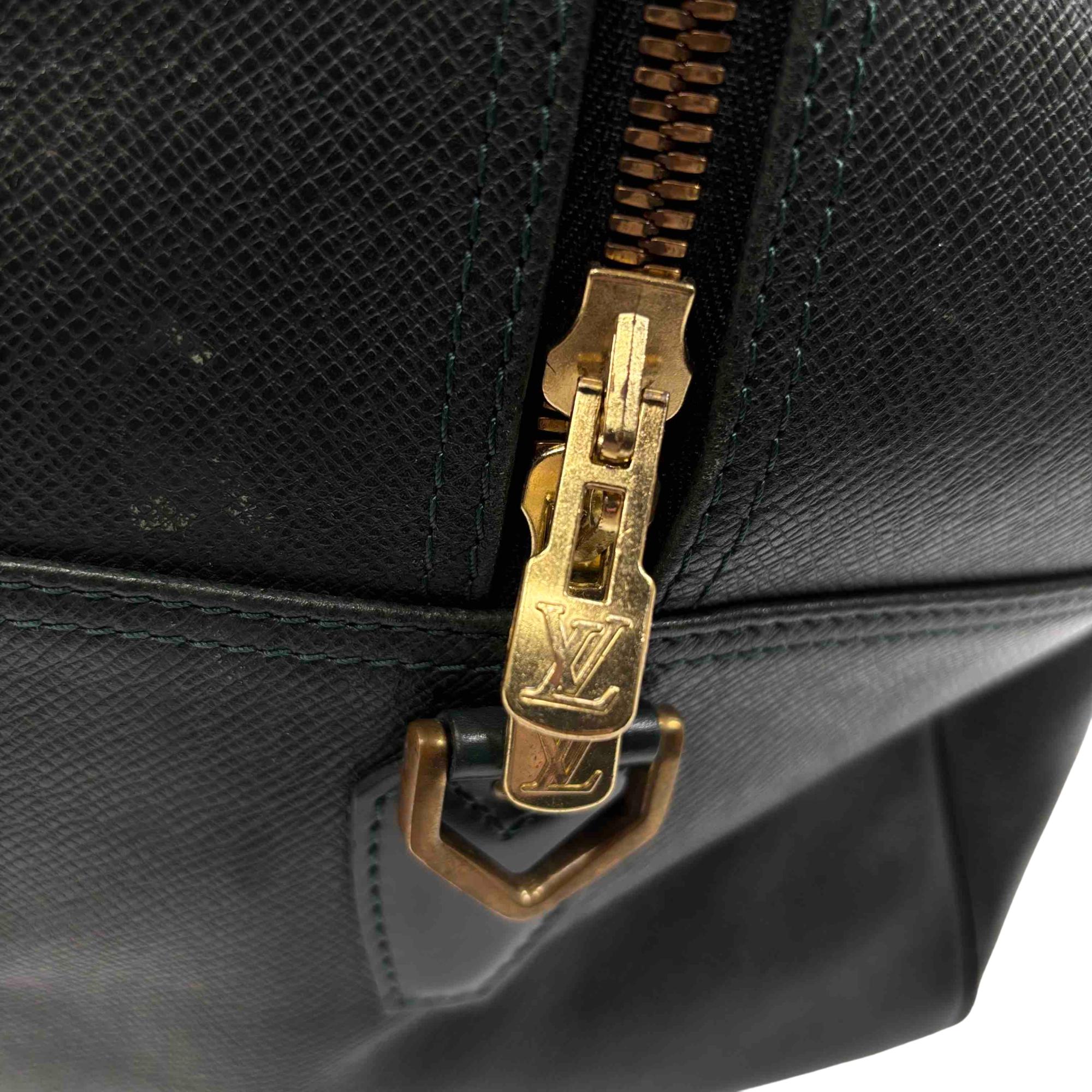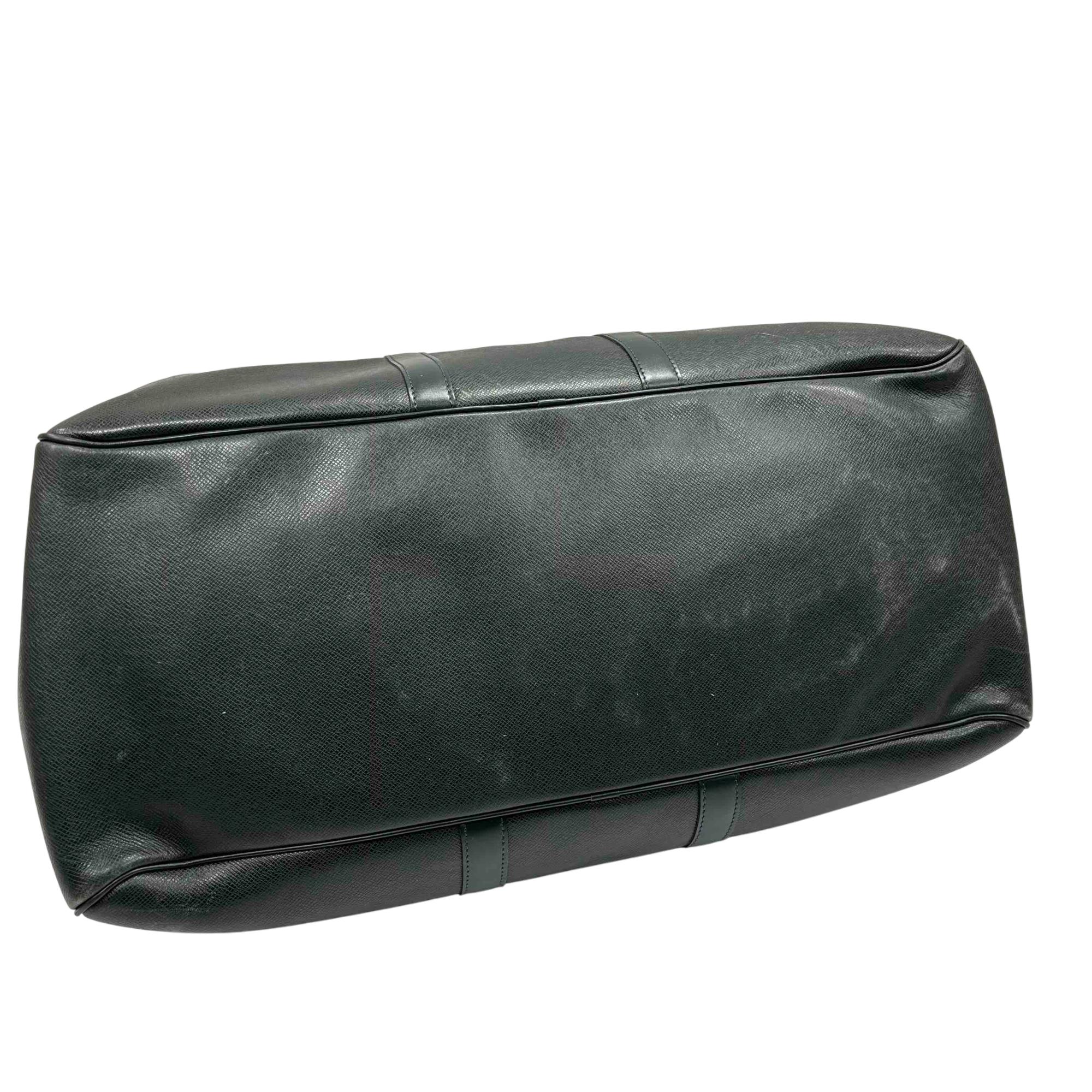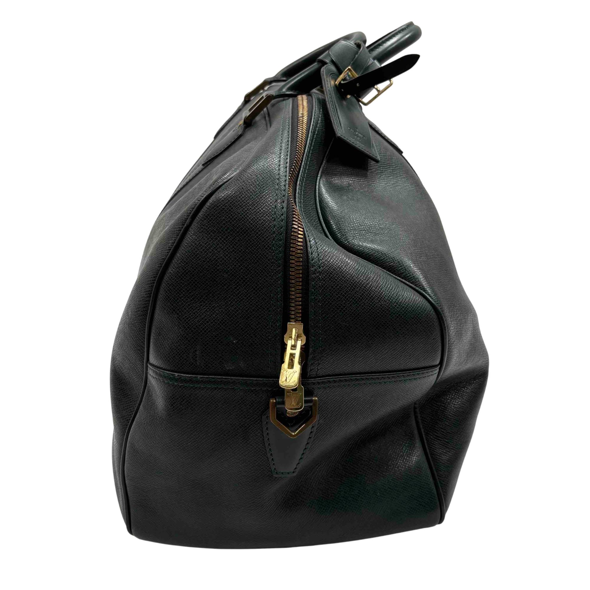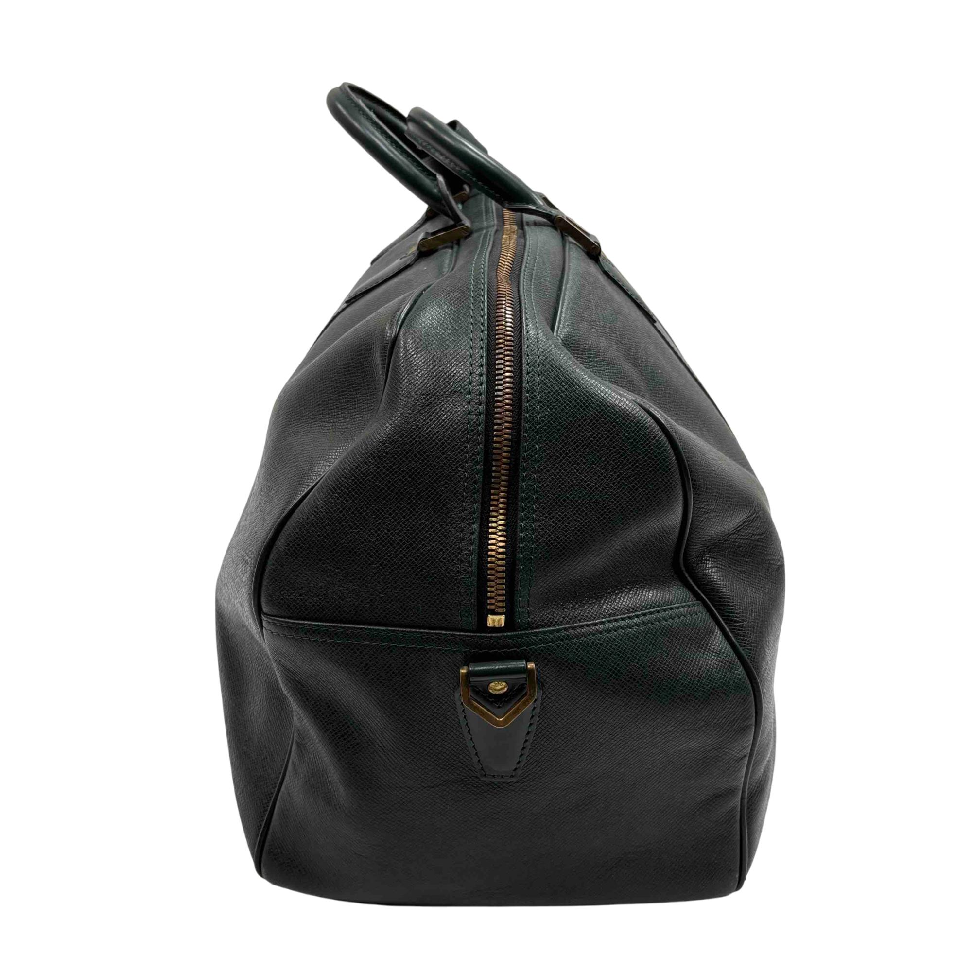 Elevate your travel style with the Louis Vuitton Taiga GM Boston Bag, a perfect blend of luxury and functionality. Crafted from exquisite black leather with gold zippers and green strap accents, this spacious bag is ideal for both casual and formal occasions. Make a statement with every journey, showcasing timeless elegance and impeccable craftsmanship. Certified authentic by Entrupy.