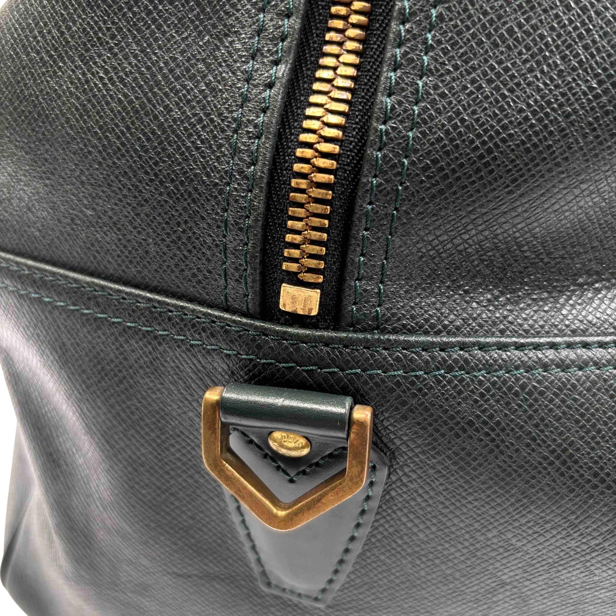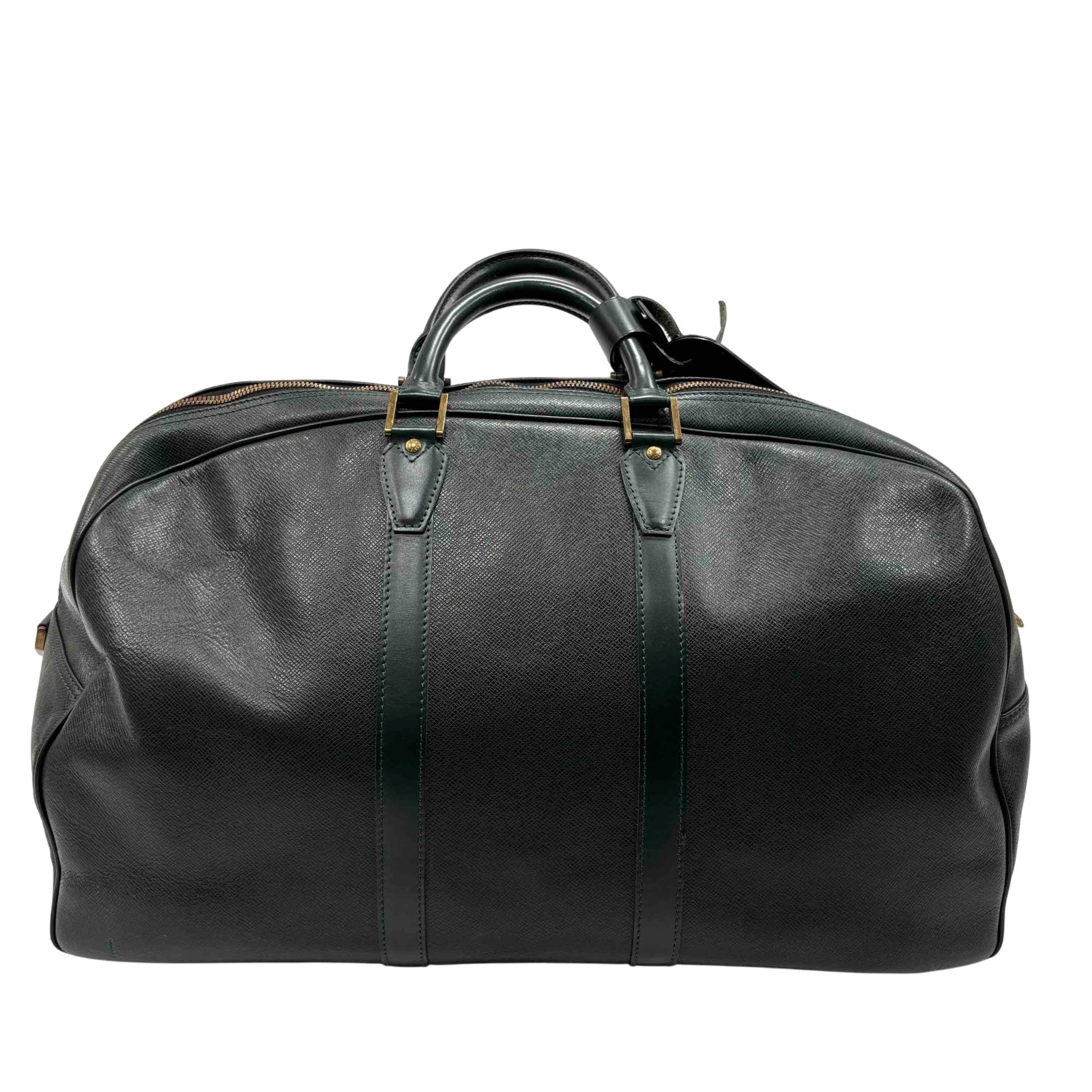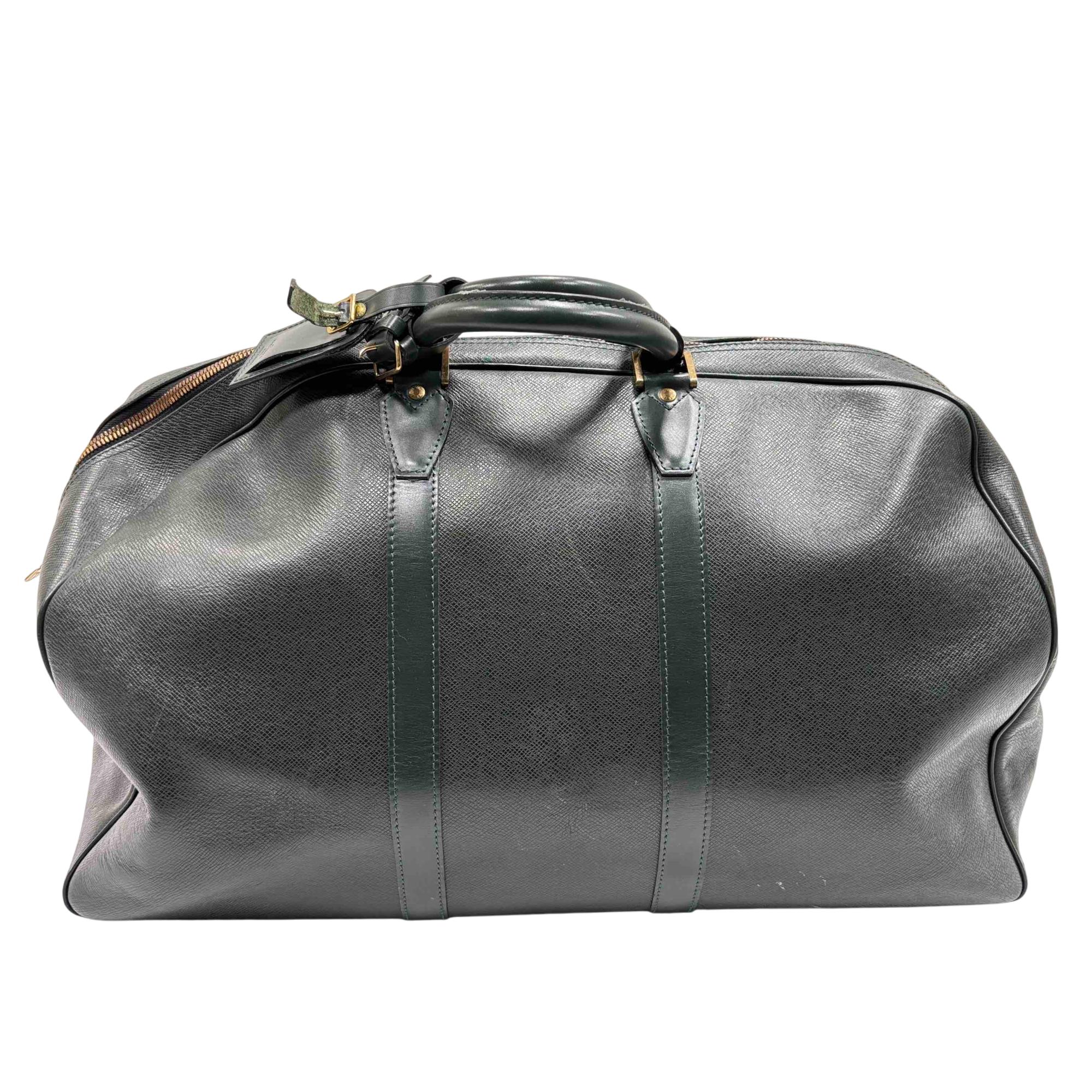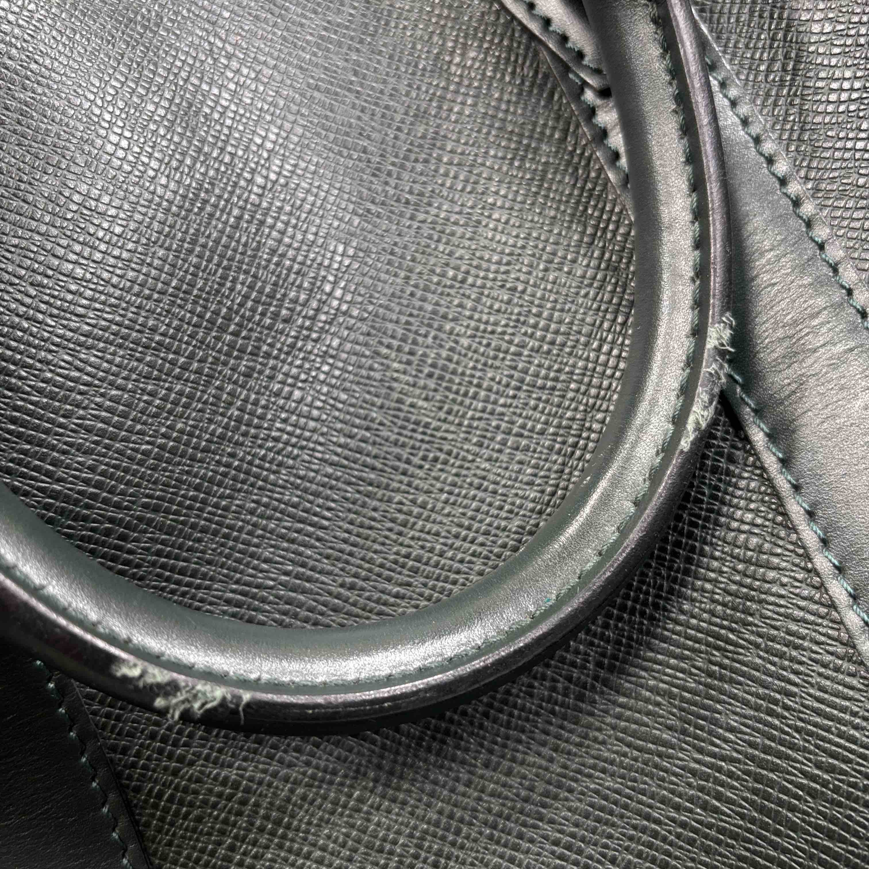 Elevate your travel style with the Louis Vuitton Taiga GM Boston Bag, a perfect blend of luxury and functionality. Crafted from exquisite black leather with gold zippers and green strap accents, this spacious bag is ideal for both casual and formal occasions. Make a statement with every journey, showcasing timeless elegance and impeccable craftsmanship. Certified authentic by Entrupy.