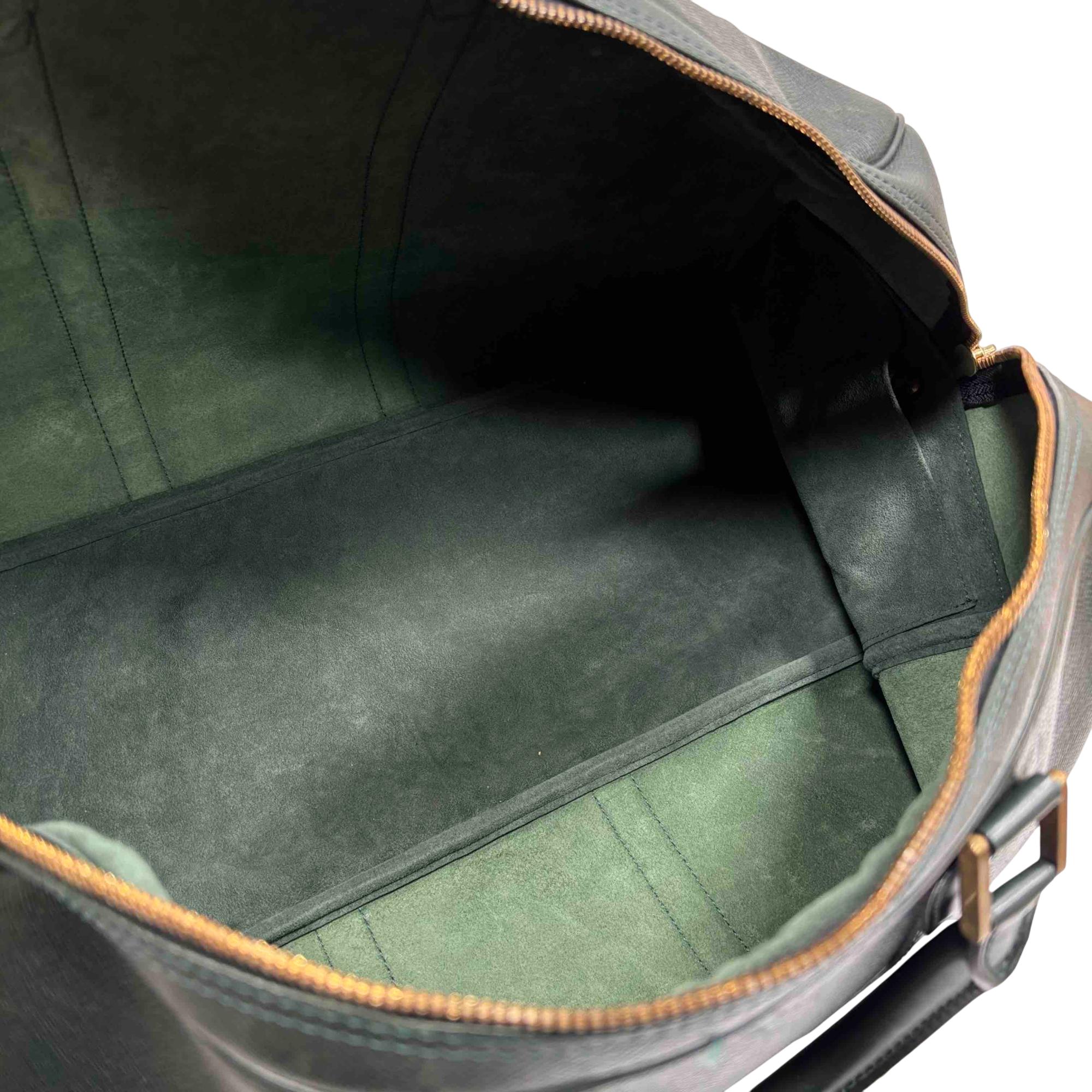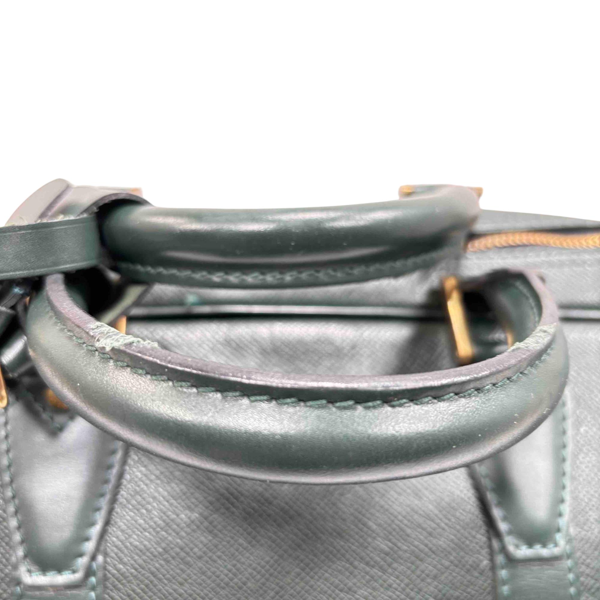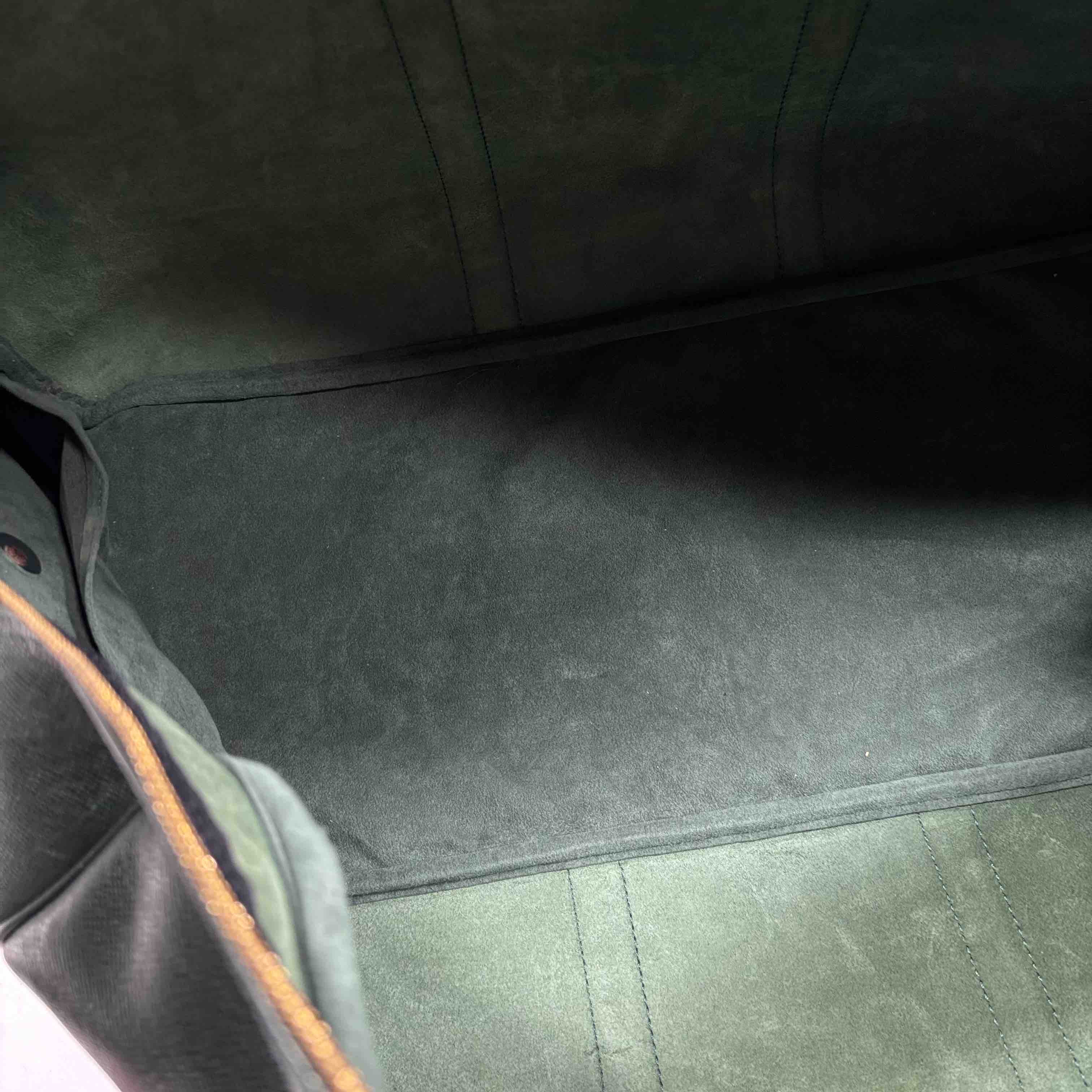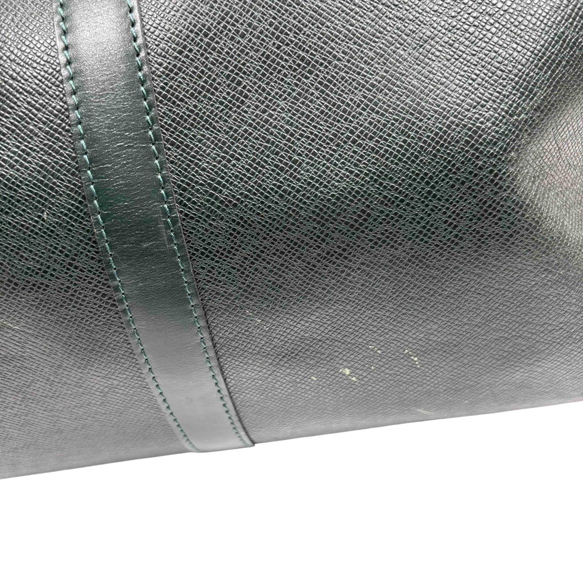 Elevate your travel style with the Louis Vuitton Taiga GM Boston Bag, a perfect blend of luxury and functionality. Crafted from exquisite black leather with gold zippers and green strap accents, this spacious bag is ideal for both casual and formal occasions. Make a statement with every journey, showcasing timeless elegance and impeccable craftsmanship. Certified authentic by Entrupy.