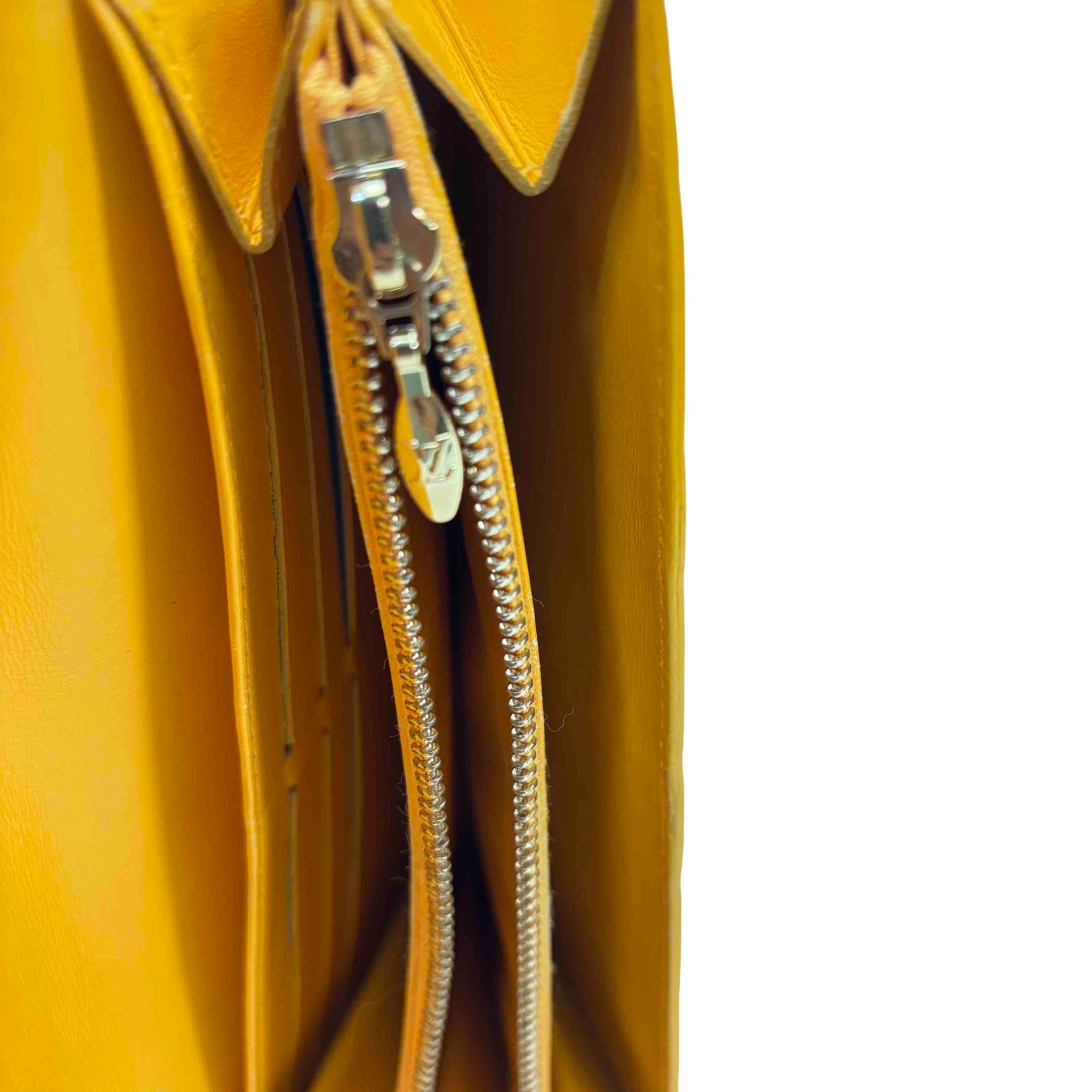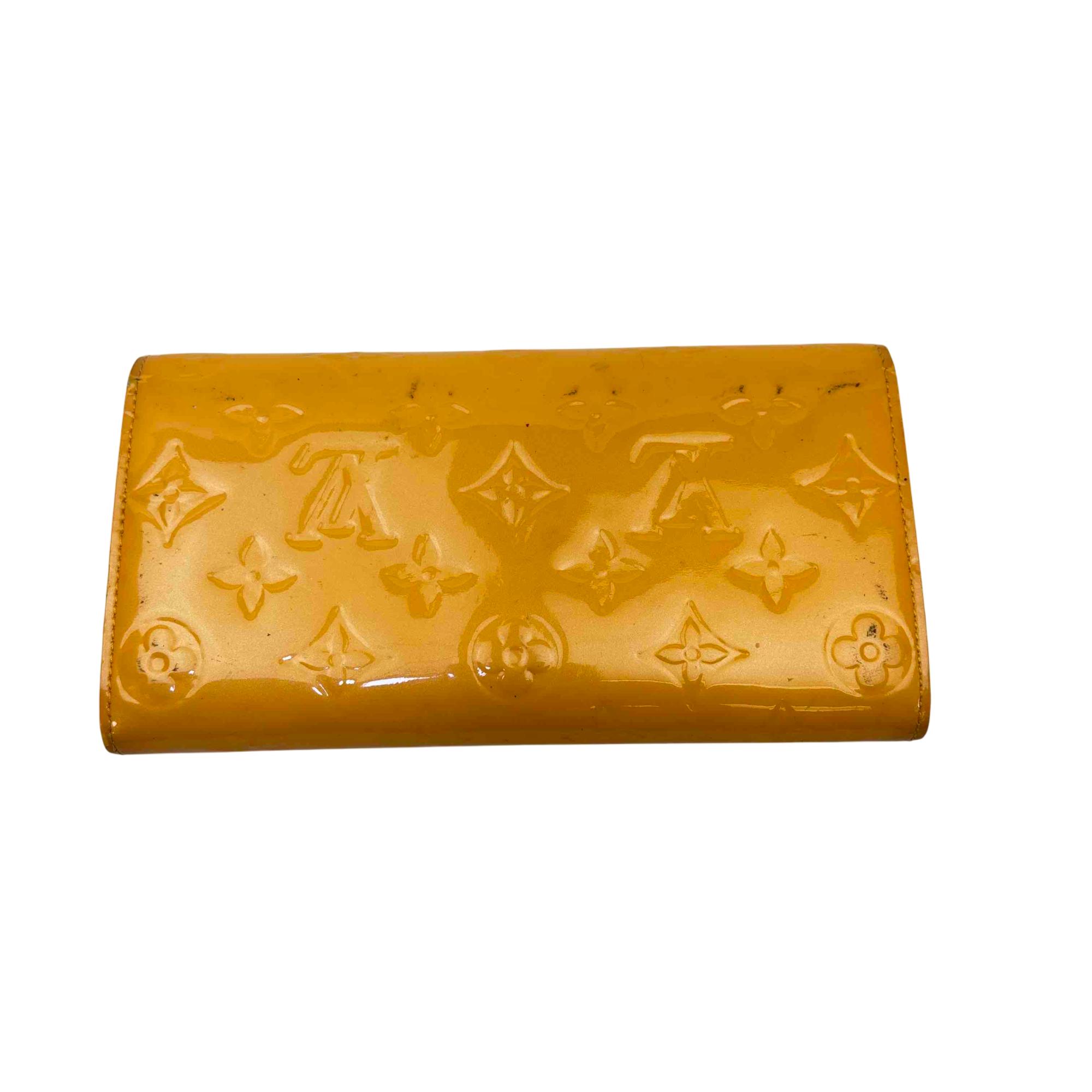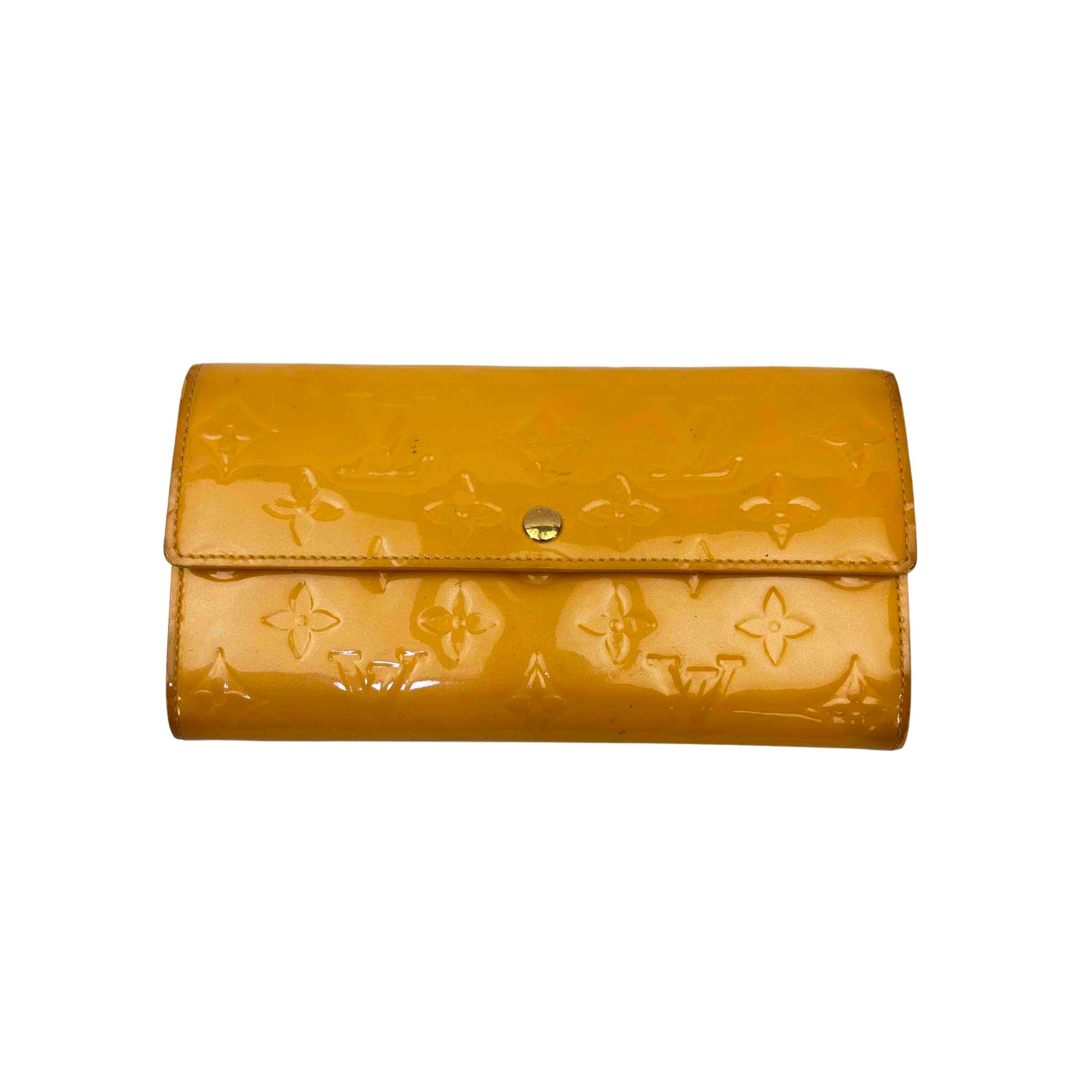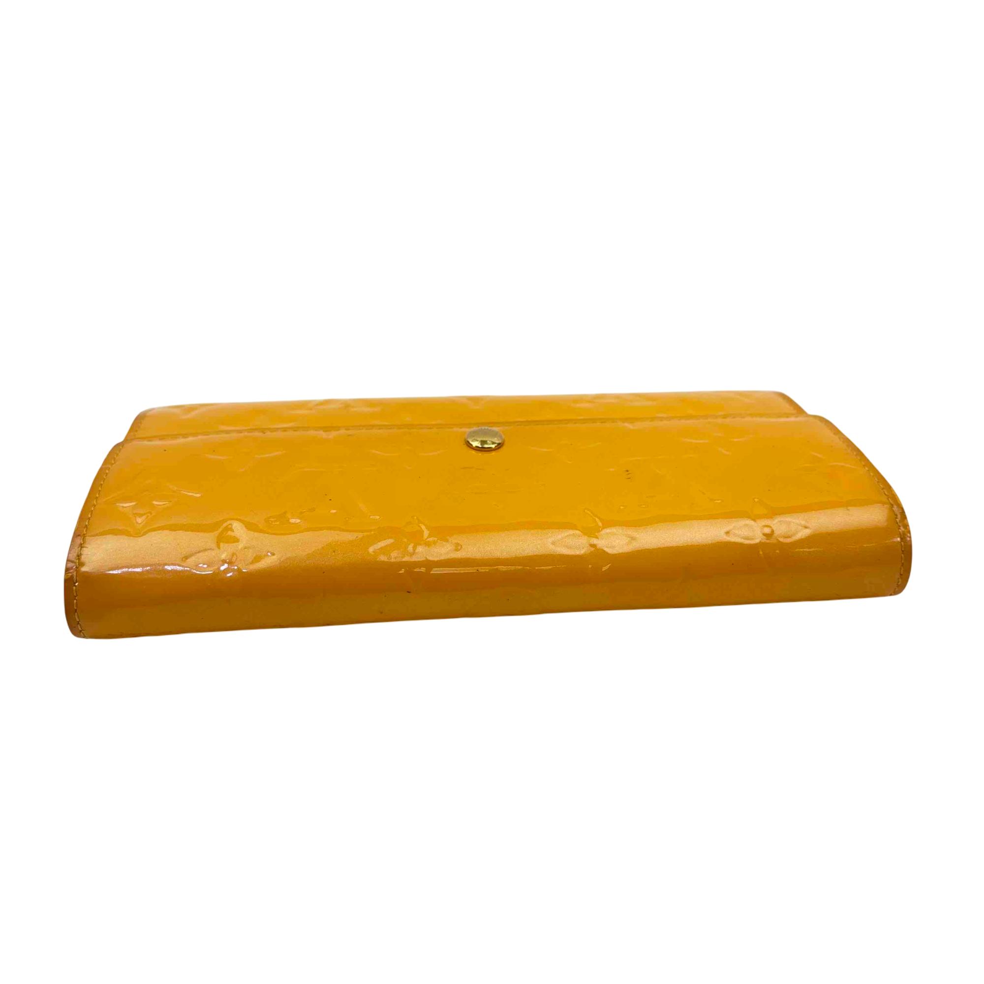 Elevate your accessory game with this stunning Louis Vuitton Epi yellow wallet. Crafted from luxurious Vernis leather, this elegant wallet features a chic button closure and sophisticated design, making it the perfect combination of style and functionality. Whether youre dressing up for a night out or just running errands, this piece will add a touch of luxury to any outfit.