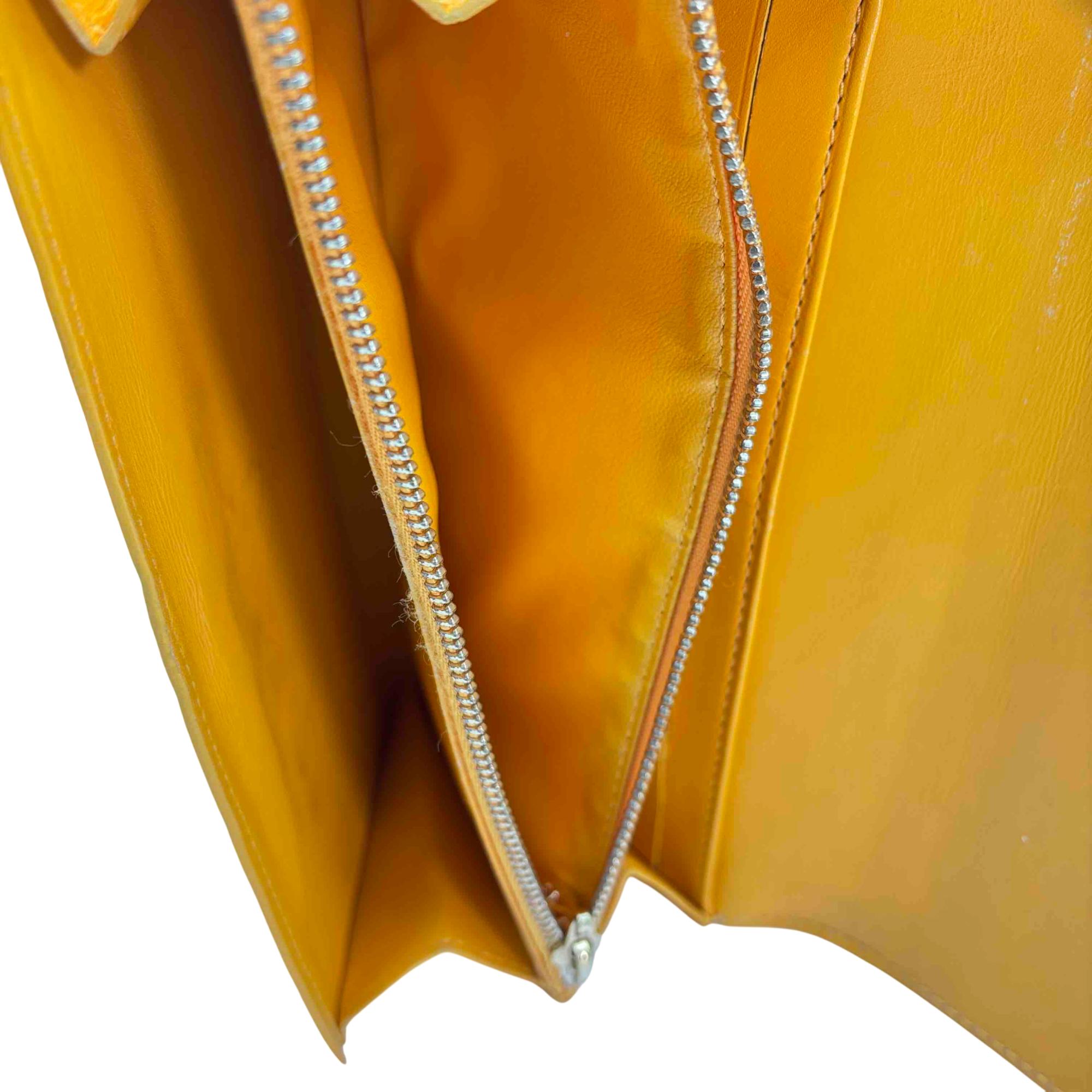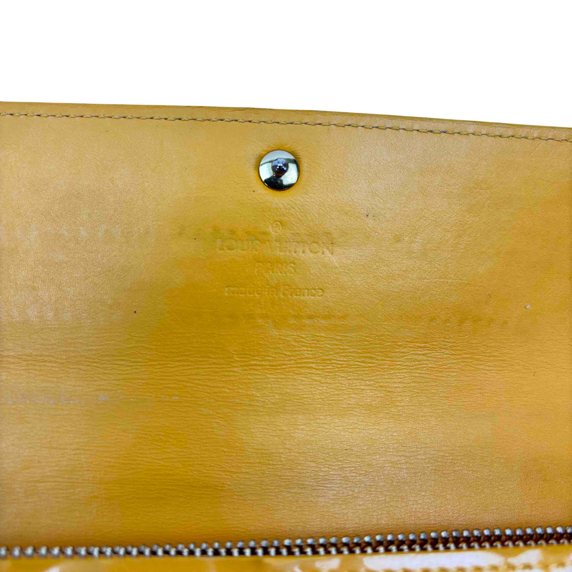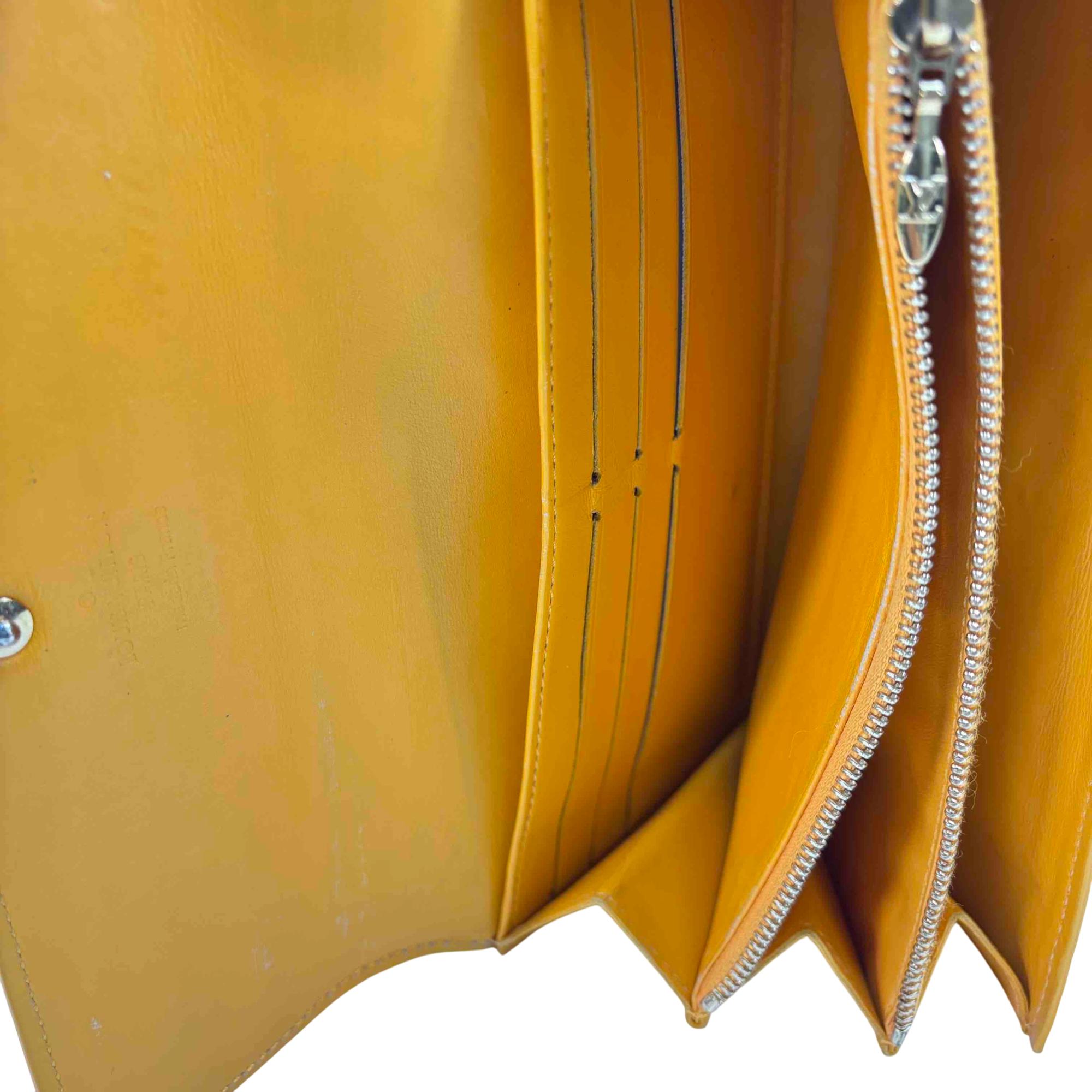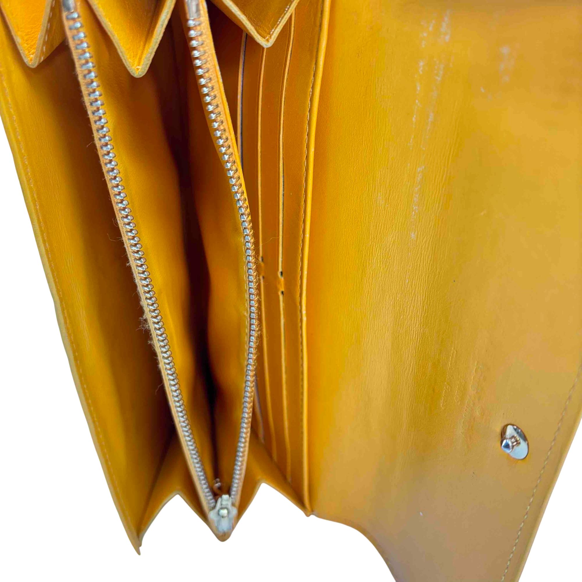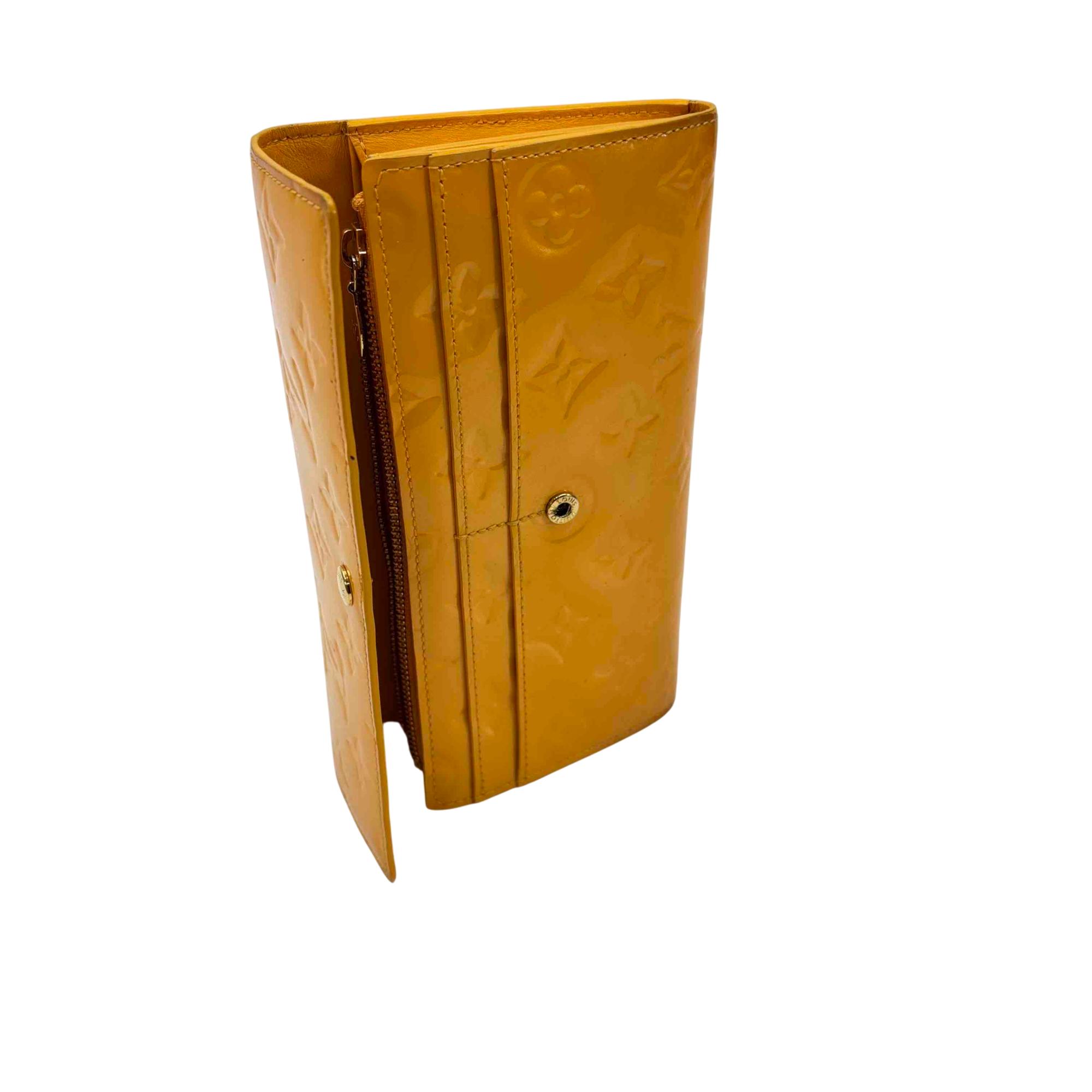 Elevate your accessory game with this stunning Louis Vuitton Epi yellow wallet. Crafted from luxurious Vernis leather, this elegant wallet features a chic button closure and sophisticated design, making it the perfect combination of style and functionality. Whether youre dressing up for a night out or just running errands, this piece will add a touch of luxury to any outfit.