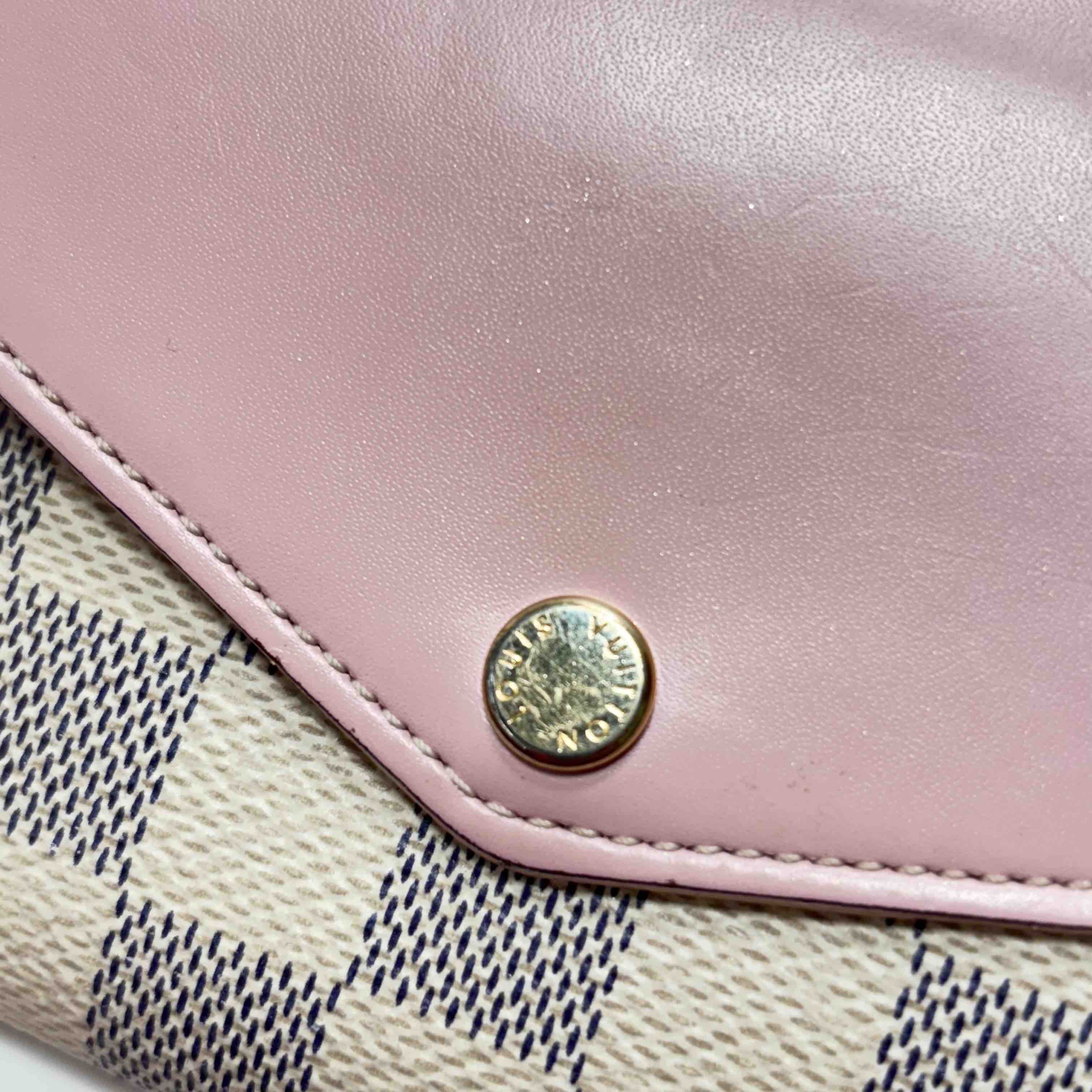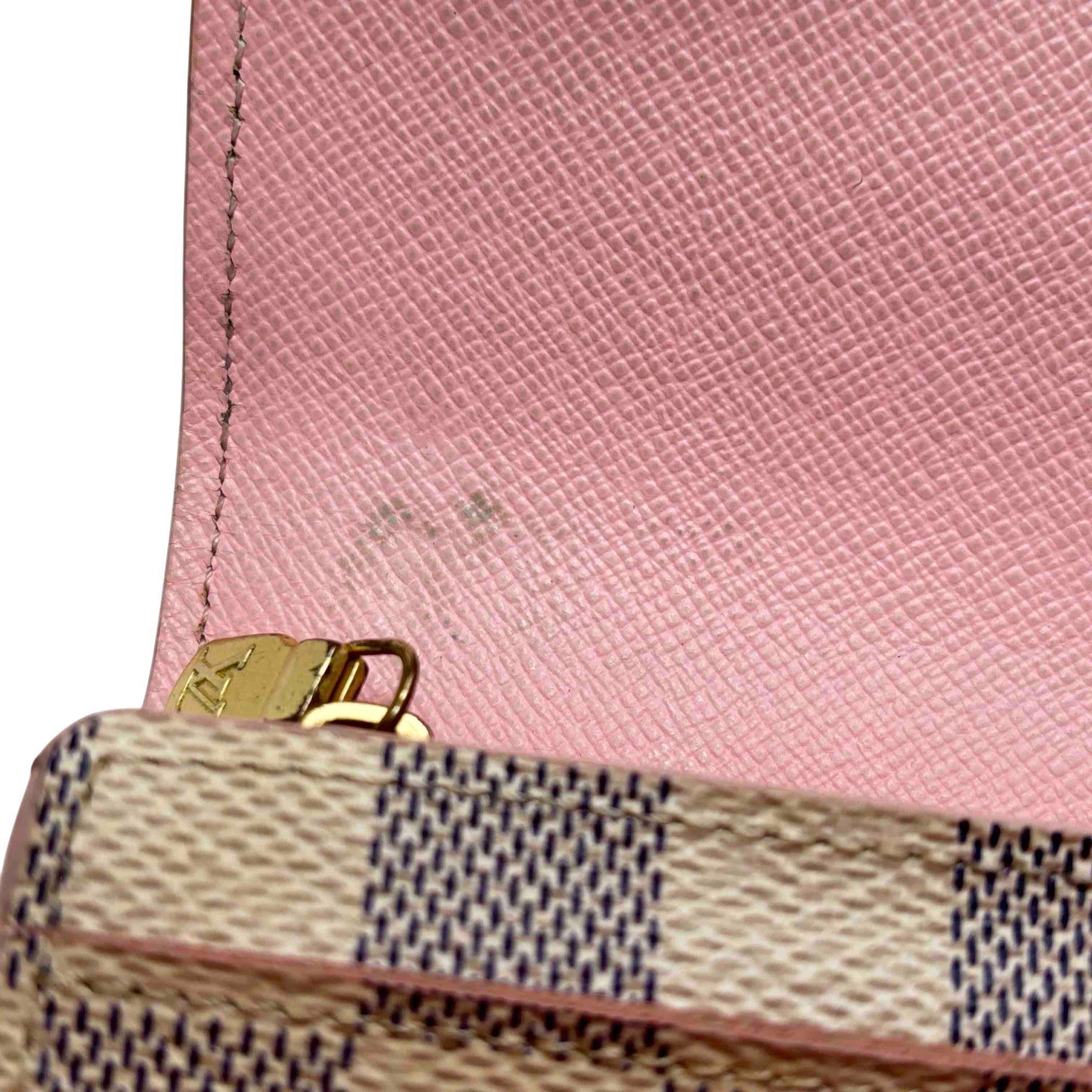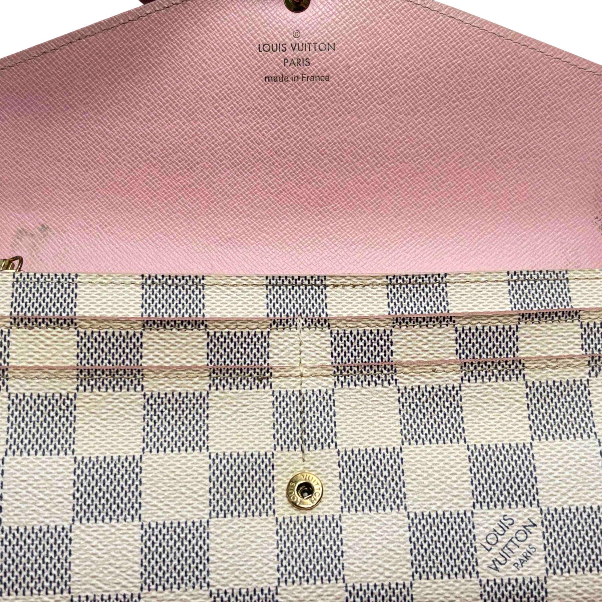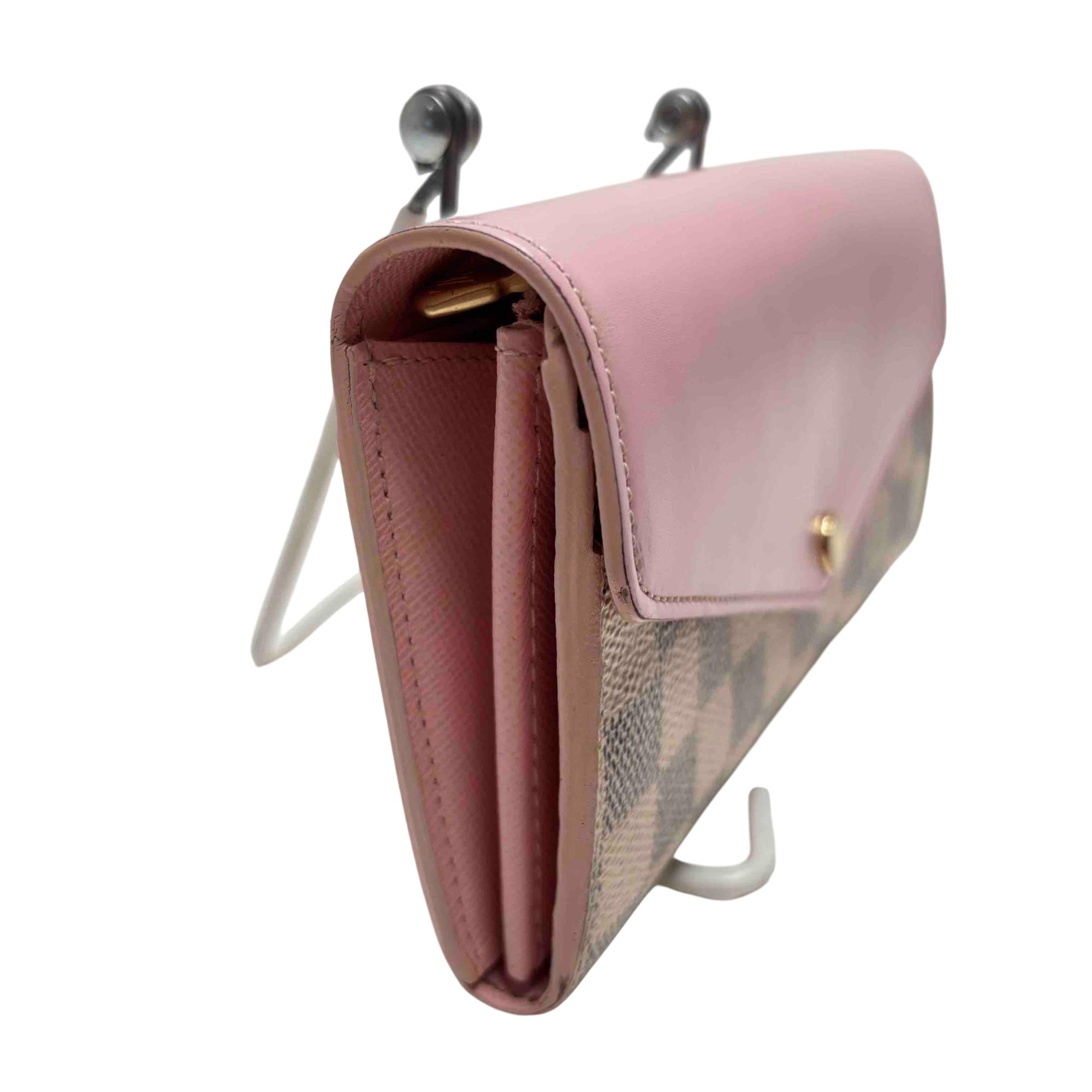 Elevate your accessory collection with the luxurious Louis Vuitton Damier Azur Pink Sarah Wallet. Crafted from premium materials, this elegant wallet features the iconic checkered Damier Azur pattern with a soft pink hue that adds a touch of sophistication to your everyday essentials. With ample space for cards and cash, this wallet seamlessly combines style and functionality for the modern fashion enthusiast.