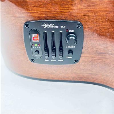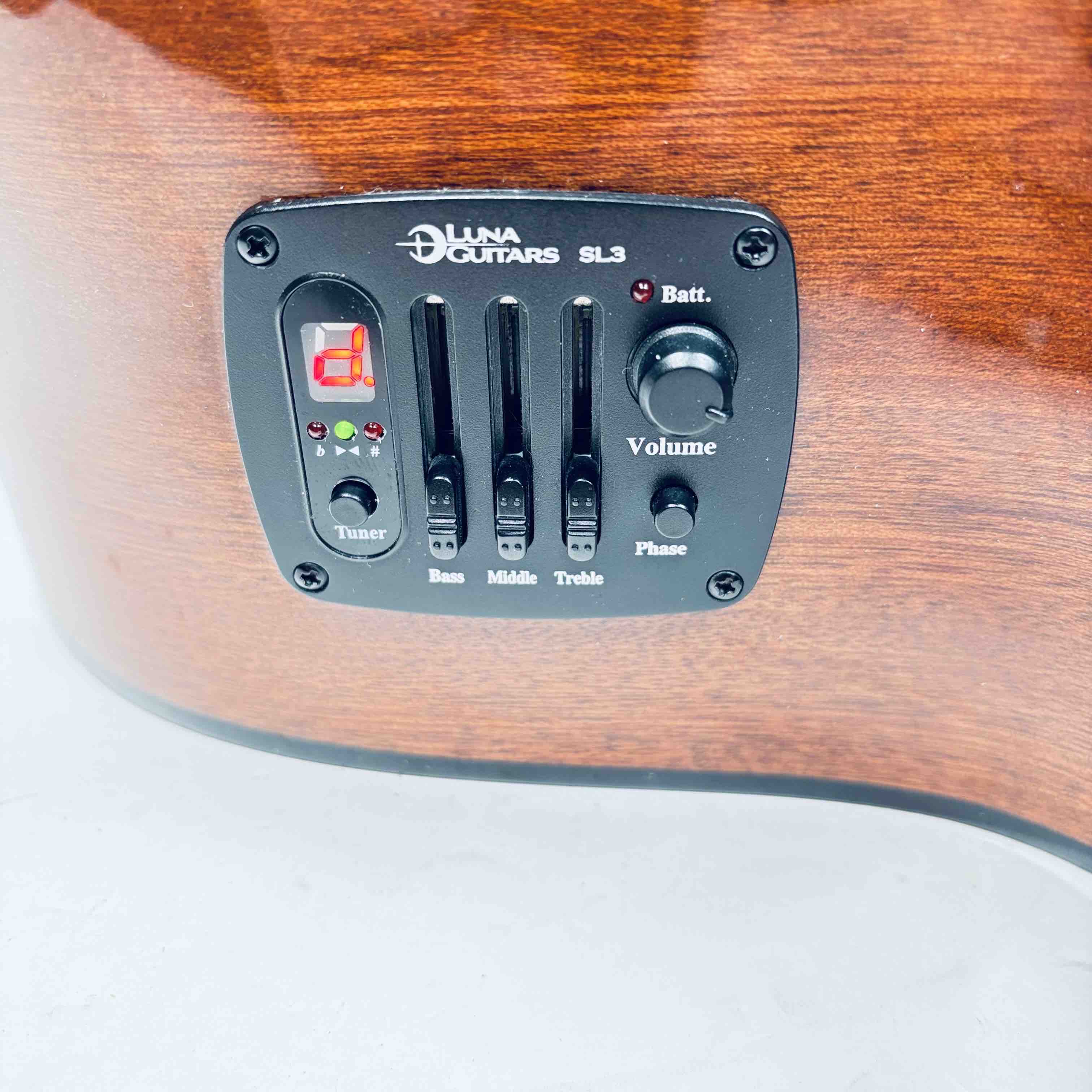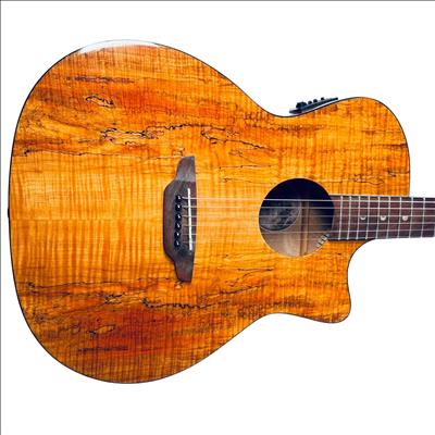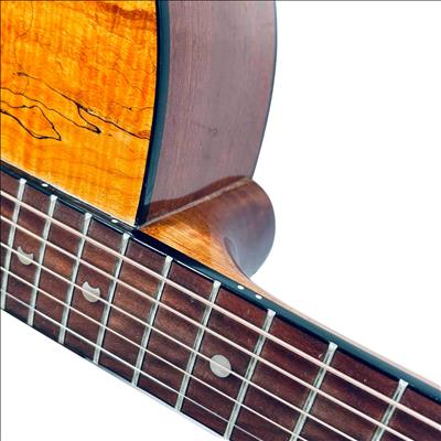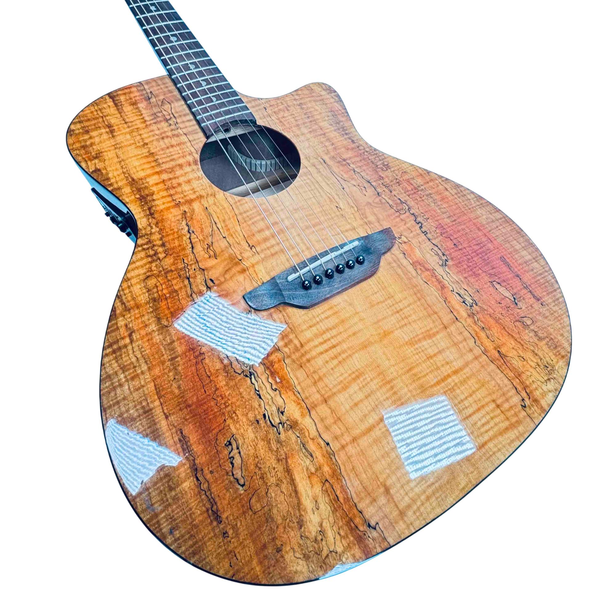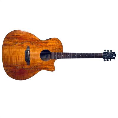 Luna Gypsy Spalt Acoustic Guitar – Gloss Natural features a striking spalted wood top with a natural gloss finish that highlights its unique grain patterns. This acoustic guitar offers rich tones with its traditional body shape and high-quality craftsmanship, ideal for both beginners and experienced players. Perfect for musicians seeking an exotic, visually stunning instrument with excellent sound projection.