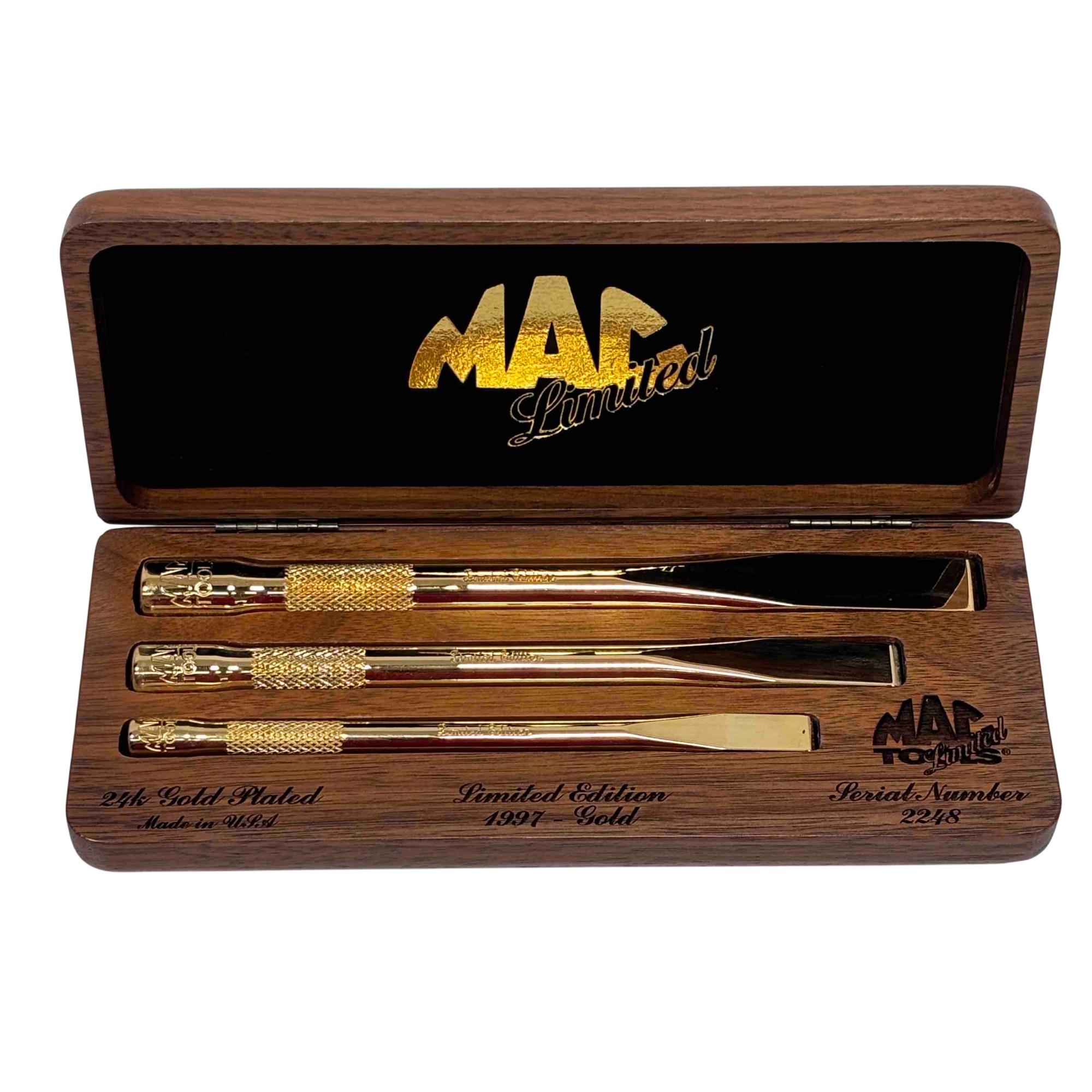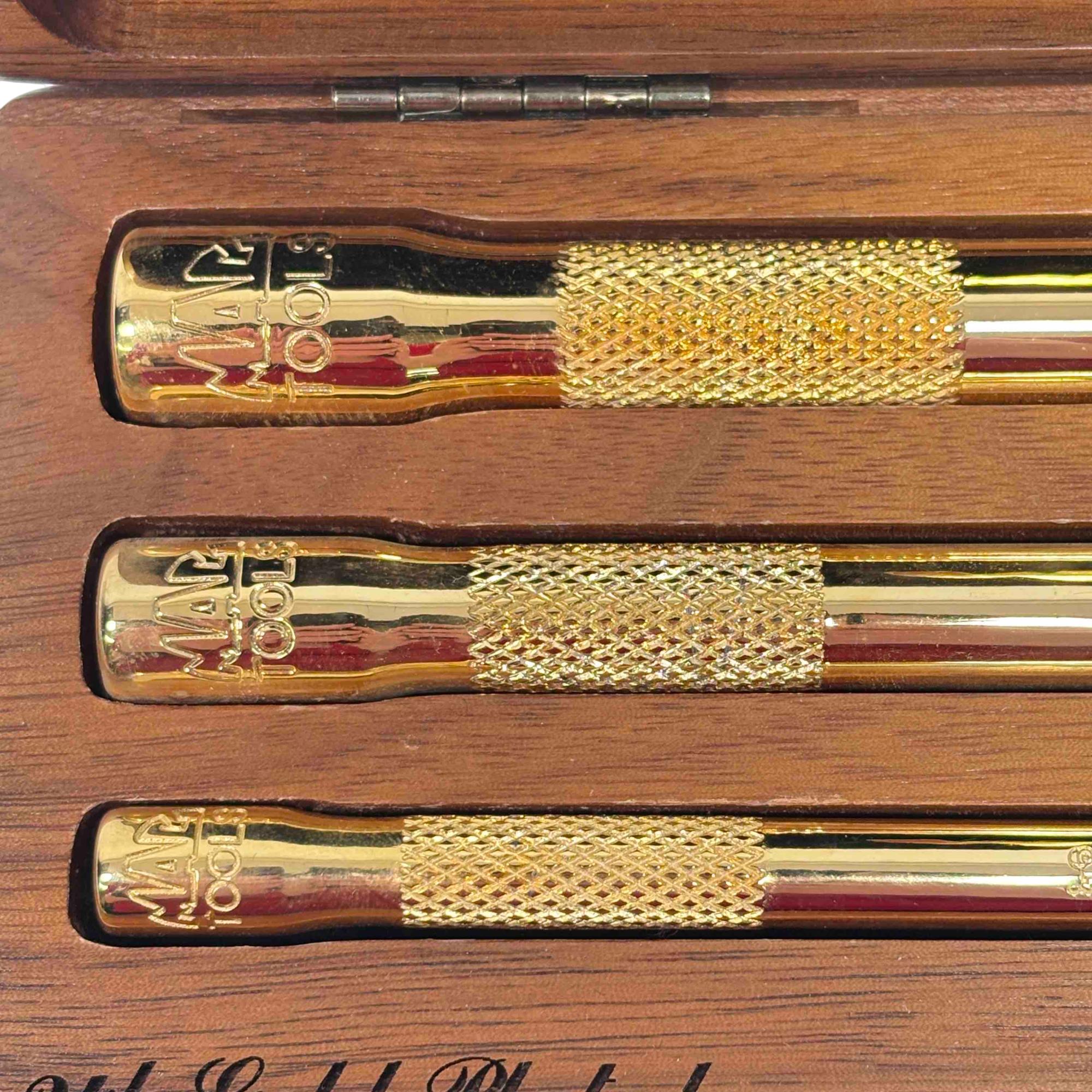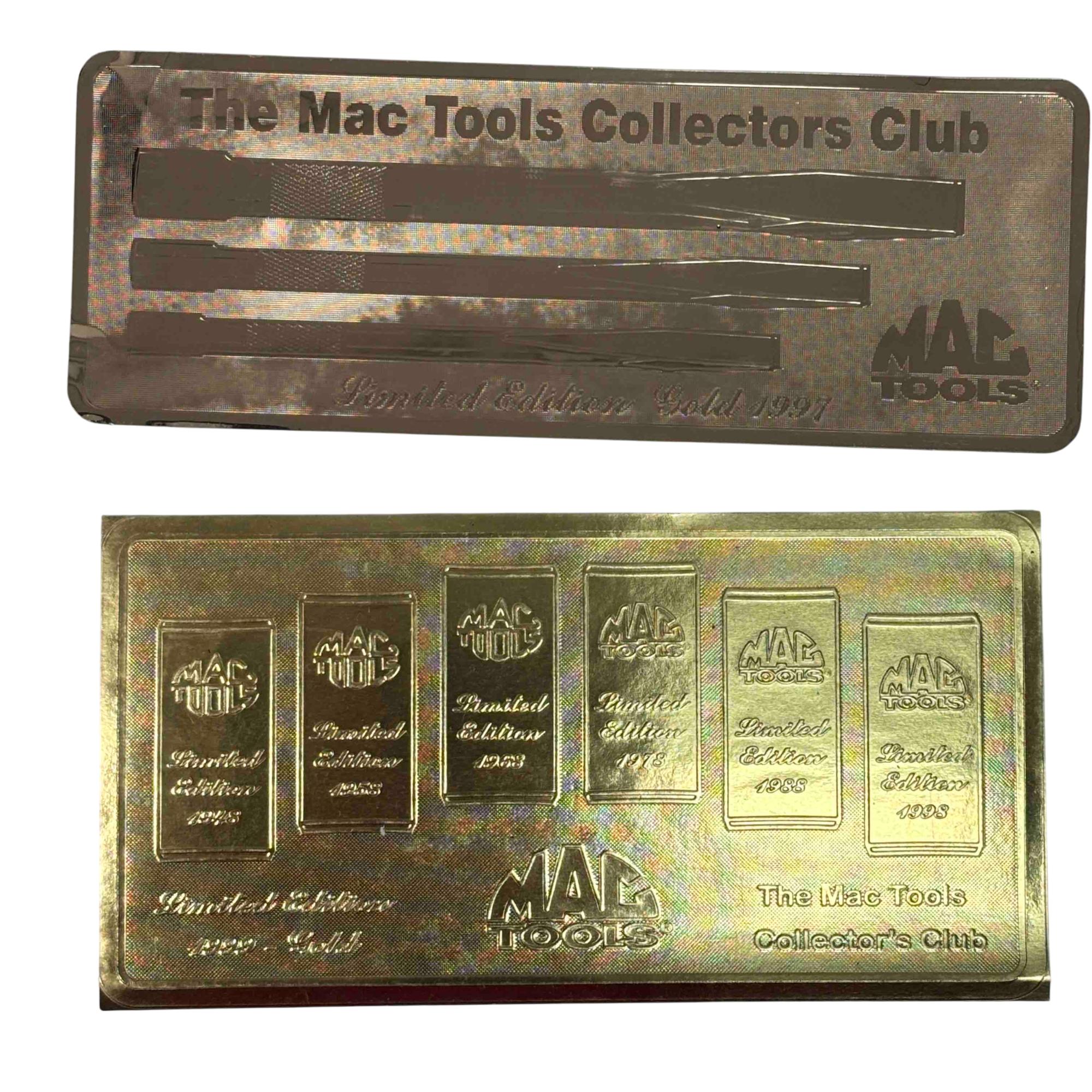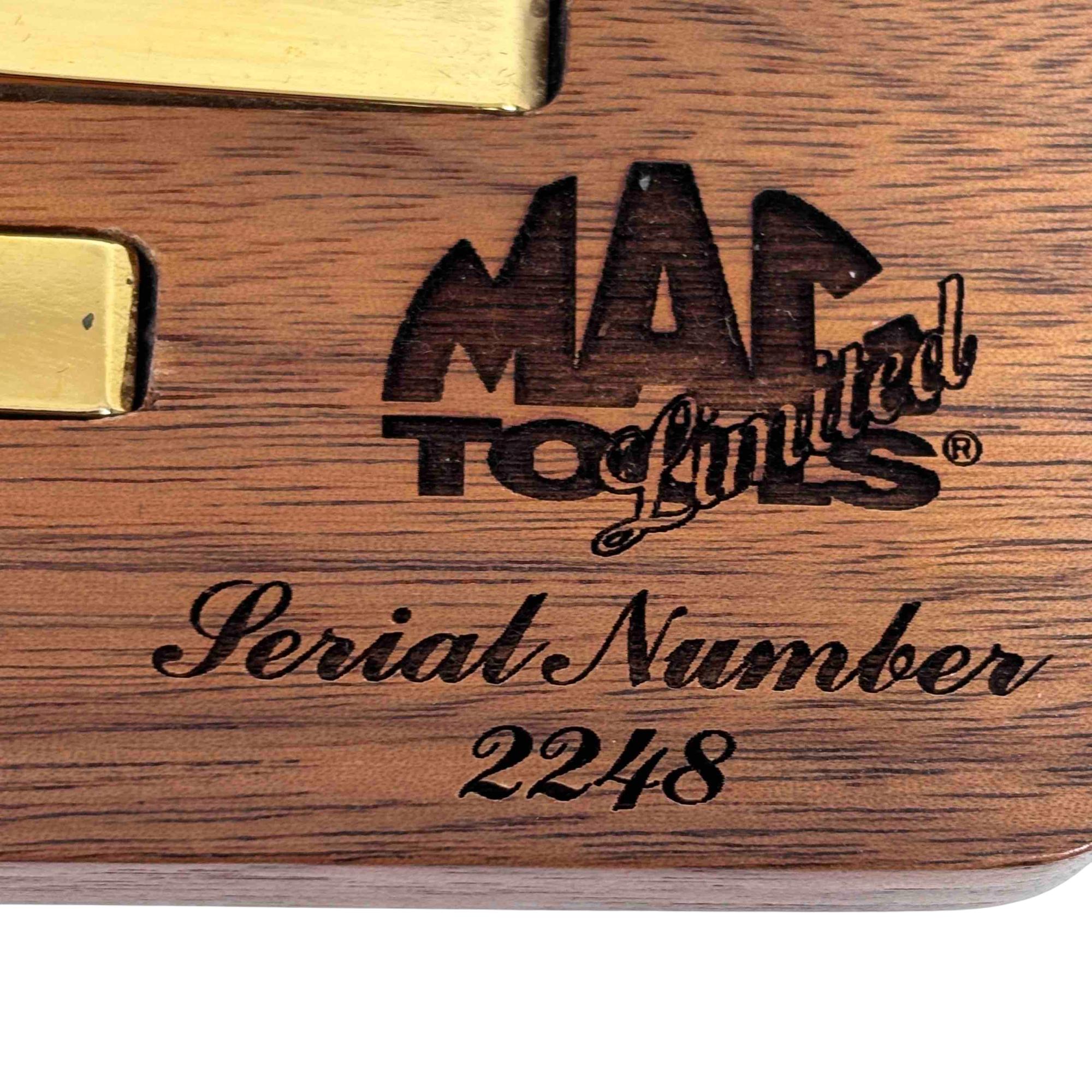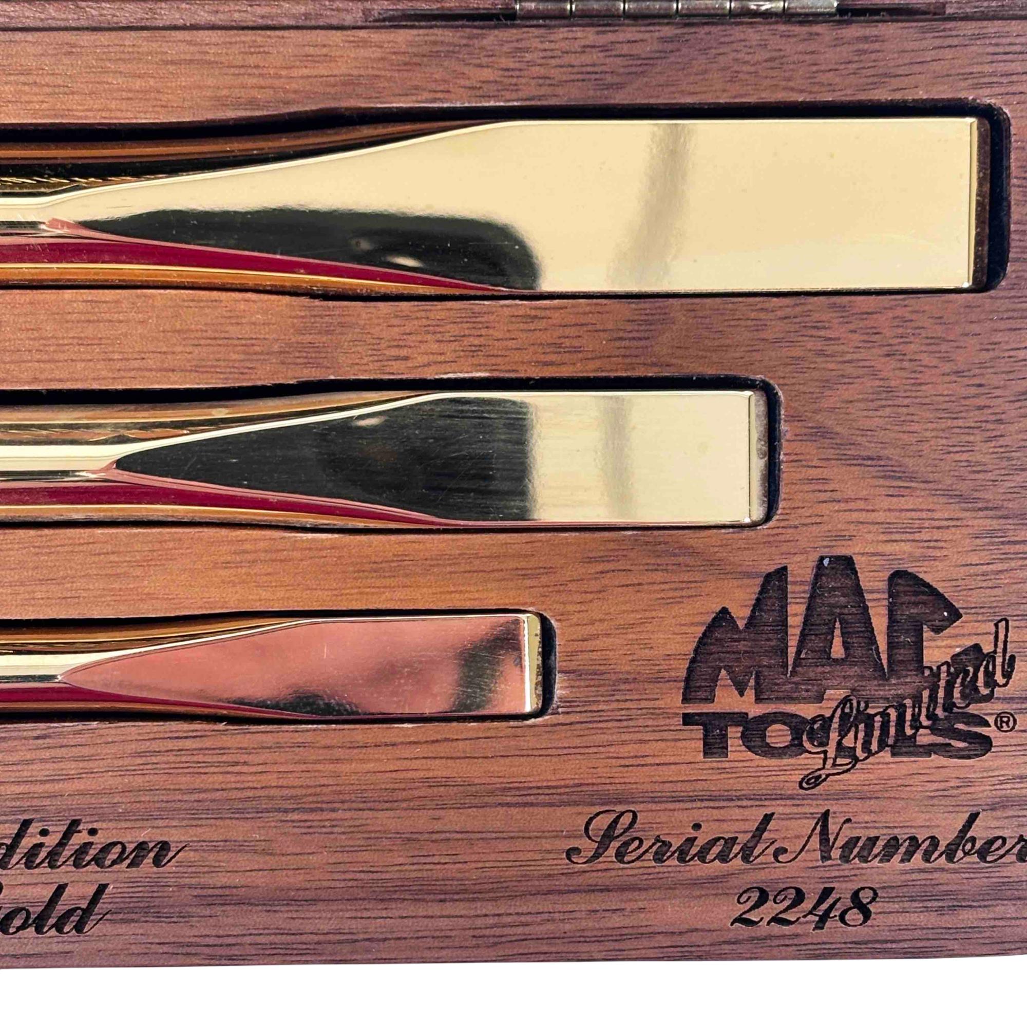 Showcase luxury and precision with this rare MAC Tools Limited Edition 1997 gold-plated chisel set. Each tool is expertly plated in 24k gold and presented in a stunning wooden display box with engraved details and unique serial number 2248, making it a true collector’s piece for professionals and enthusiasts alike. Elevate any workshop or collection with this prestigious, high-quality commemorative set.