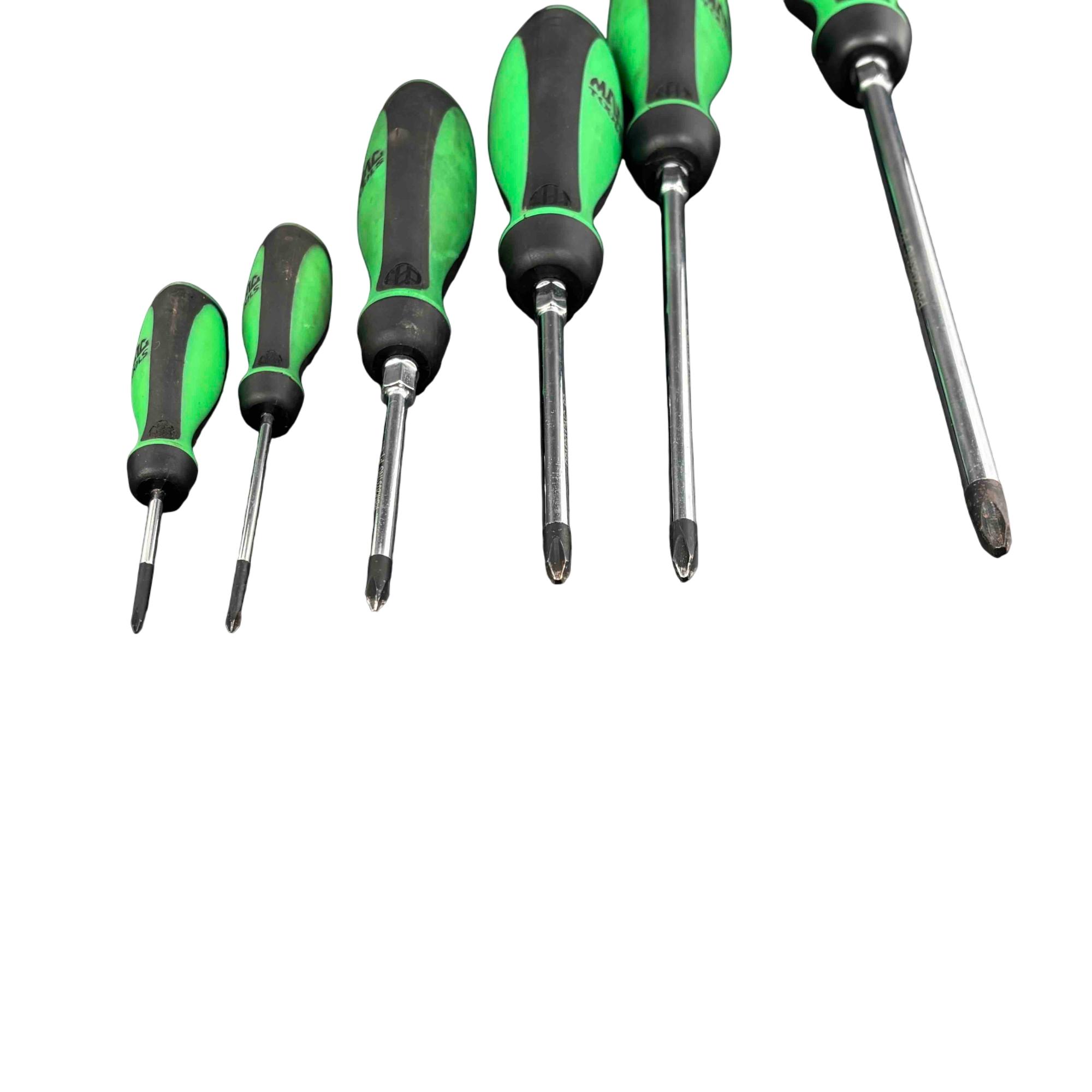 Upgrade your toolkit with this MAC Tools 6-piece screwdriver set, featuring ergonomic green and black handles for superior grip and comfort. This set includes both slotted and Phillips head screwdrivers in various sizes, perfect for automotive and professional use. Trusted for durability and performance, these MAC Tools screwdrivers are designed to handle tough jobs effortlessly.