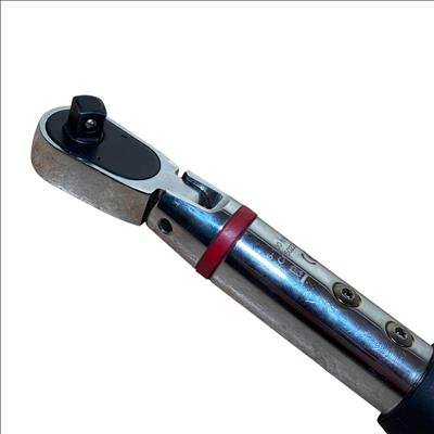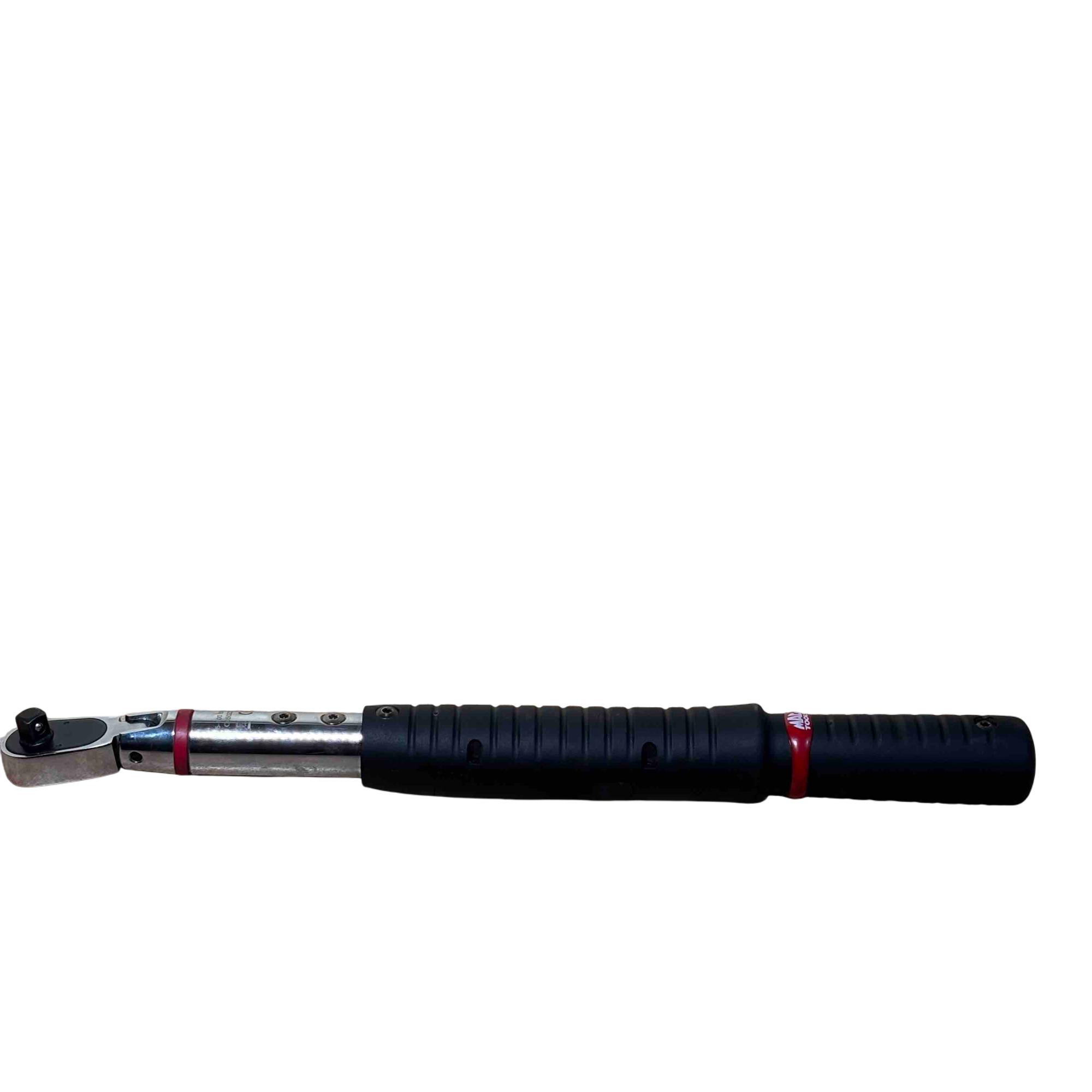 Mac Tools TWXA100FD Electronic Torque Wrench 5–100 ft/lb. This precision torque wrench features a clear digital display and an ergonomic design with a red protective case for durability. It offers accurate torque measurement within a 5 to 100 ft/lb range, ideal for professional and automotive applications.