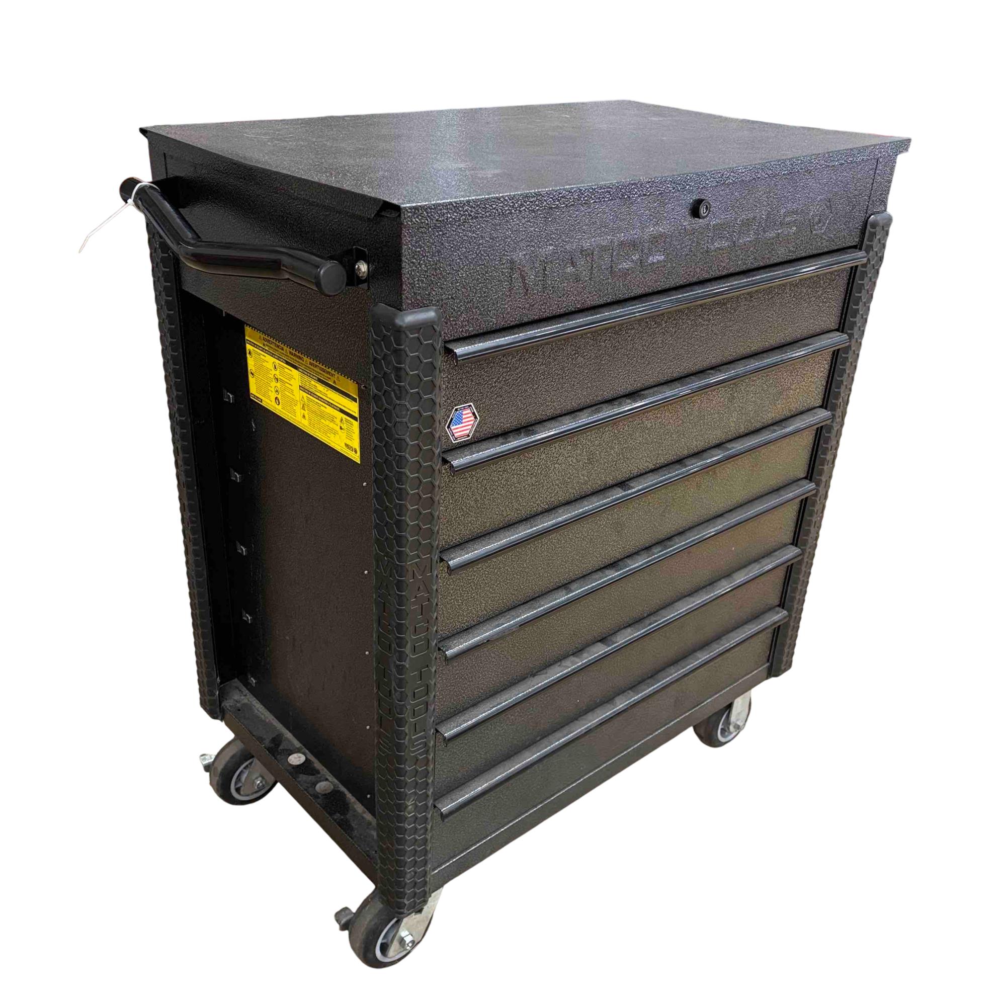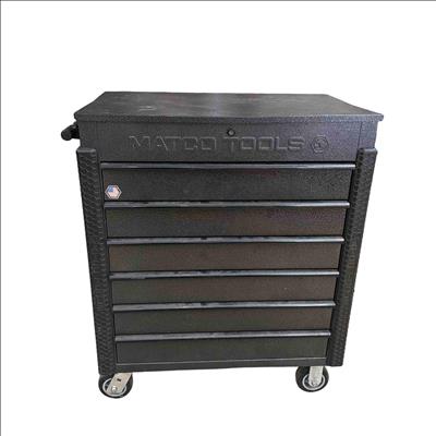Matco Tools JSC483-SSB 6-Drawer Rolling Tool Cart features a durable black and silver vein finish with six spacious drawers for organized tool storage. Designed with sturdy wheels and a reinforced metal frame, this professional-grade cart offers mobility and heavy-duty performance for mechanics and technicians. Its compact 35" x 22" footprint makes it ideal for efficient workshop use.