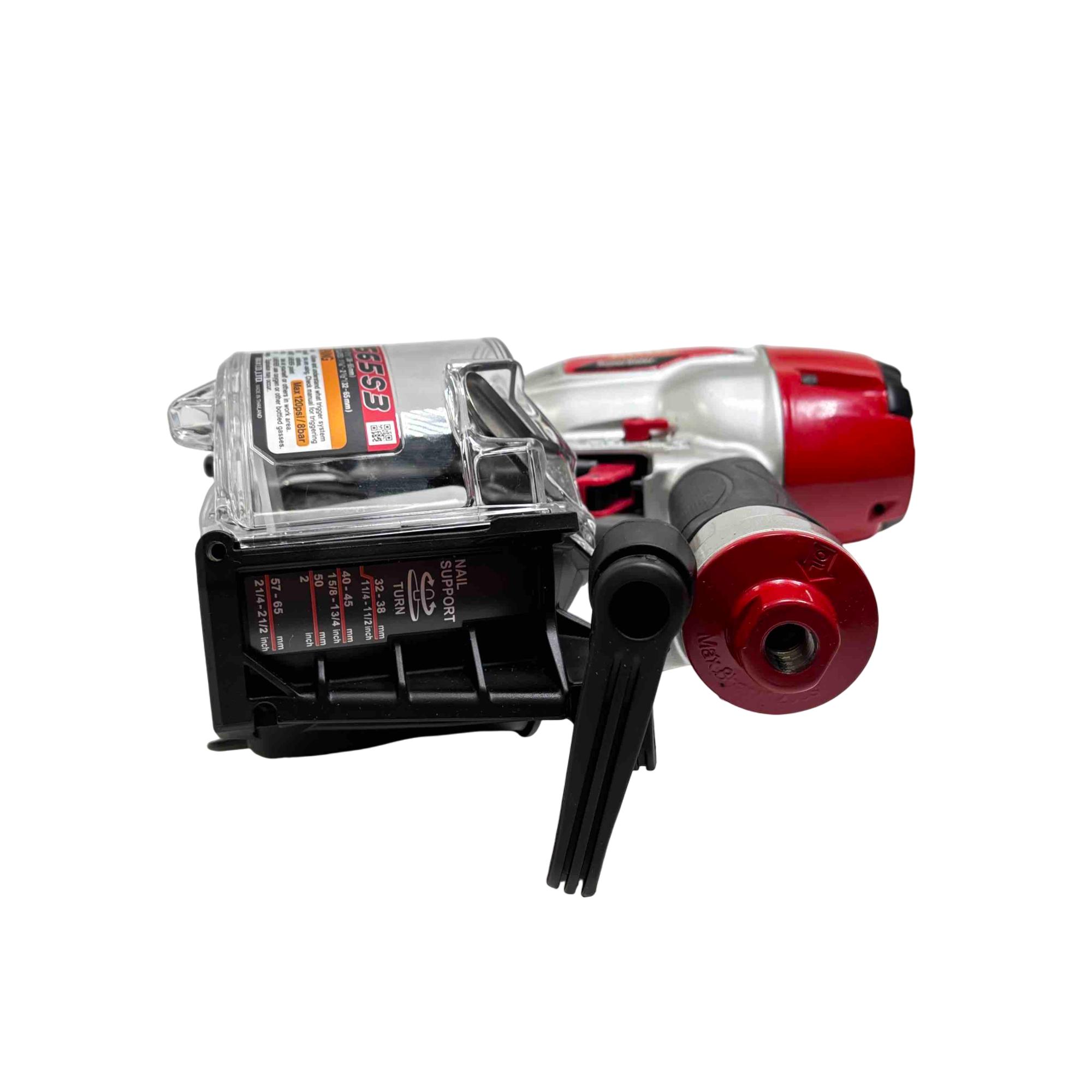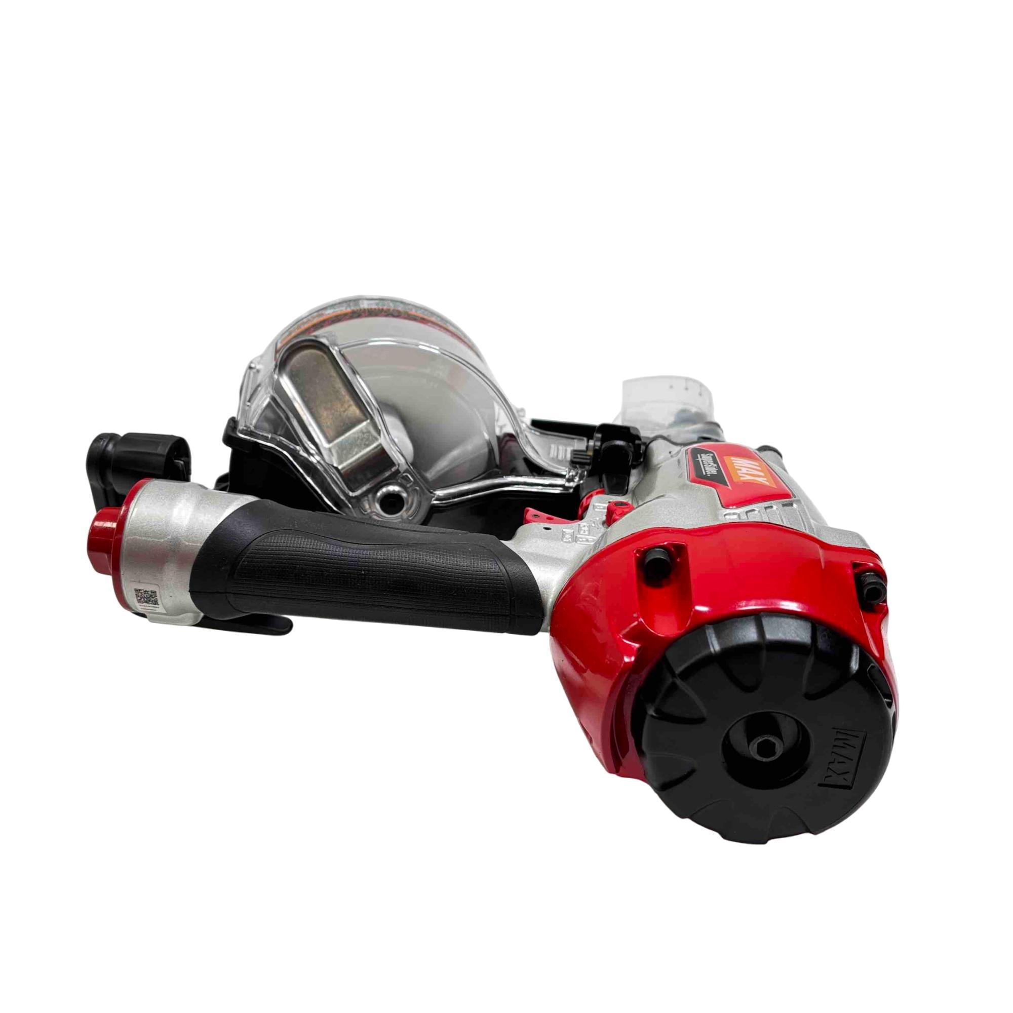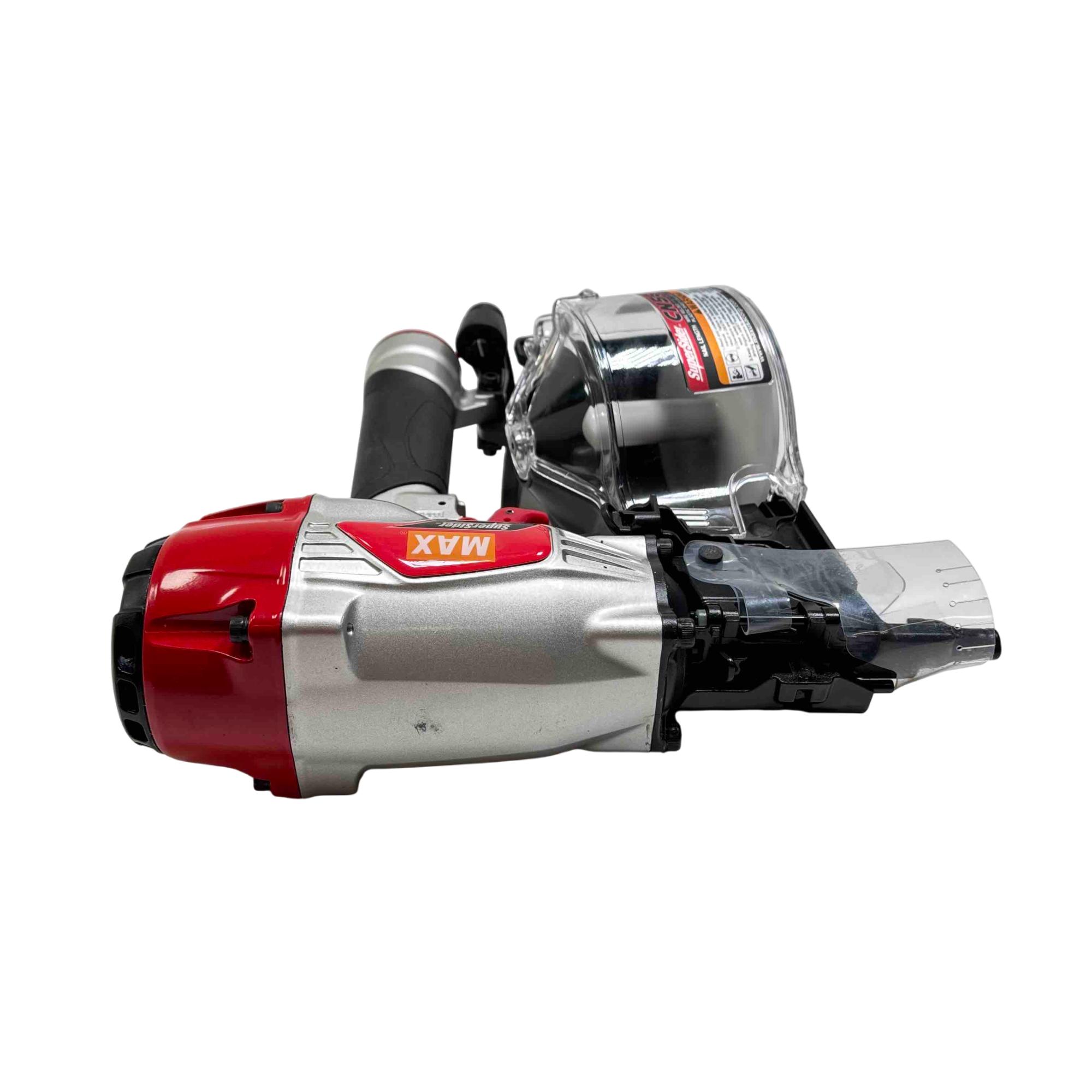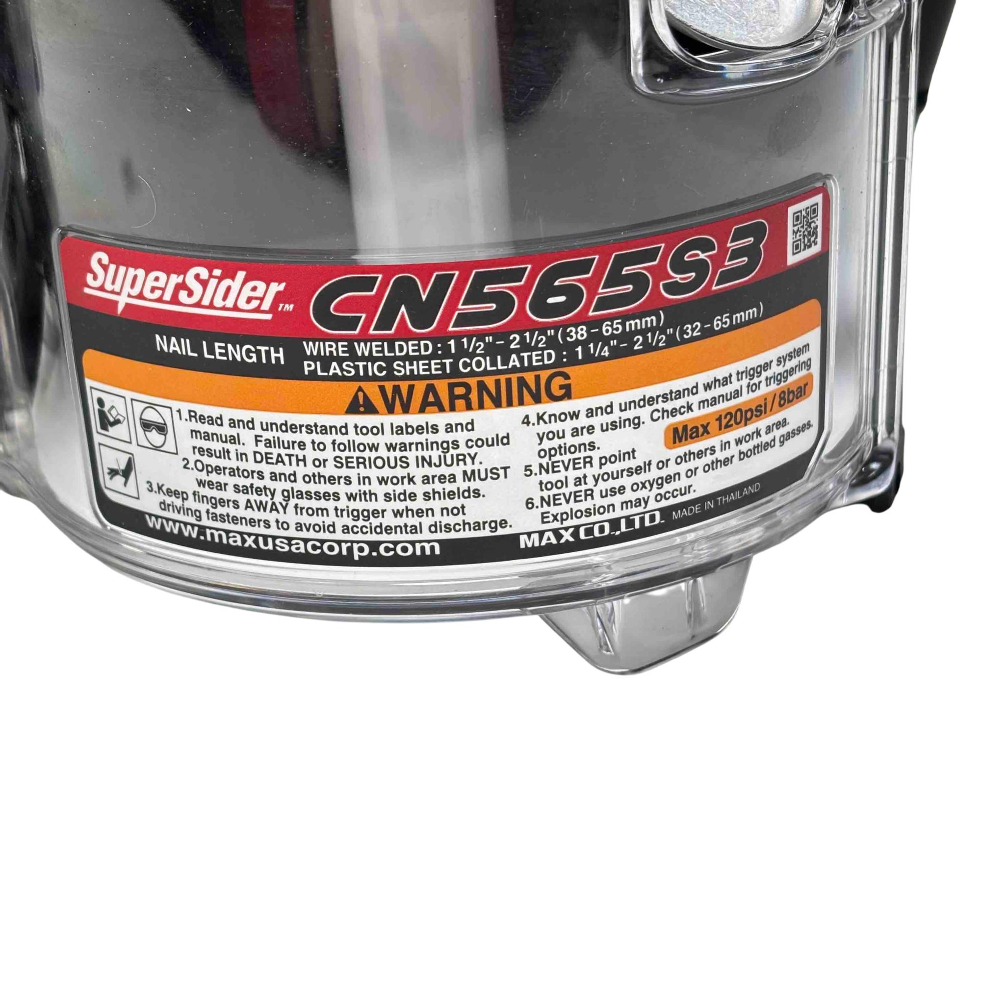 The MAX SuperSider CN565S3 is a heavy-duty pneumatic coil nail gun designed for professional construction and siding work. With its ergonomic handle, durable red and silver housing, and compatibility with both wire welded and plastic sheet collated nails (1"–2-1/2"), this tool ensures fast and efficient performance on any job site. Ideal for contractors or serious DIYers seeking reliability and precision, the CN565S3 also features advanced safety mechanisms and easy maintenance for everyday use.