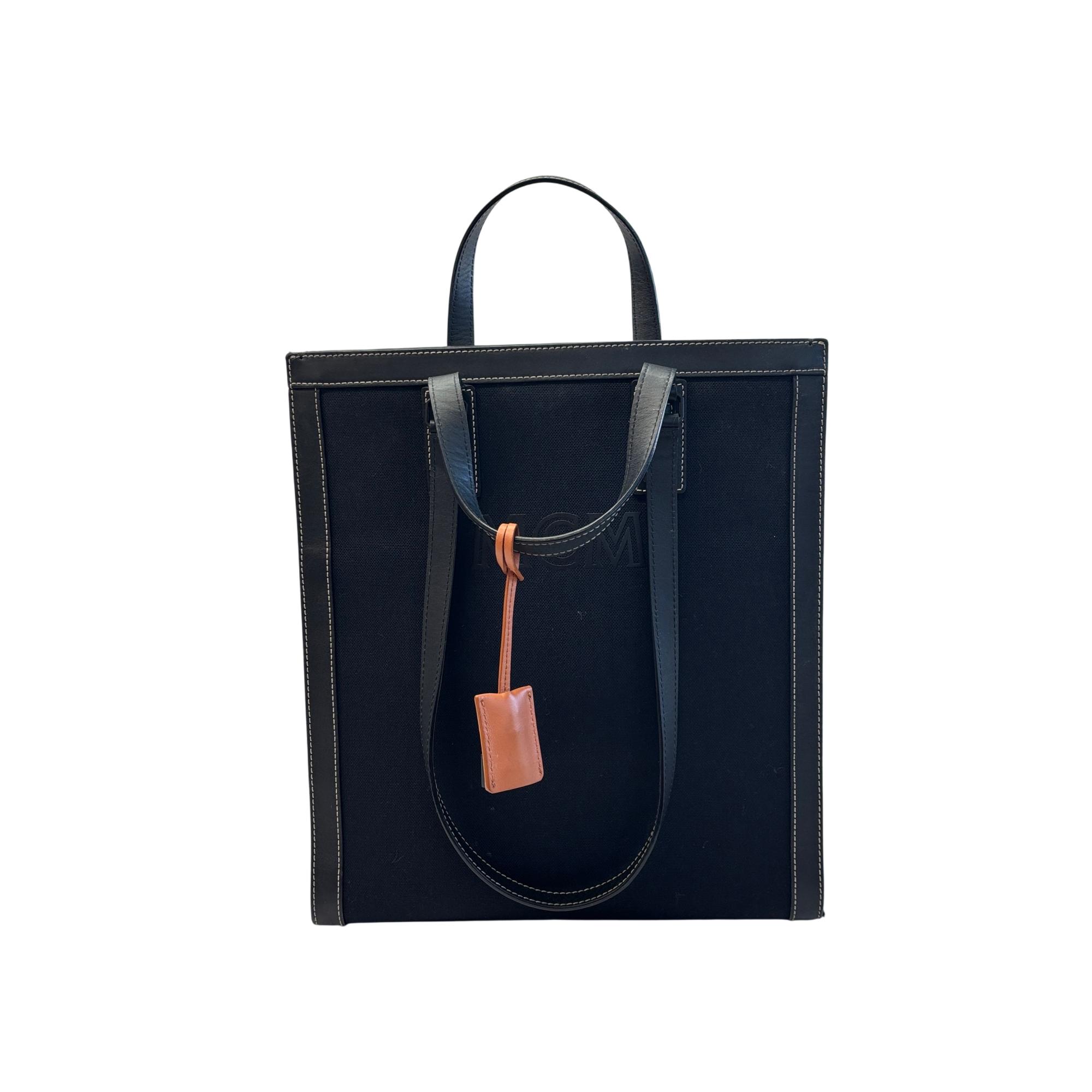 A minimalist, structured silhouette with bold, tonal MCM logo lettering on the face