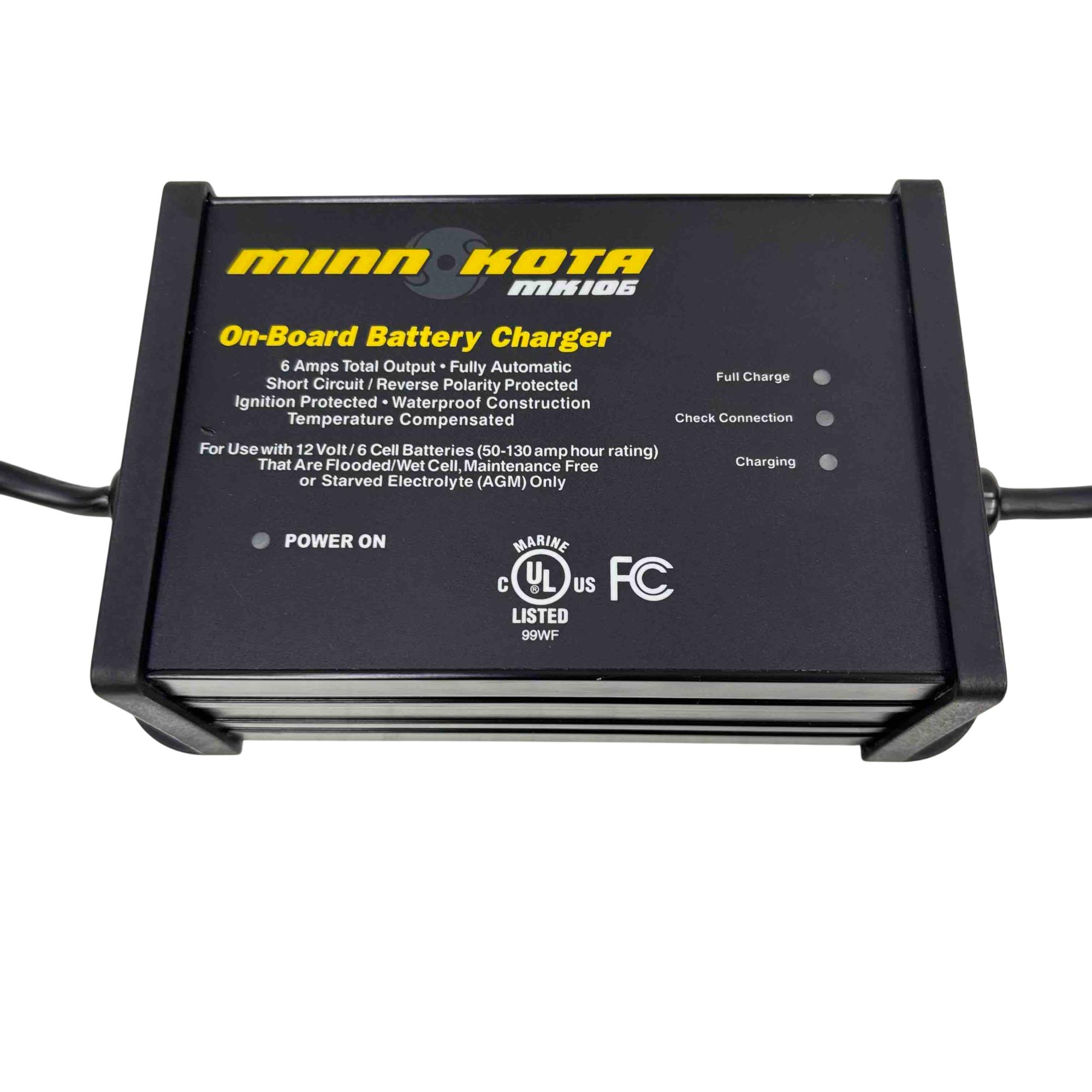 Power your adventure with the MINN-KOTA MK106 On-Board Battery Charger, designed for serious marine enthusiasts and anglers. With 6 amps total output and fully automatic charging, this unit is waterproof, ignition and short circuit protected, and compatible with 12V wet cell, maintenance-free, or AGM batteries (50-130 amp hour). Trust the reliability of MINN-KOTA to keep your boat batteries in peak condition for every trip.