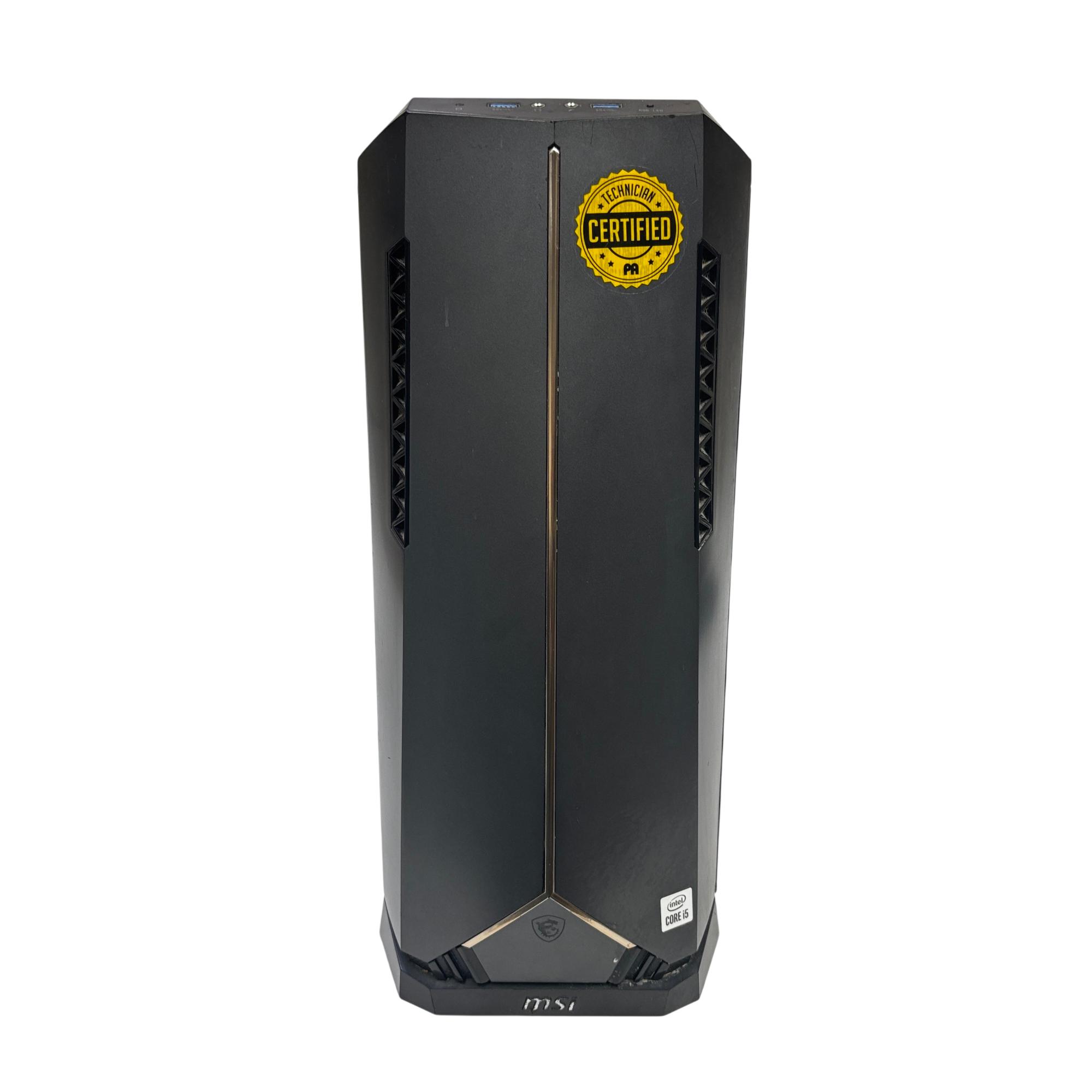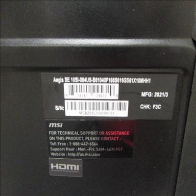 This MSI Aegis SE 10SI-084US Gaming Desktop features a powerful Intel Core i5-10400 processor clocked at 2.9GHz, paired with 16GB of RAM and a 512GB SSD for fast performance and ample storage. This gaming desktop is equipped with a GTX 1660 Super graphics card and runs on Windows 11 Home, delivering smooth and immersive gaming experiences in a sleek black tower design with distinctive yellow labels.