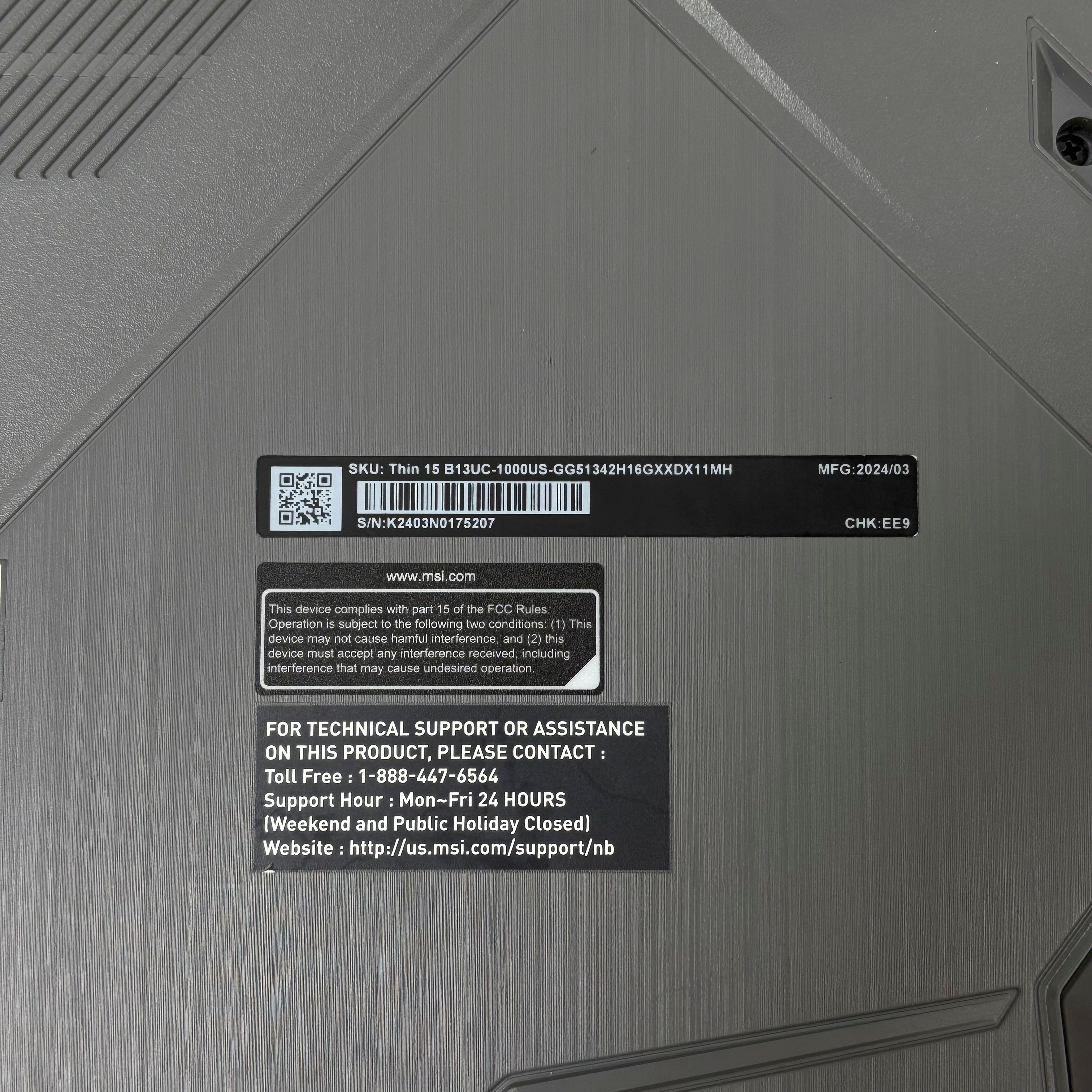 The MSI Thin 15 B13UC-1000US is a 15.6-inch laptop featuring an Intel Core i5-13420H processor and NVIDIA RTX 3050 graphics. It comes with 16GB of RAM, a 512GB SSD, a backlit keyboard, and Wi-Fi and Bluetooth connectivity, delivering strong performance for work and gaming in a slim, portable design.