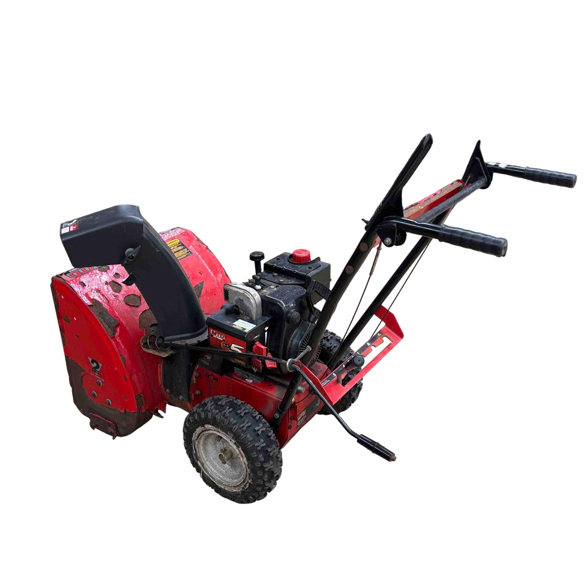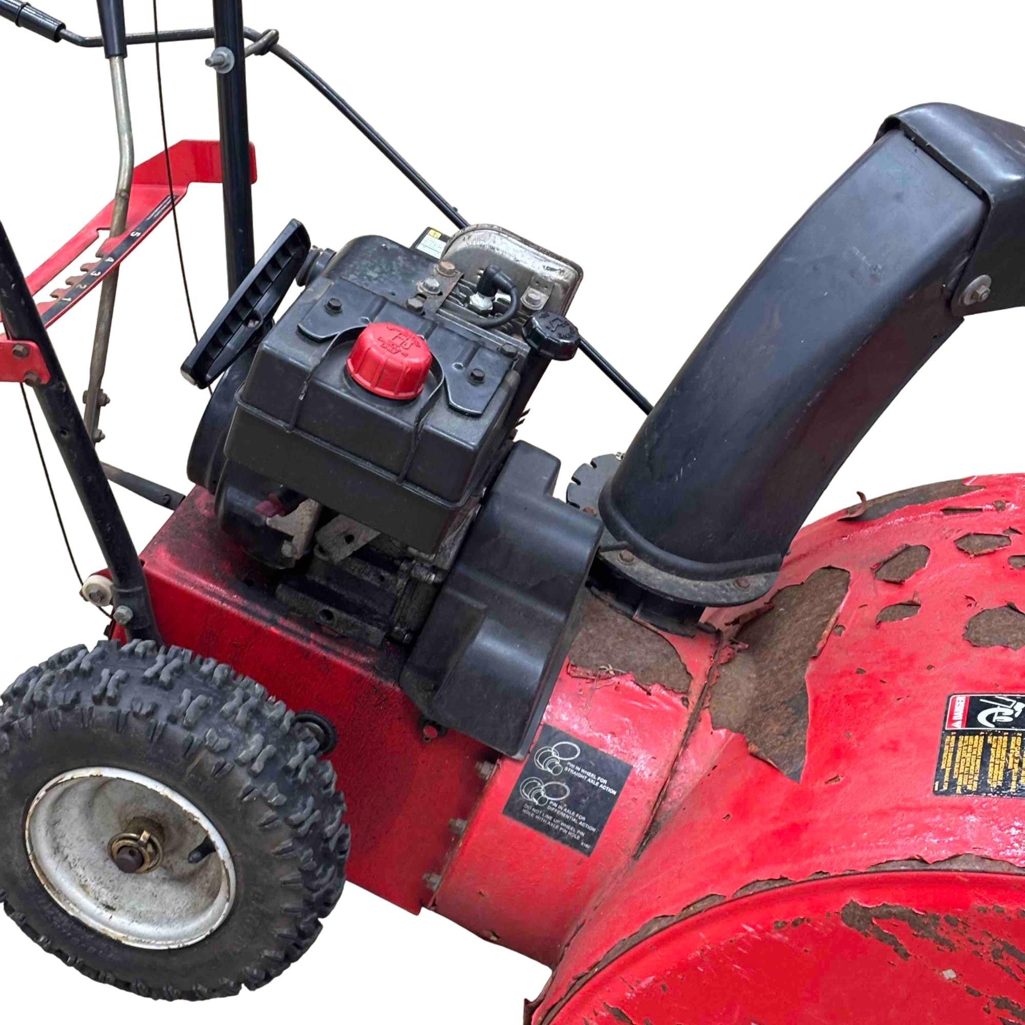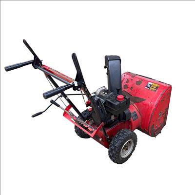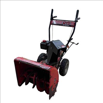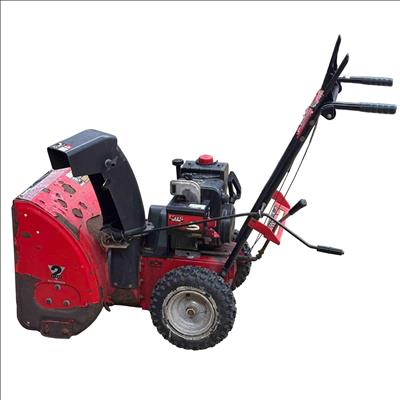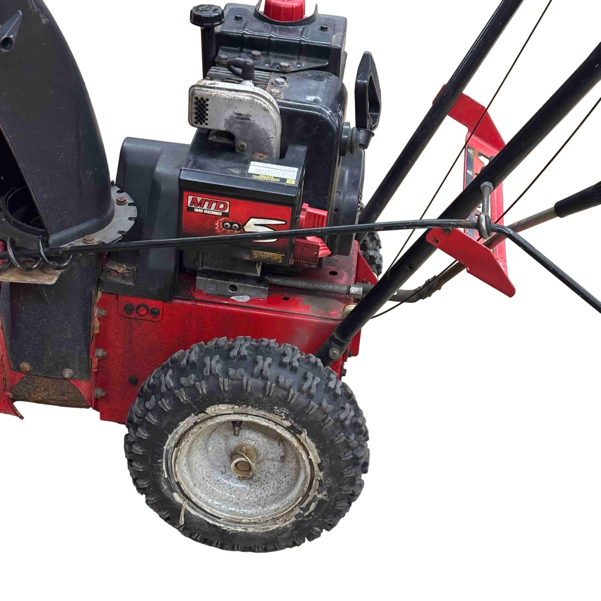 MTD Yard Machines 2-Stage Self-Propelled Snow Blower, 8HP 24" features a powerful 8-horsepower engine and a 24-inch clearing width designed to efficiently tackle heavy snow. This red and black snow blower includes self-propelled functionality for easy maneuverability and durable construction to handle tough winter conditions.