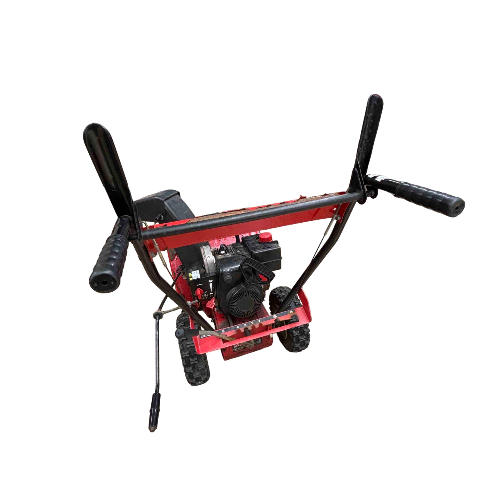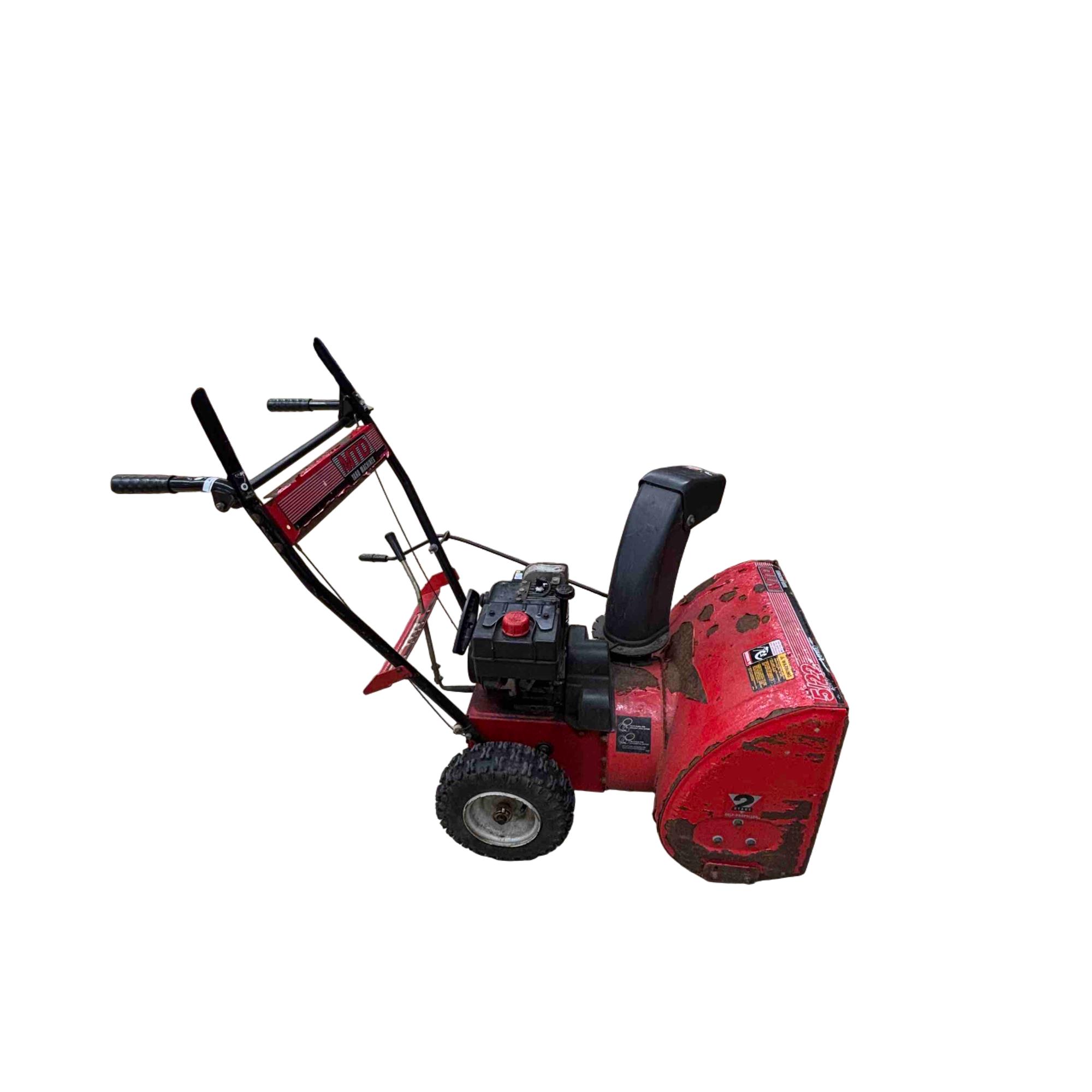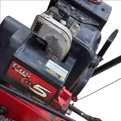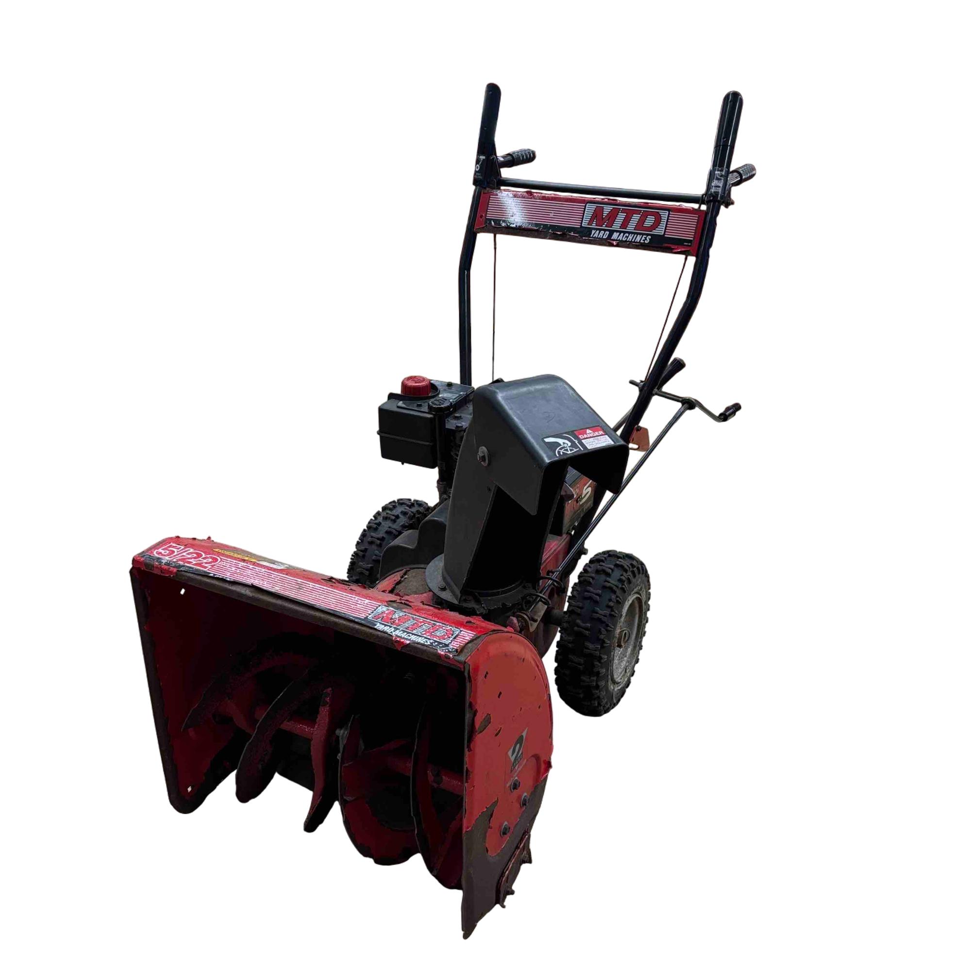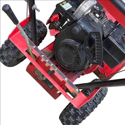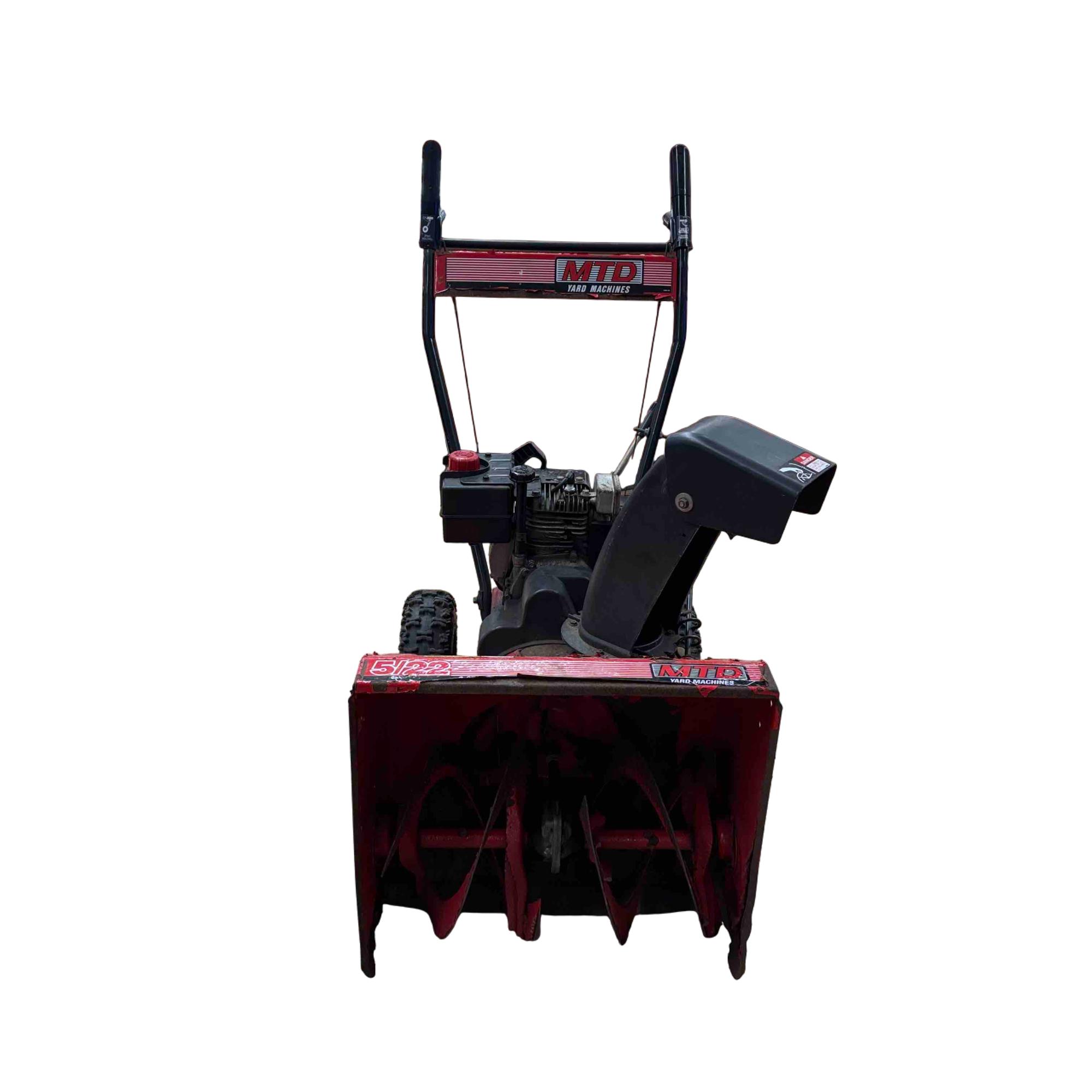 MTD Yard Machines 2-Stage Self-Propelled Snow Blower, 8HP 24" features a powerful 8-horsepower engine and a 24-inch clearing width designed to efficiently tackle heavy snow. This red and black snow blower includes self-propelled functionality for easy maneuverability and durable construction to handle tough winter conditions.