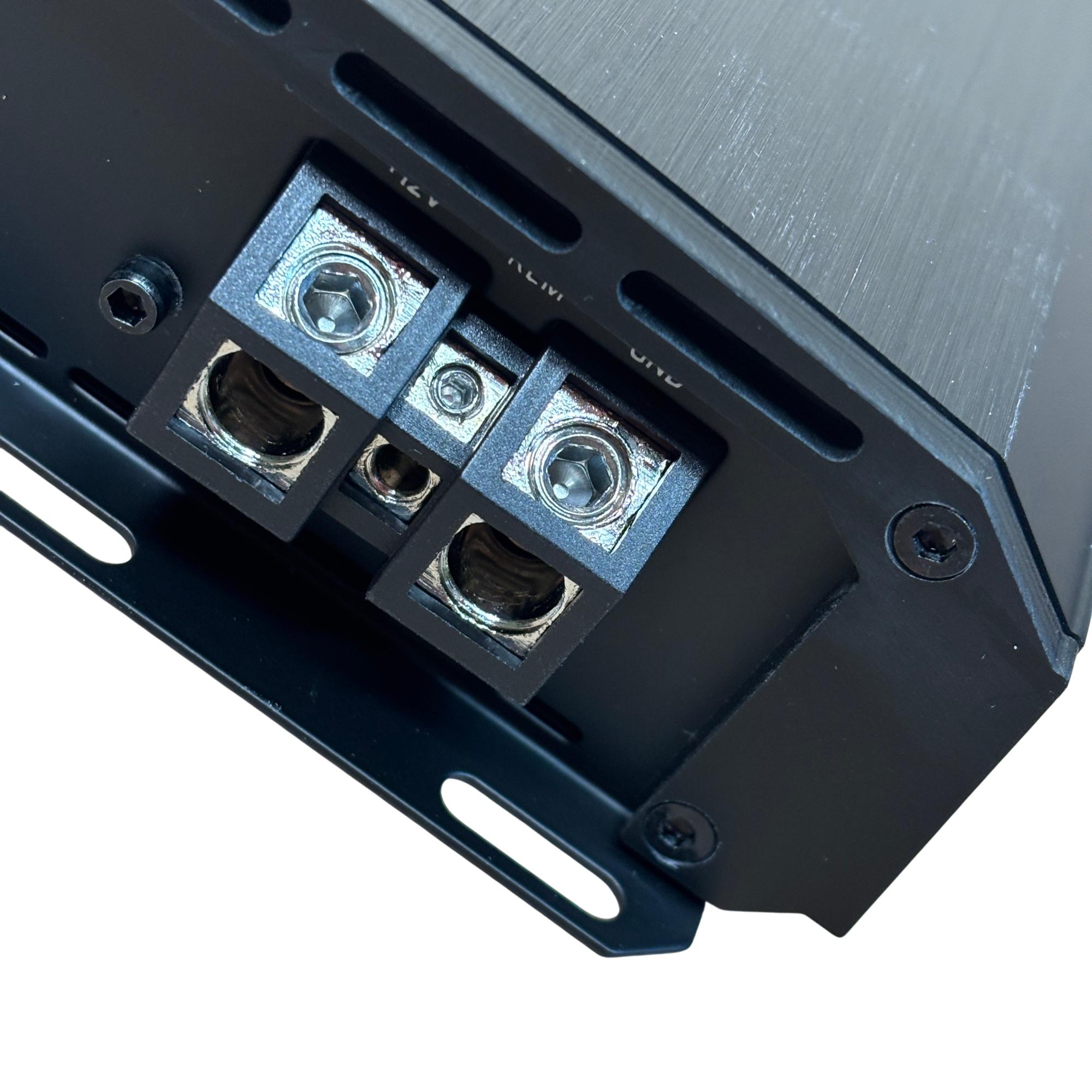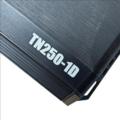 MTX Audio Terminator TN250-1D Monoblock Class-D Car Amplifier delivers powerful 250-watt RMS output with efficient Class-D amplification, ideal for driving subwoofers in car audio systems. This compact black rectangular amplifier features a durable metal casing and is designed for high-performance mono block operation, ensuring clear and dynamic bass reproduction.