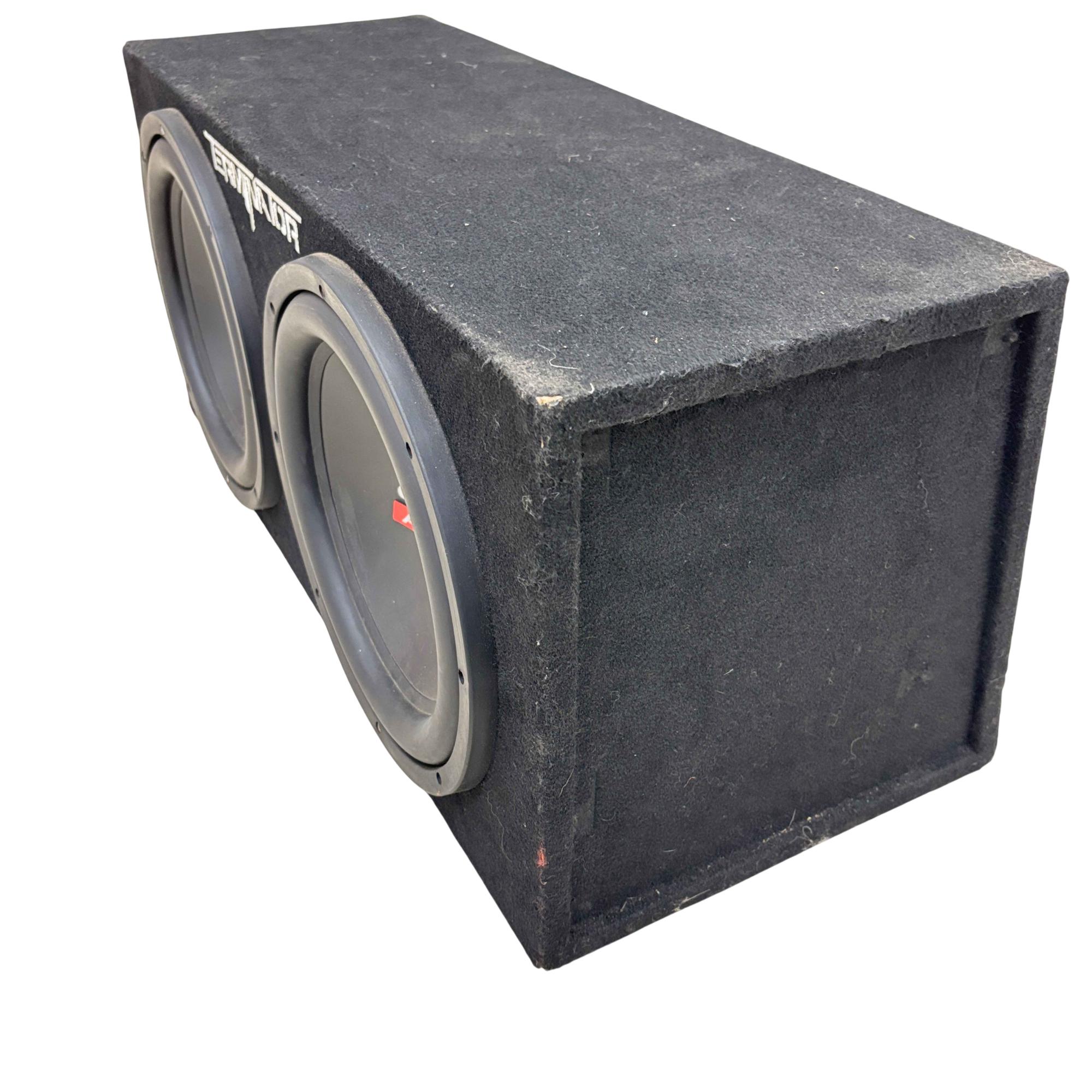 The MTX Audio Terminator TNE212D Dual 12-Inch 1200-Watt Subwoofer Kit delivers powerful bass performance with its dual 12-inch subwoofers, designed to enhance car audio systems. Featuring a robust 1200-watt peak power handling and durable construction, this subwoofer kit provides deep, rich low-frequency sound for an immersive listening experience. Its sleek black rectangular enclosures with clear white branding combine both style and high-quality audio output for enthusiasts seeking superior sound reinforcement.