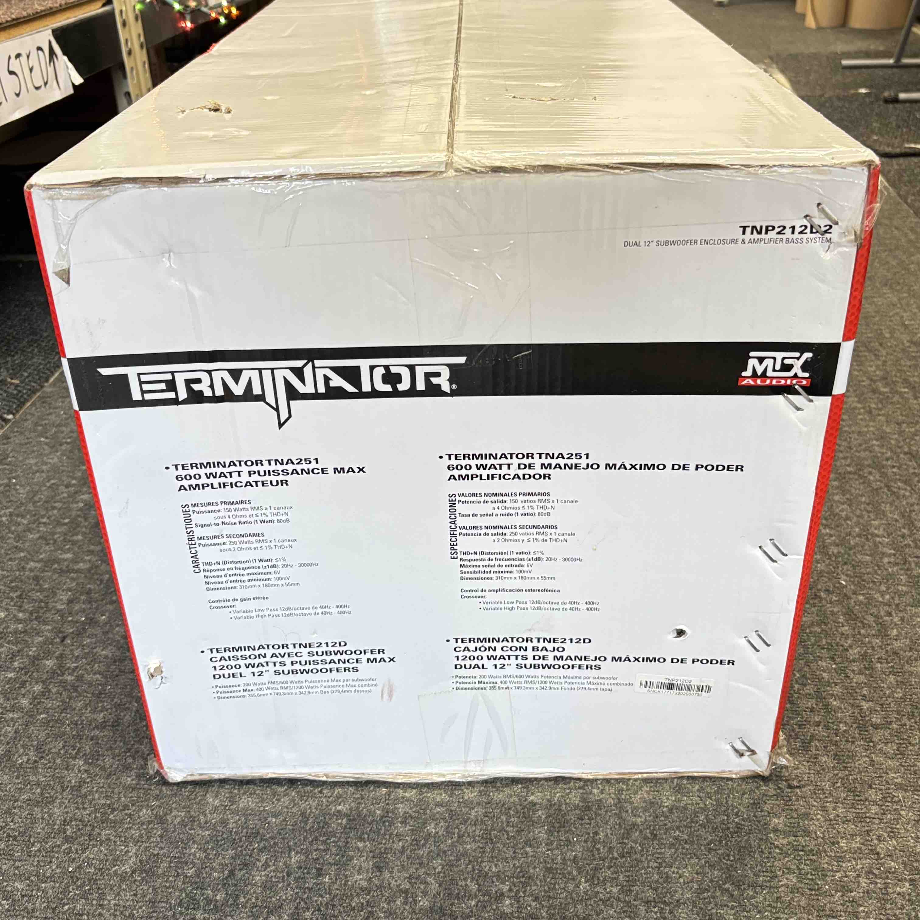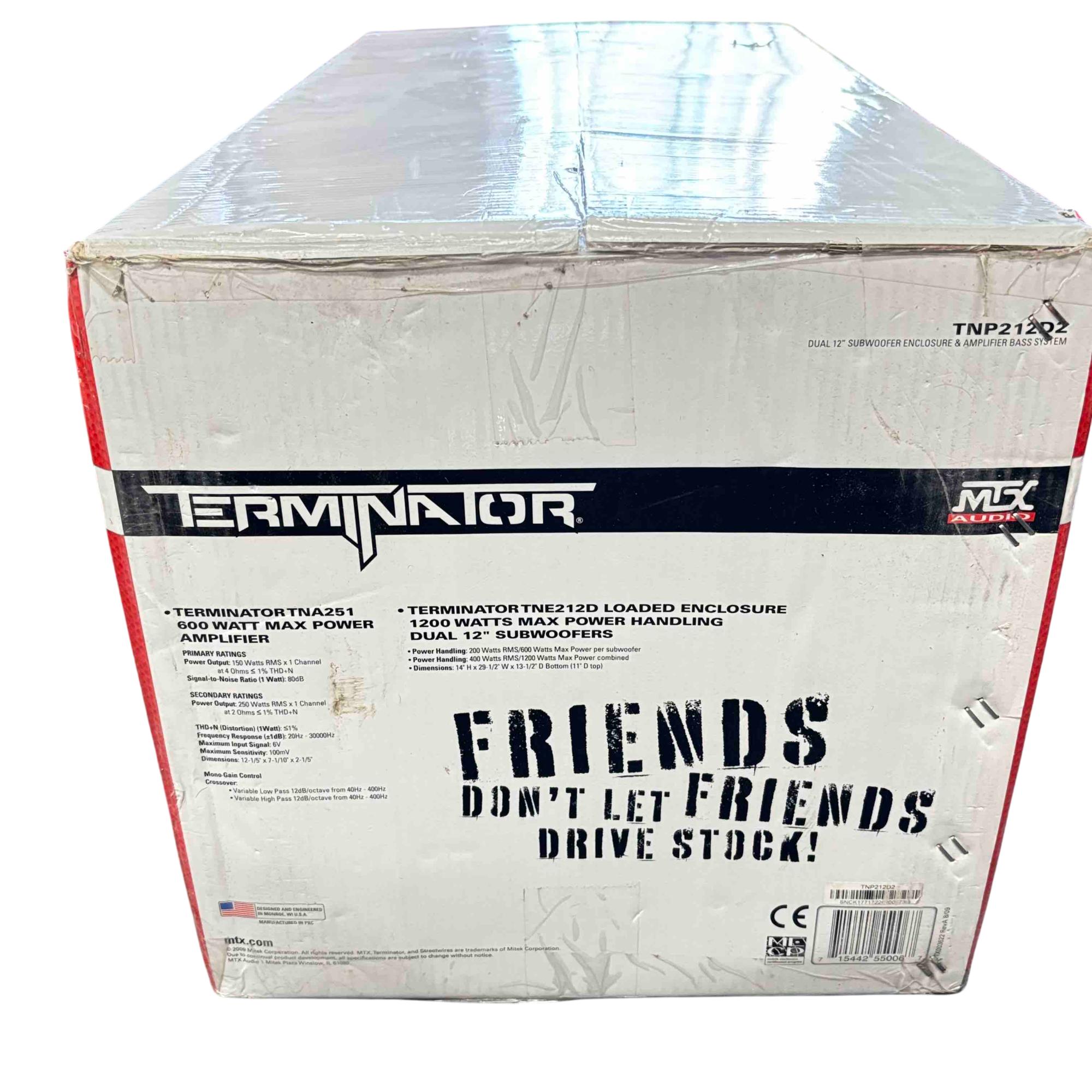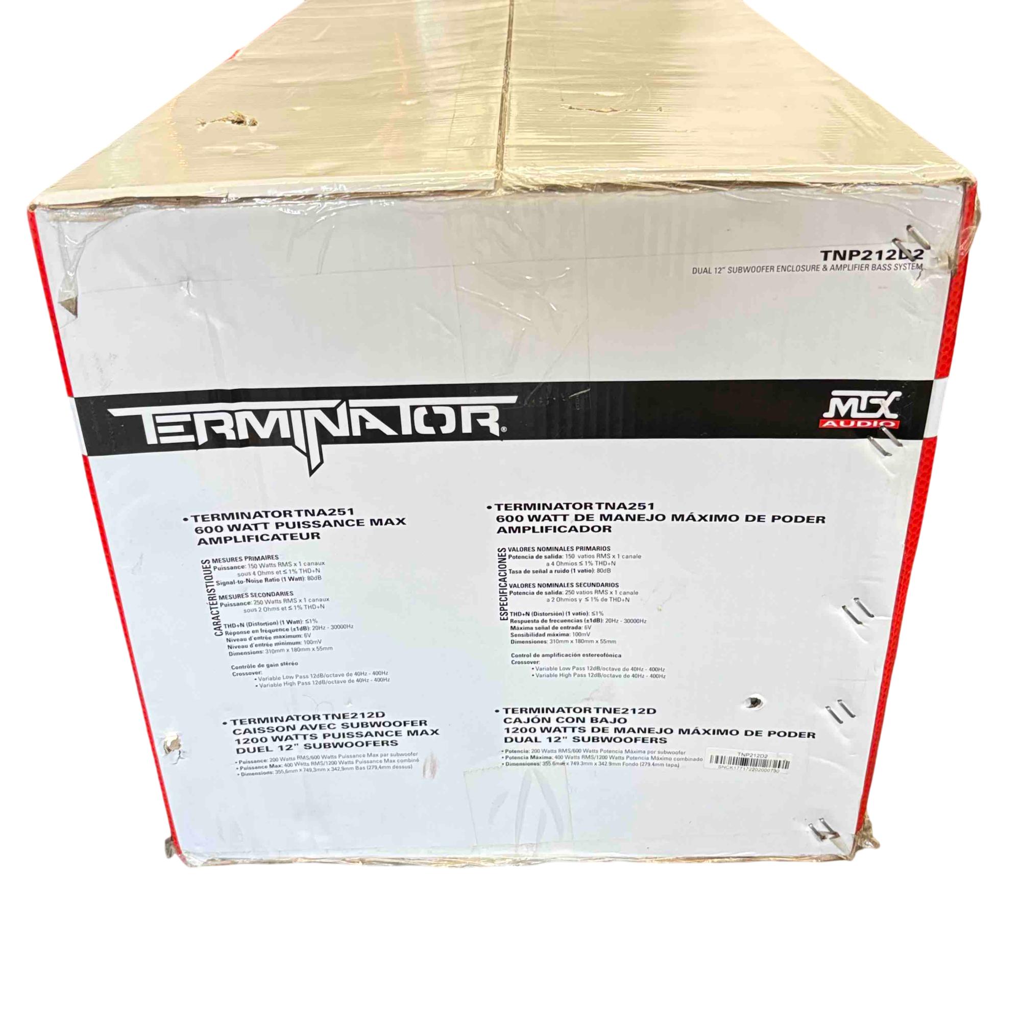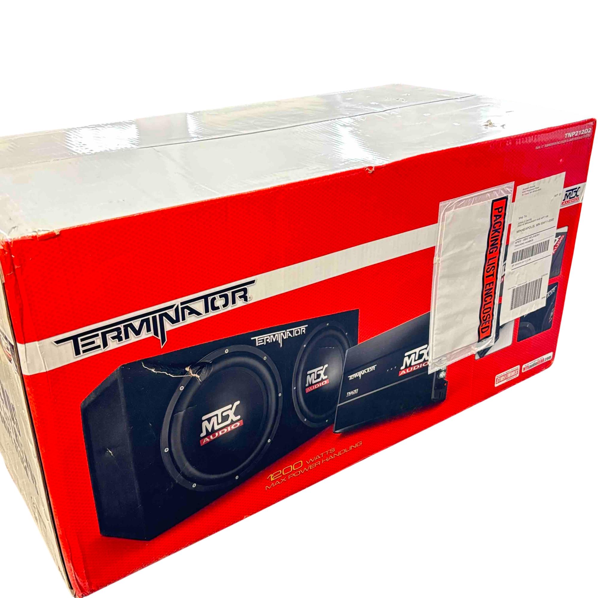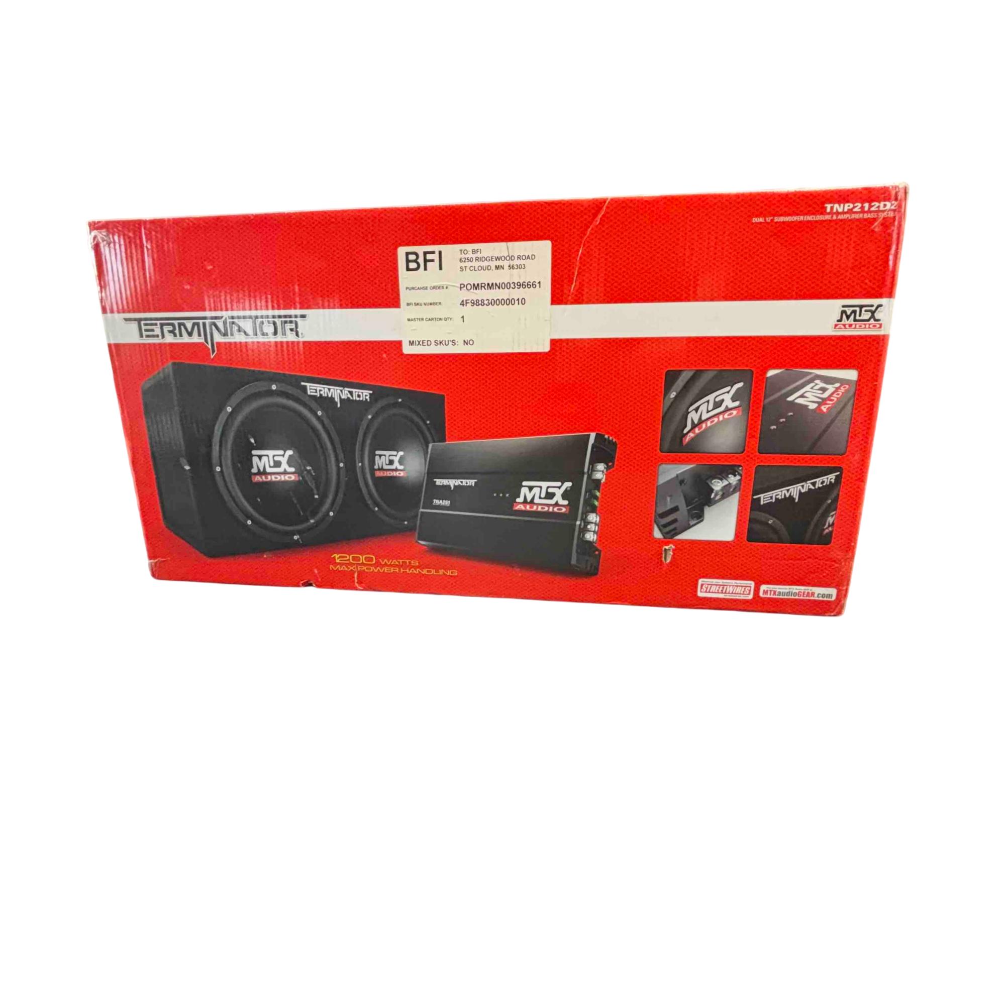 Unleash the power of your music with the MTX TNP212D2 Terminator Audio system. This impressive setup includes dual 12-inch subwoofers and a 1200-watt amplifier, designed to deliver deep, earth-shaking bass and pristine audio quality. Ideal for music enthusiasts seeking an unparalleled sound experience, this system is the ultimate addition to any audio setup.