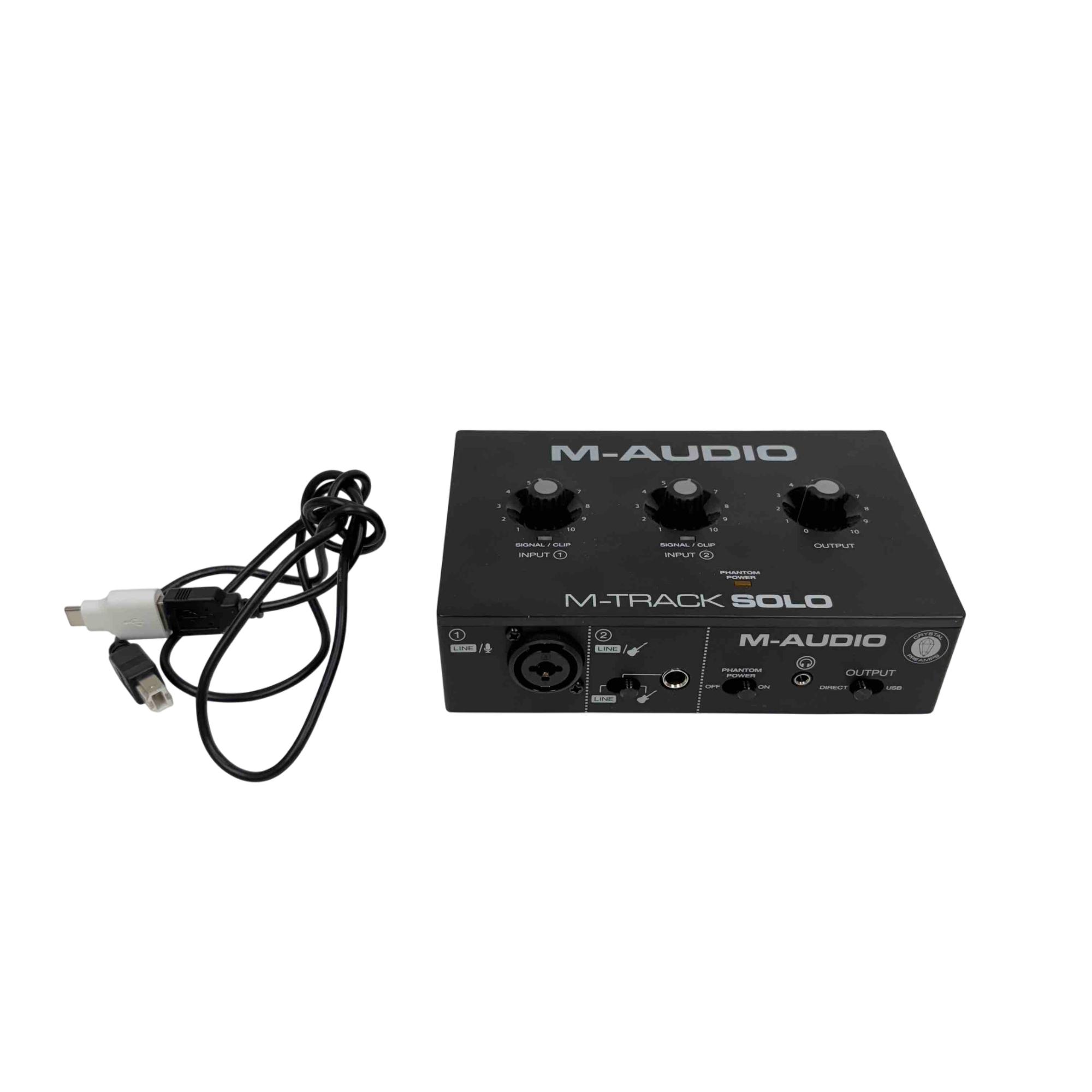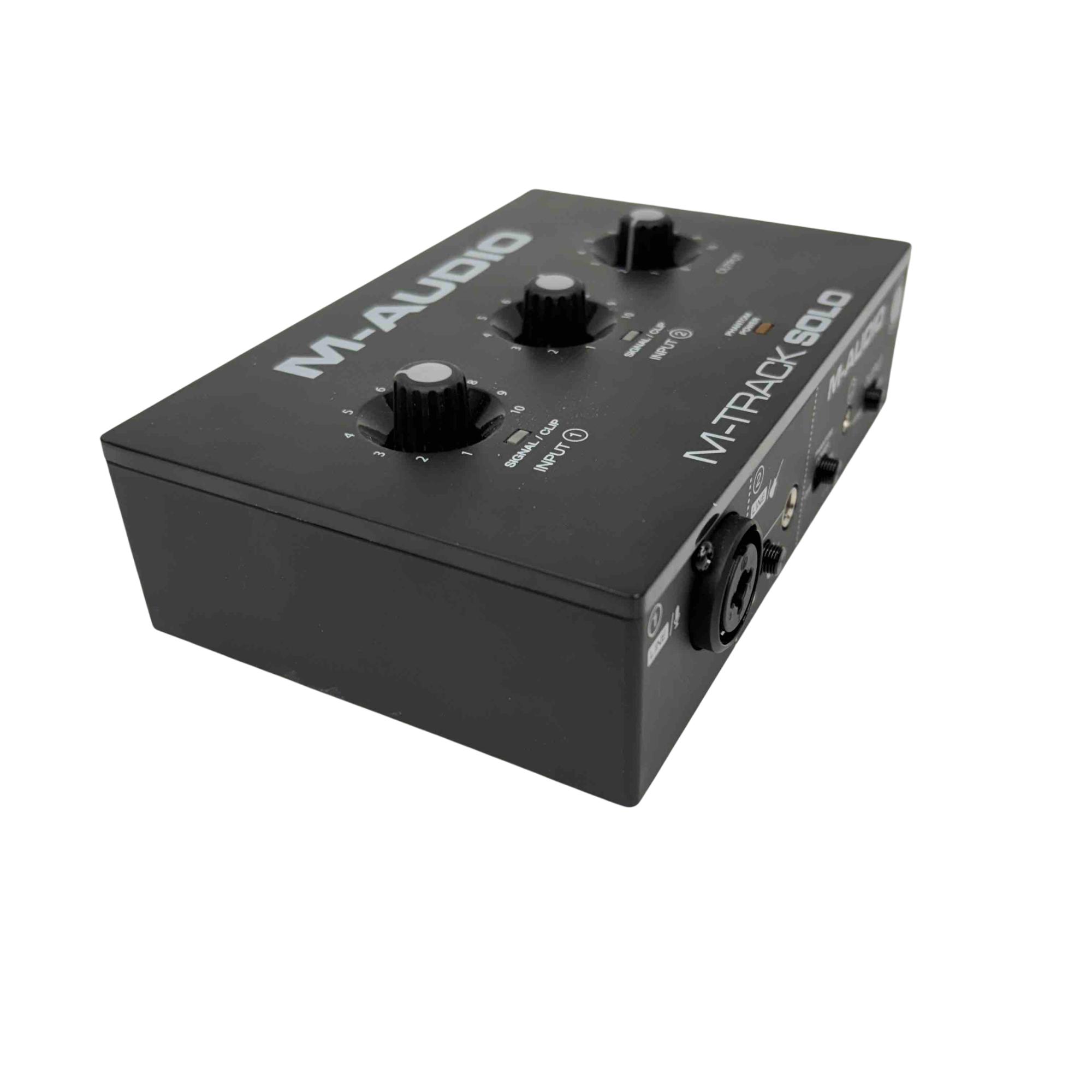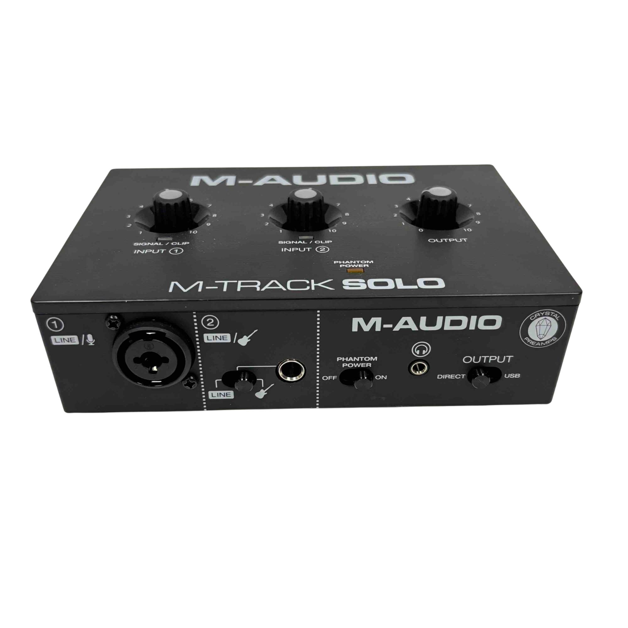 Enhance your music production setup with the M-AUDIO M-Track Solo USB Audio Interface. This sleek, compact device is perfect for solo musicians and podcasters, offering versatile connectivity with crystal-clear preamps to capture every detail of your recordings. With its intuitive controls and durable design, its an essential tool for producing professional-quality audio.