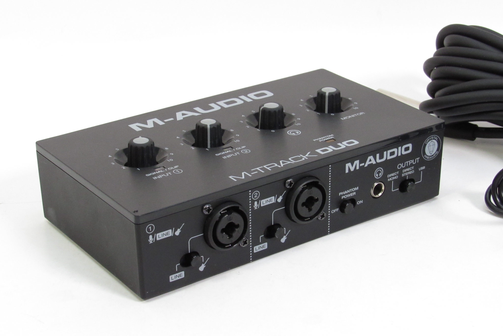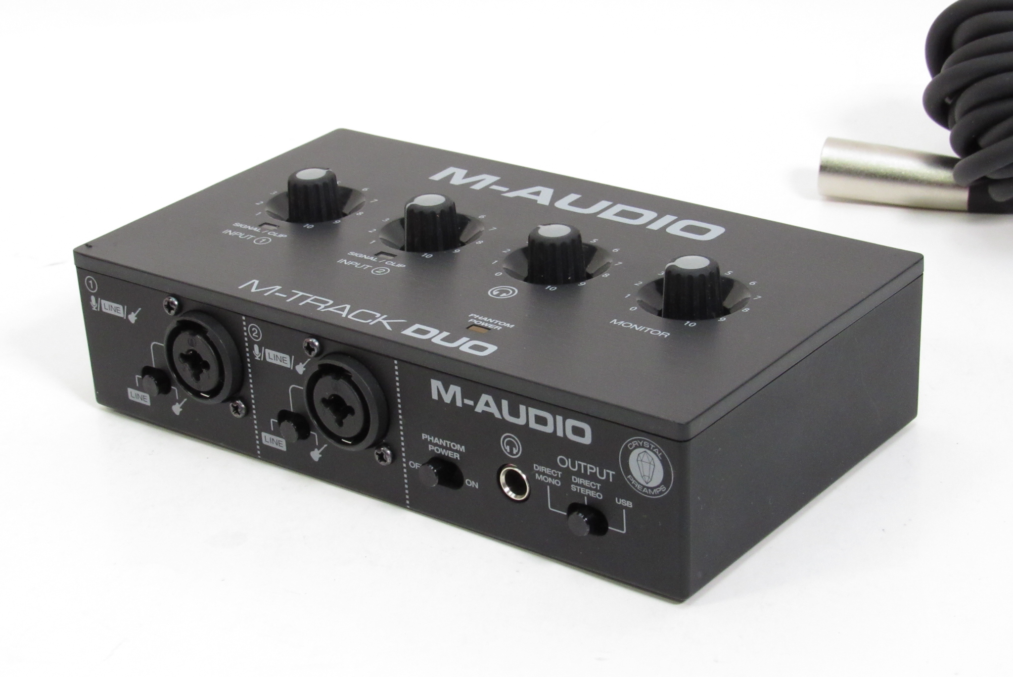 The M-Track Duo is the best, most portable recording interface in its class. It delivers 48 kHz audio resolution in a compact and easy to use format that is ideal for creating music on any Mac, PC or iOS device. This versatile interface works great for recording any type of sound source and features two Combo Crystal Preamps with phantom power, making it compatible with any microphone. Plus, there is a dedicated switch to choose either a line level or instrument level input, perfect for connecting digital pianos, drum machines or any other stereo ¼” inch line level device, as well as the best possible signal for DI guitar or bass. M-track Duo is completely powered by USB, which makes it portable and perfect for anyone on-the-go. Throw it into your bag, grab a laptop, and create your next podcast, song, or mix, anywhere you want!