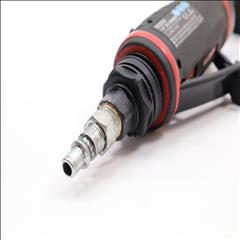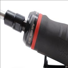 Features a 0.3 HP motor and a comfortable rubber grip that insulates the user's hand from the cold generated during use. It is equipped with a precision collet for accurate material removal and a new throttle design with a lockout for precise control. The 360° rotating exhaust allows users to direct the air flow away from their body, and tool-free power adjustment enhances convenience. This die grinder has a free speed of 30,000 RPM, measures 6-5/16 inches in overall length, and is designed in a straight style.