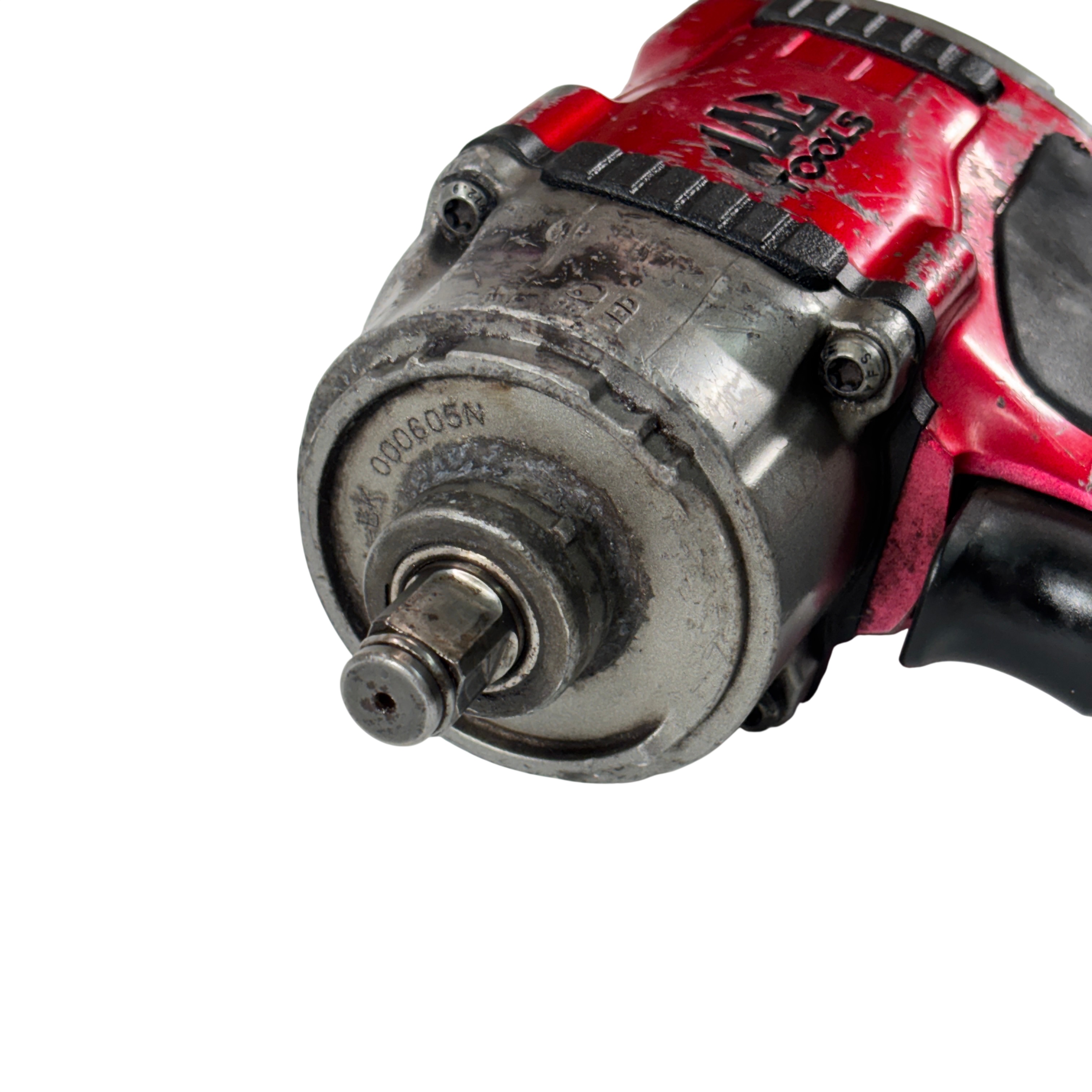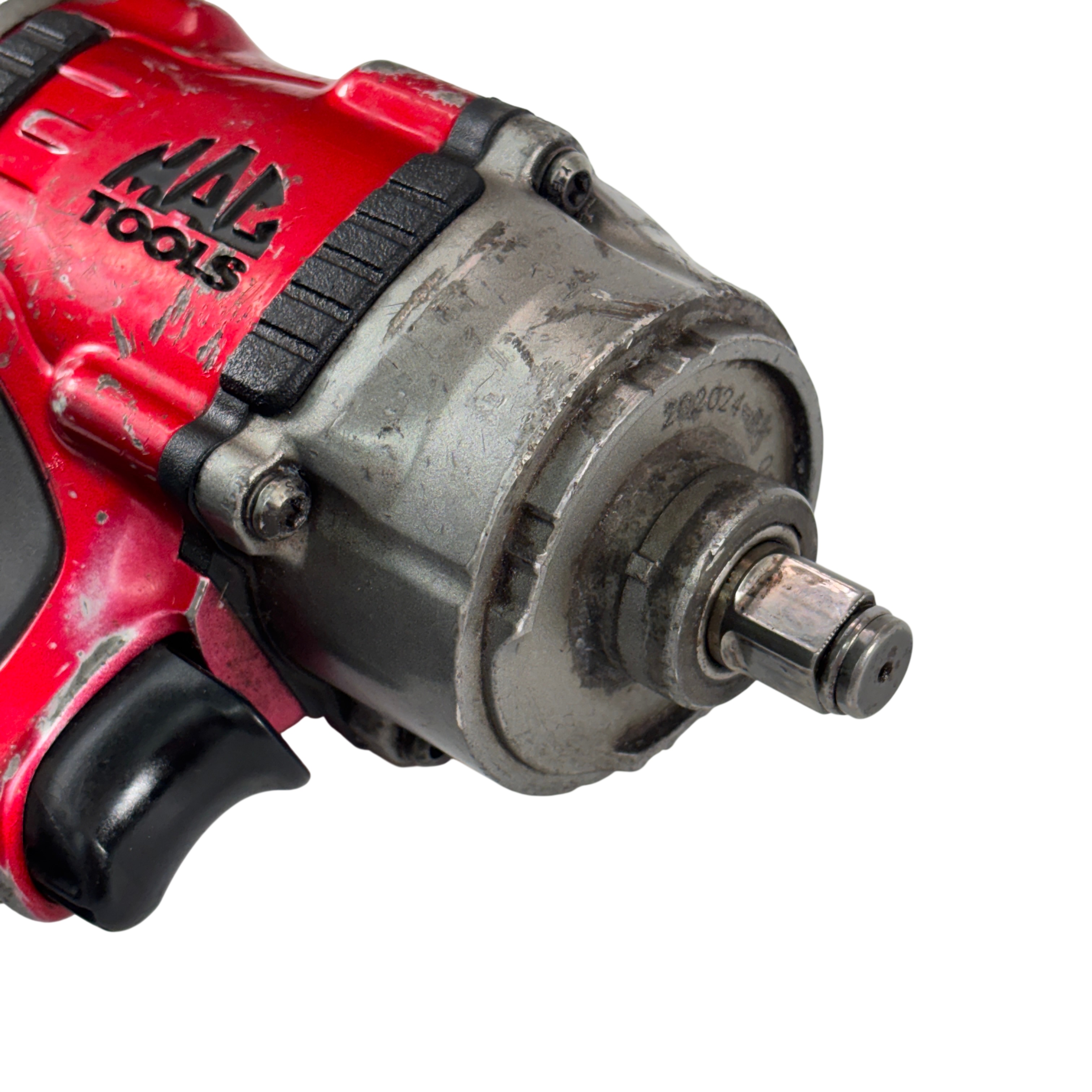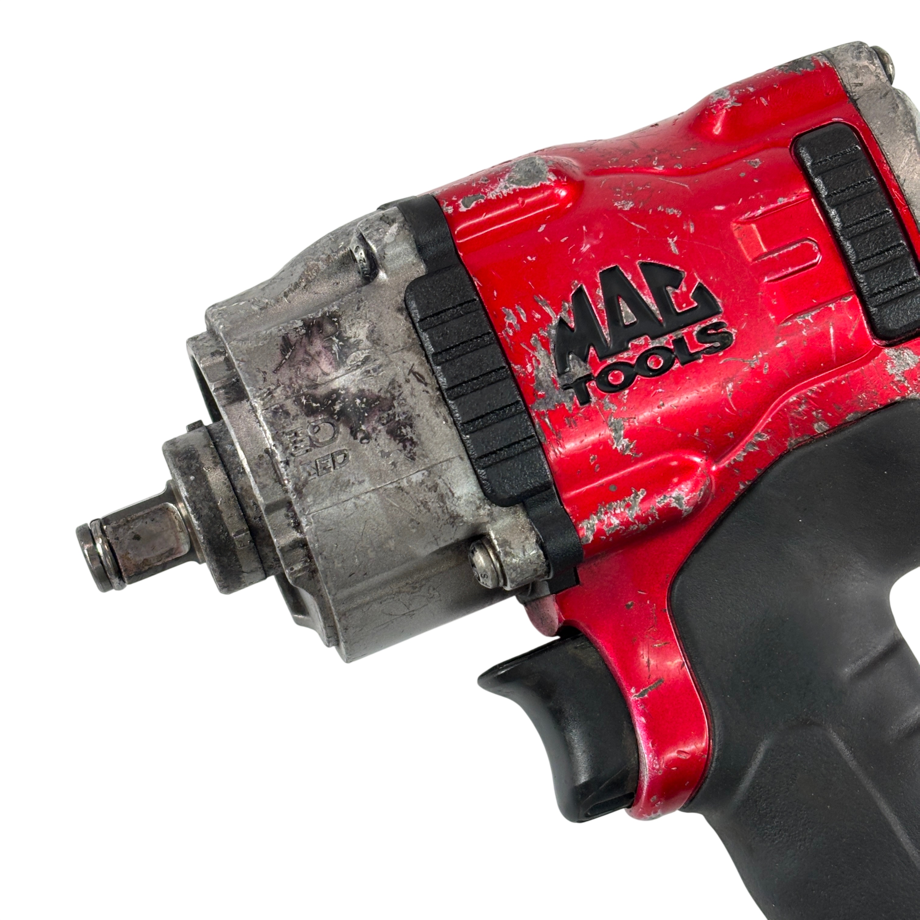 The Mac Tools MPF990501 Pneumatic Compact 1/2" Drive Heavy-Duty Air Impact Wrench is durable and lightweight with a forged anvil for long life. It includes a removable LED light and a variable-speed trigger for precise control. The magnesium housing reduces weight to 4.8 lbs., and the forward handle provides comfort and balance.