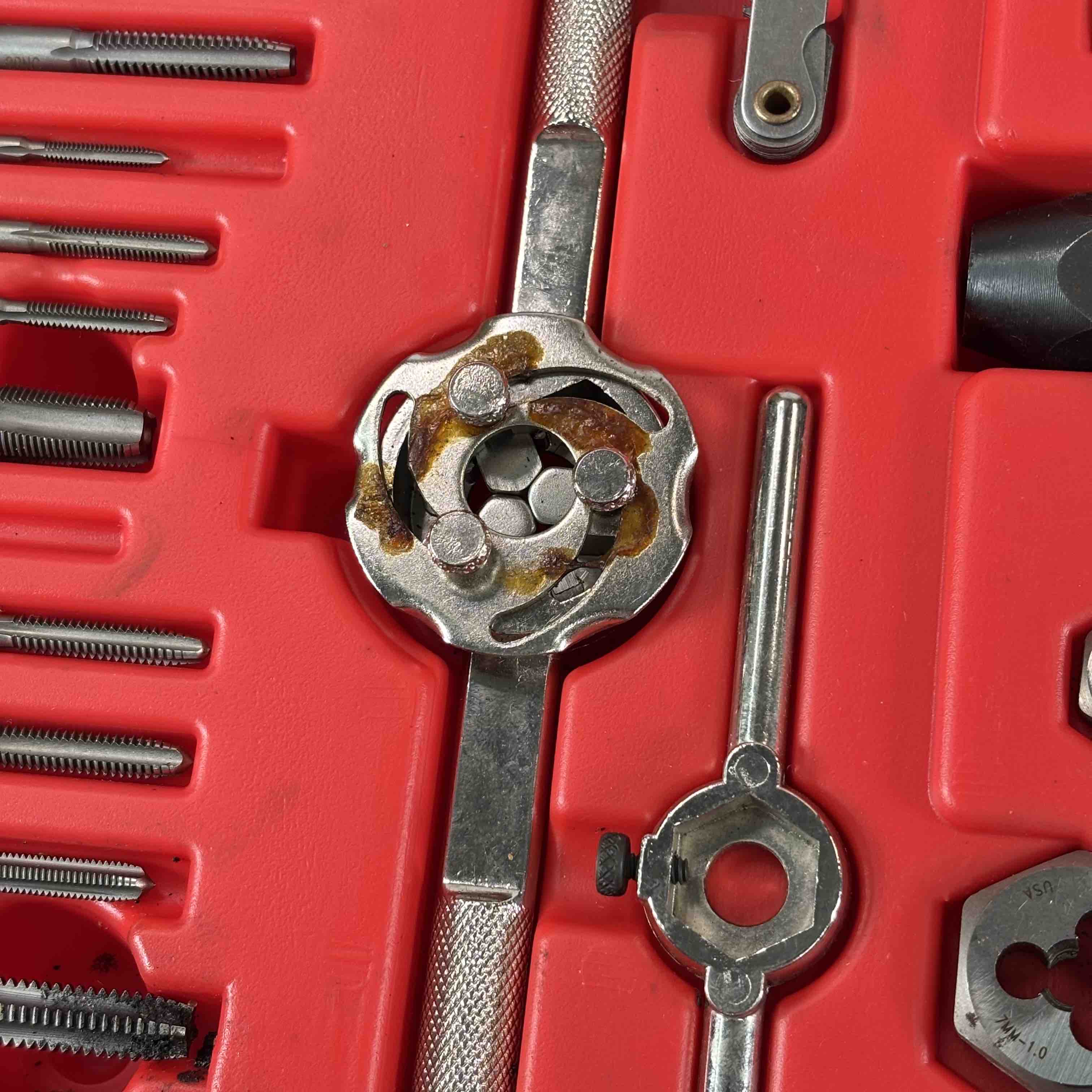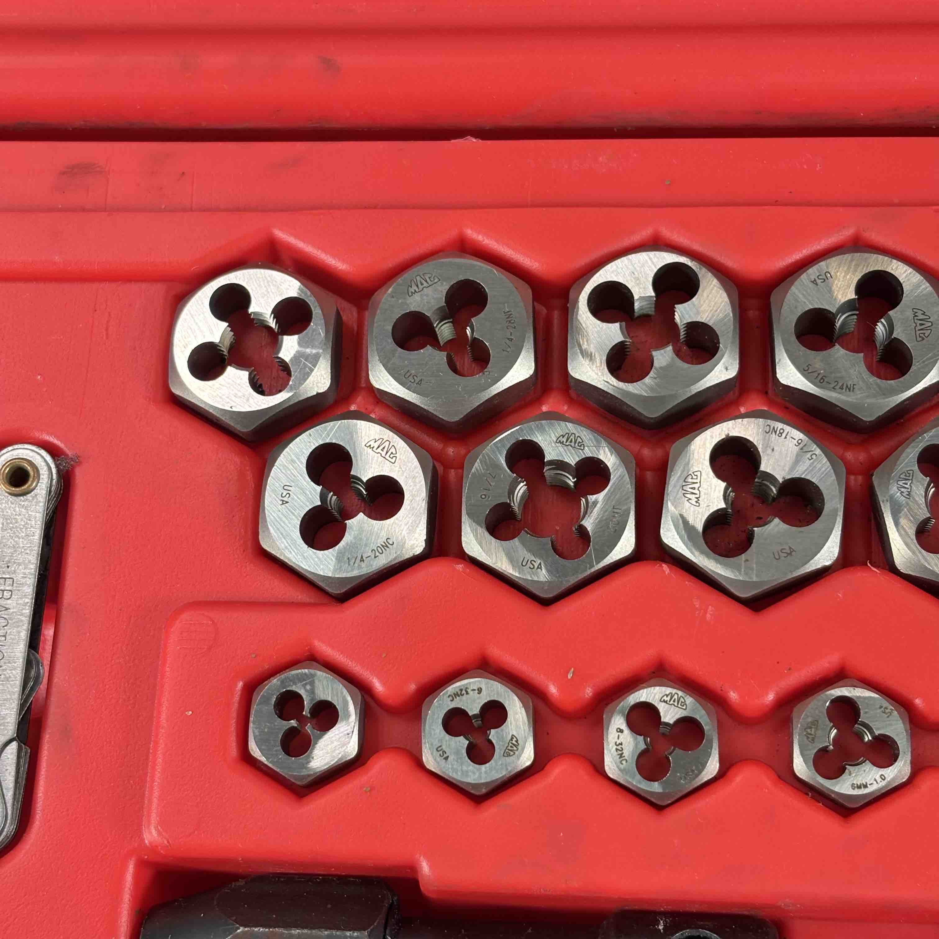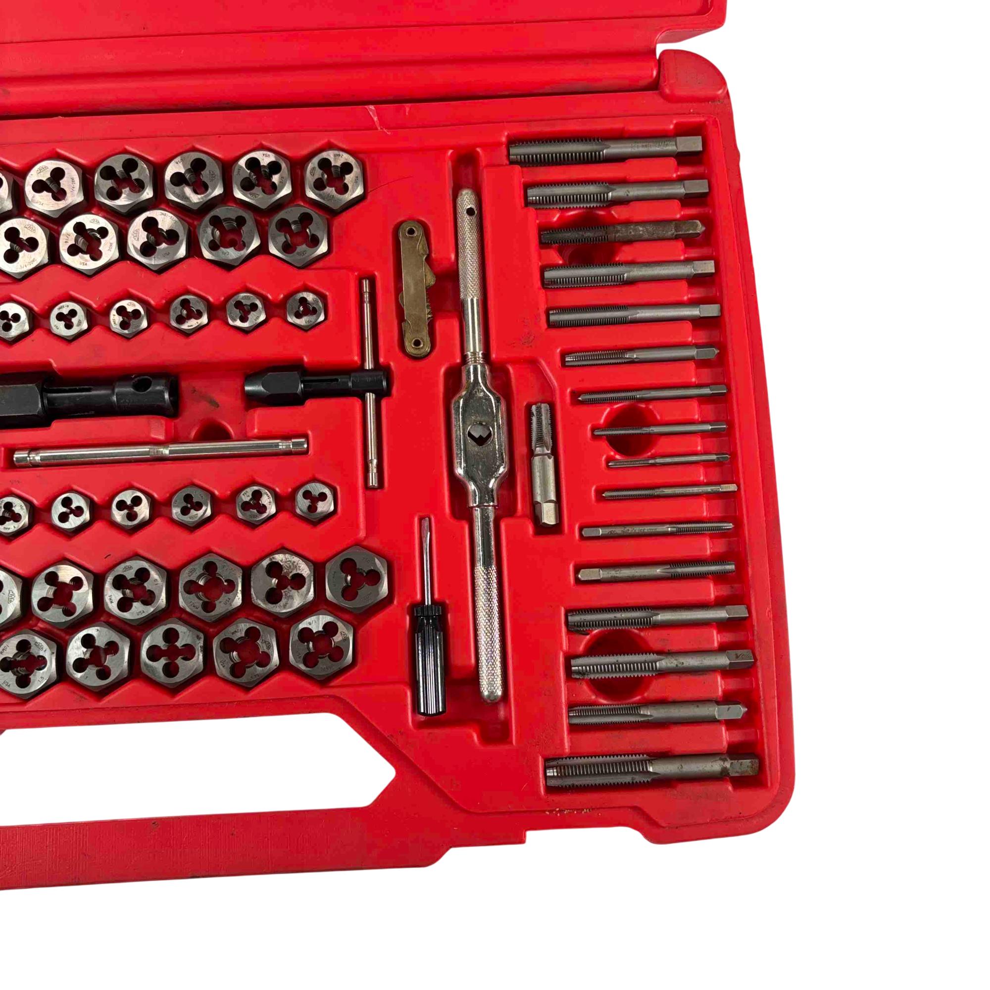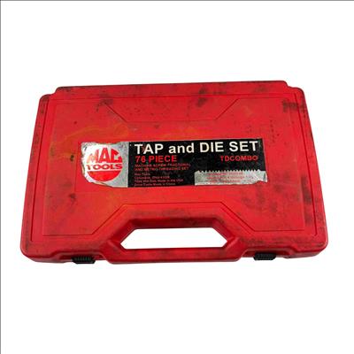 The Mac TDCOMBO set includes 76 professional-grade SAE and metric taps and dies for cutting and repairing threads with precision and durability. Ideal for automotive and mechanical applications.