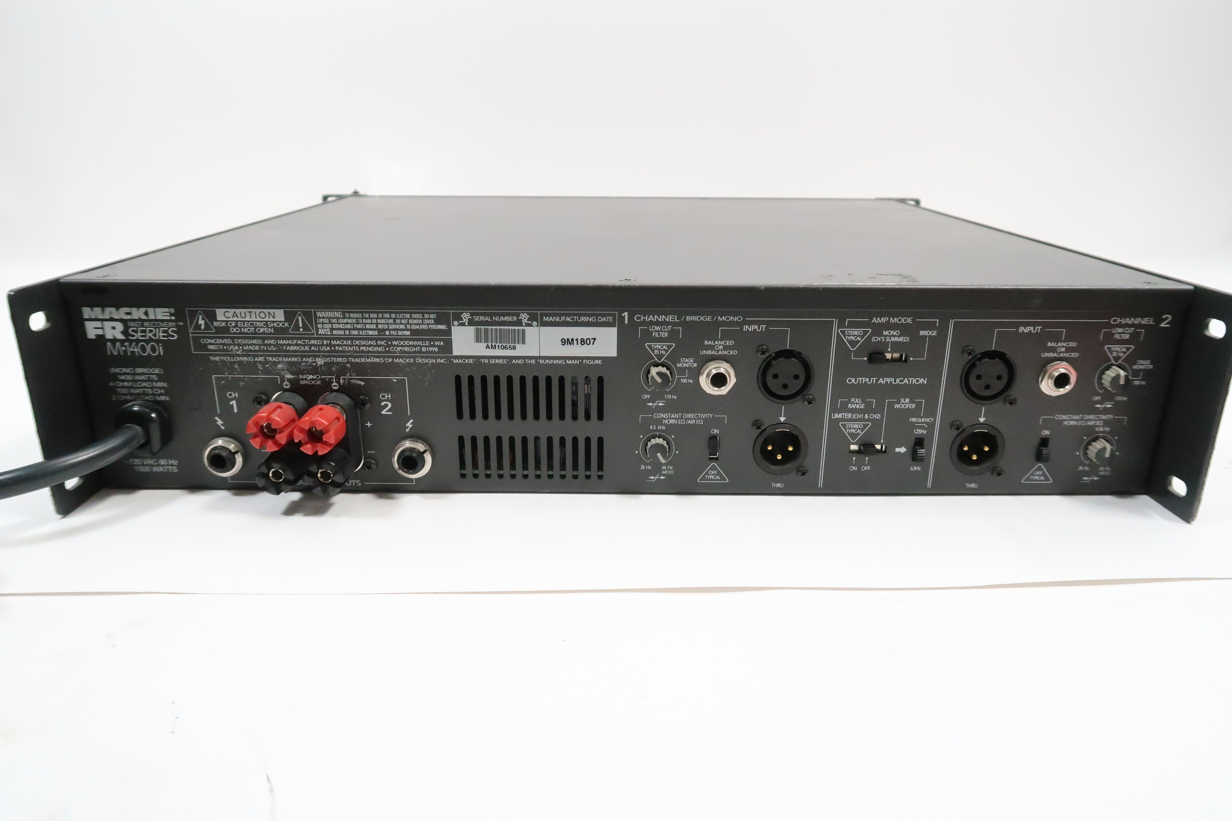 This Mackie Powered Amplifier is previously owned and in good condition. Moderate wear from use, scratches and scuffs on the casing. This item has been tested and works well.