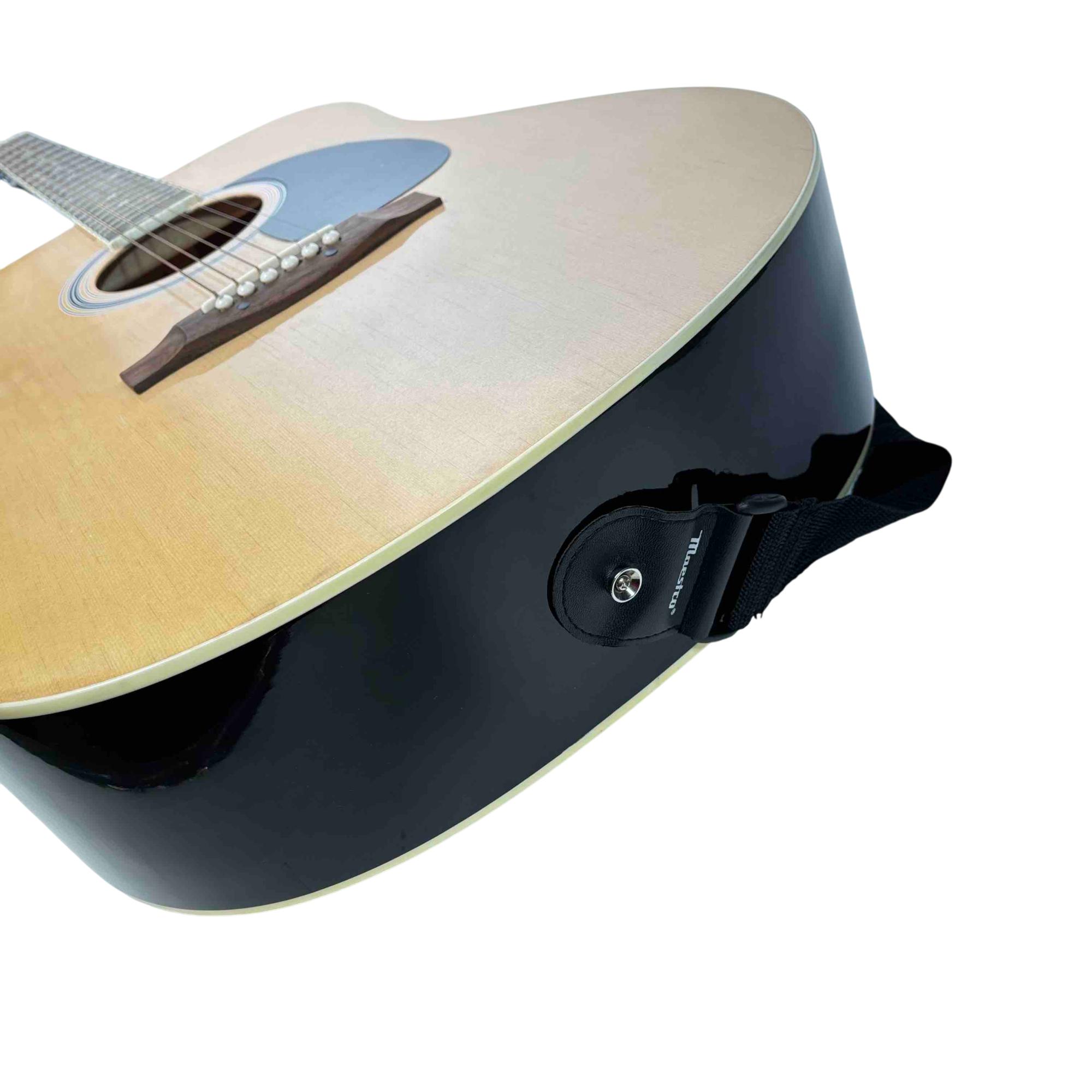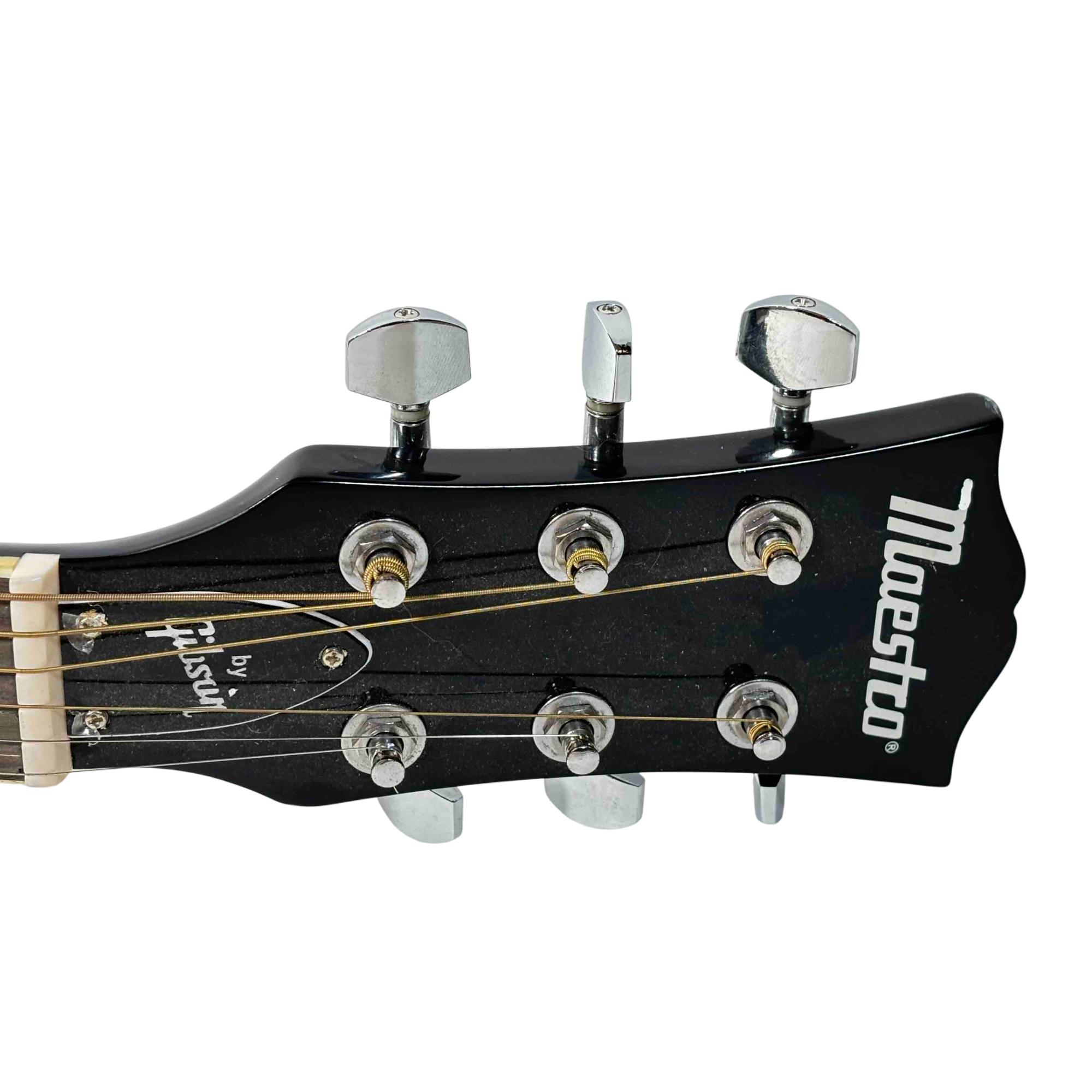 Elevate your musical experience with the Gibson Maestro MA41NACH6 Acoustic Guitar, perfectly crafted for vibrant and rich sound. Accompanied by a durable case, this guitar is not only a visual delight with its black and tan finish but also a reliable companion for every musician. Designed and handcrafted in China, it promises a superior playing experience for both beginners and seasoned musicians.