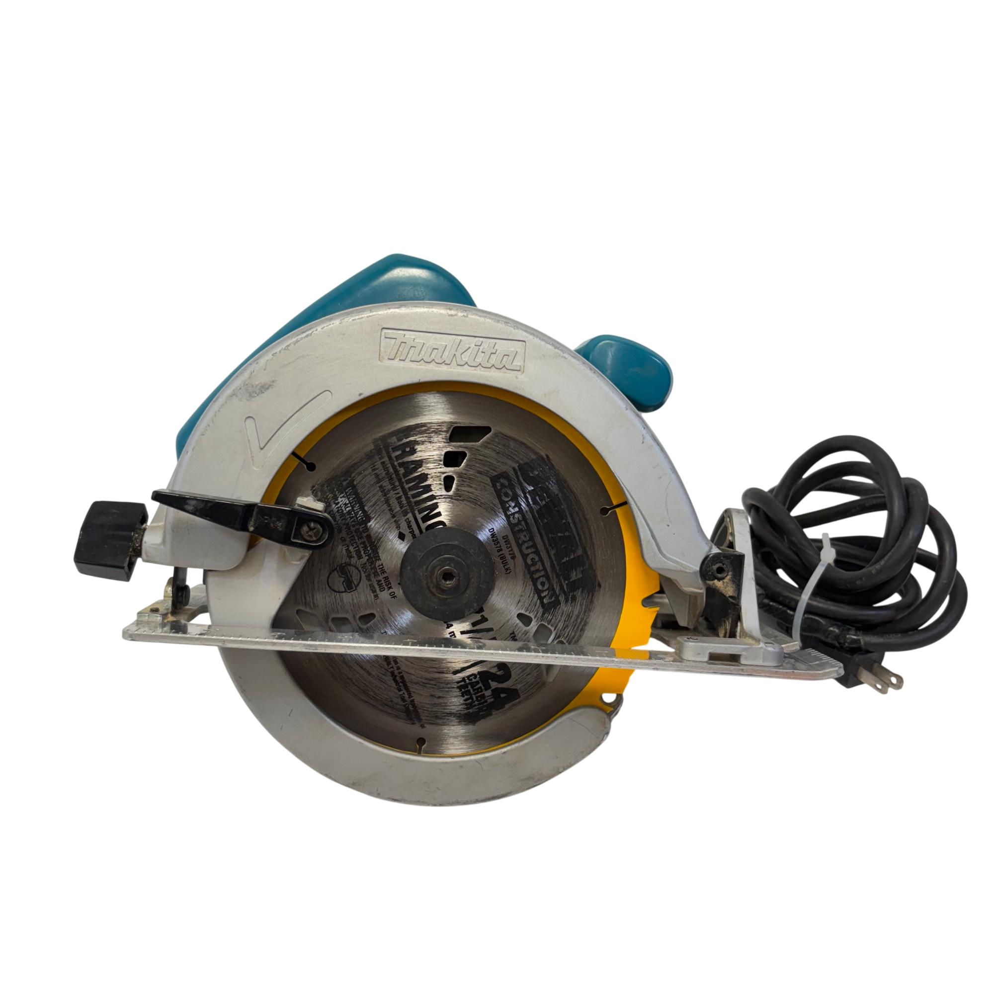 The Makita 7-1/4" 10.5 Amp Corded Circular Saw delivers powerful performance for heavy-duty cutting tasks. This professional-grade tool features a robust motor and ergonomic design with a dust port for cleaner operation, making it ideal for woodcutting and construction applications. Its durable construction and precise blade speed provide reliable and efficient results on every cut.