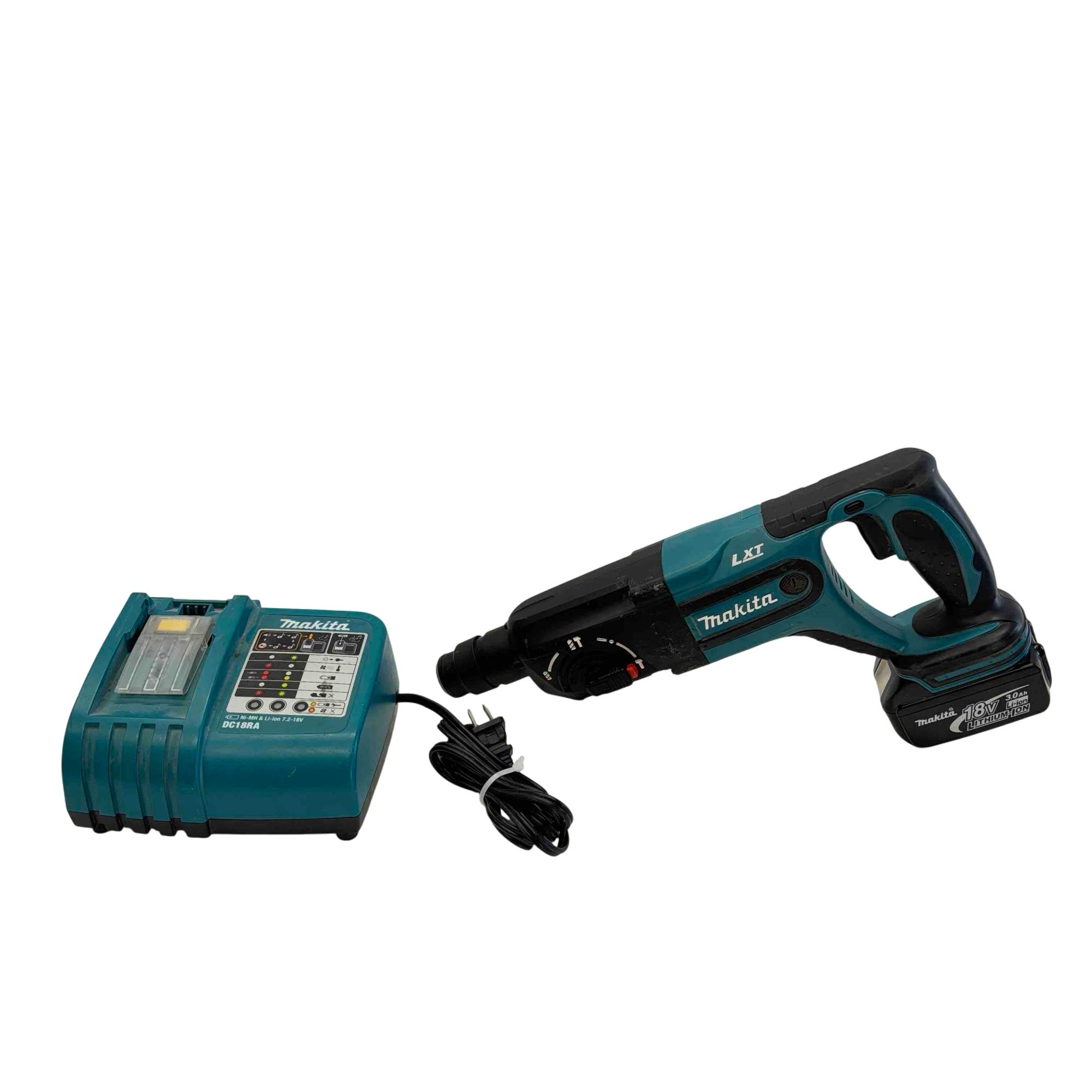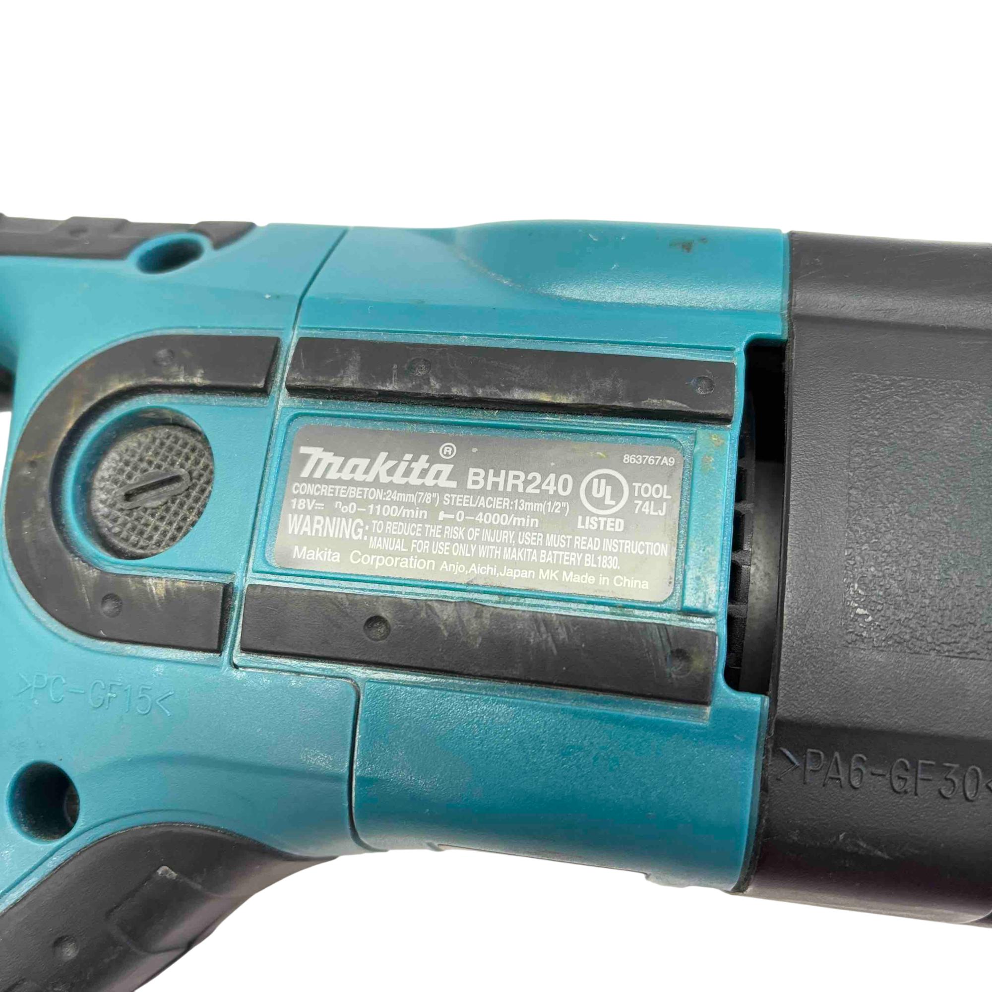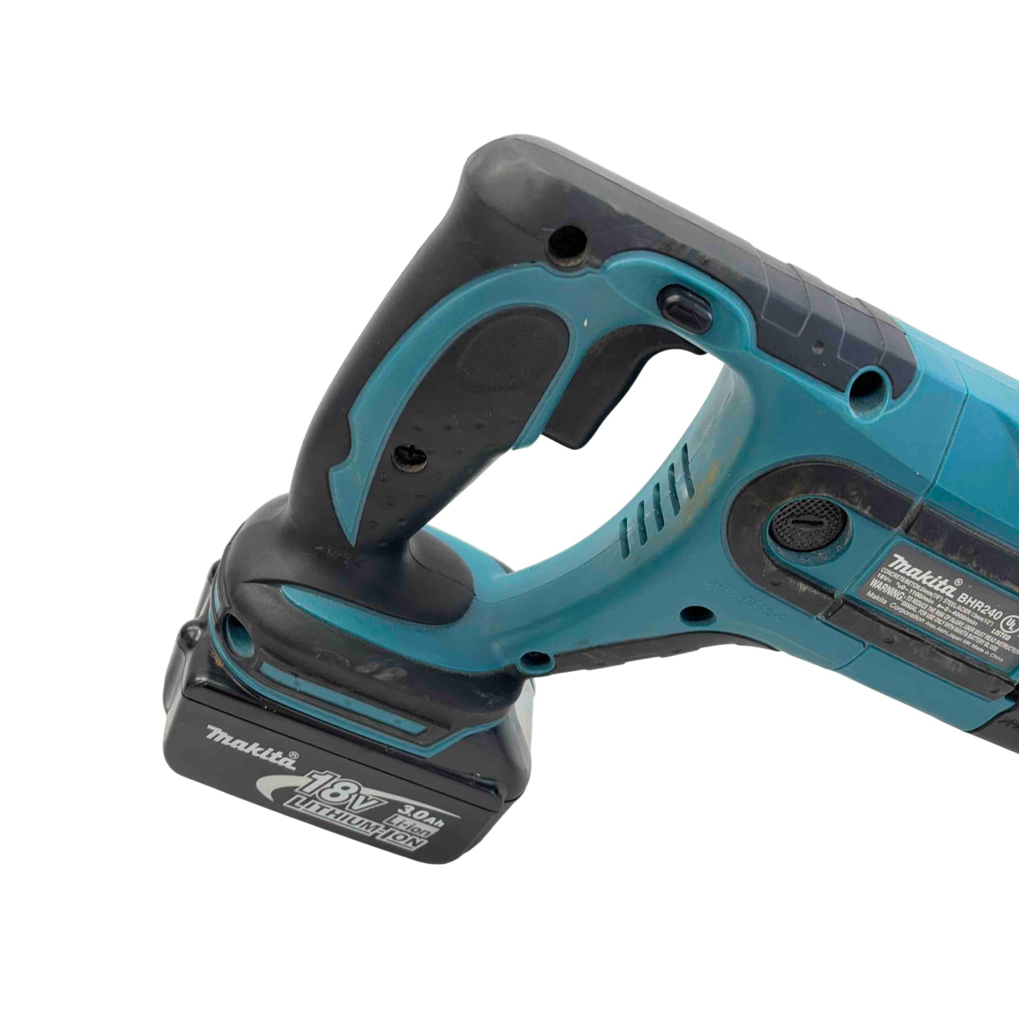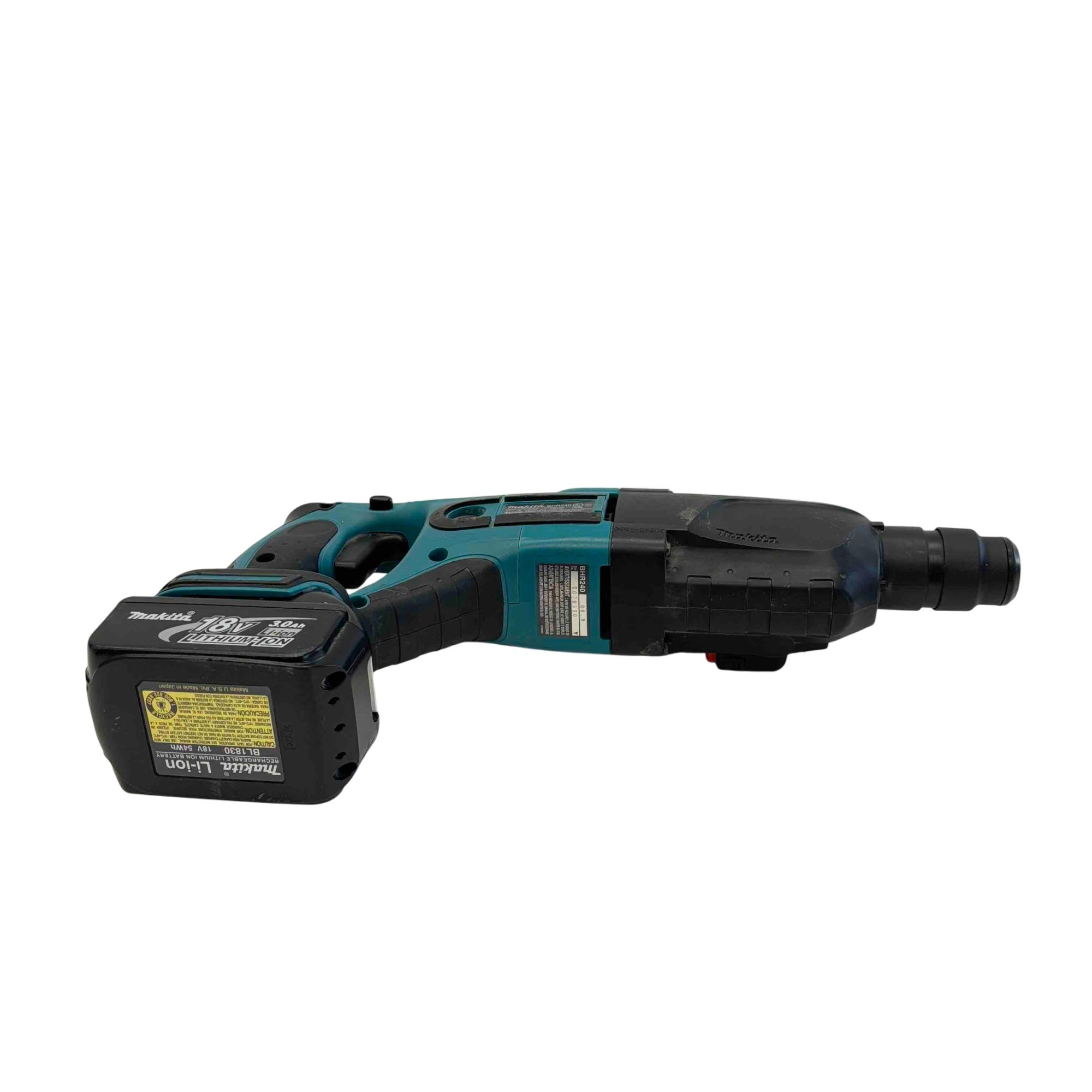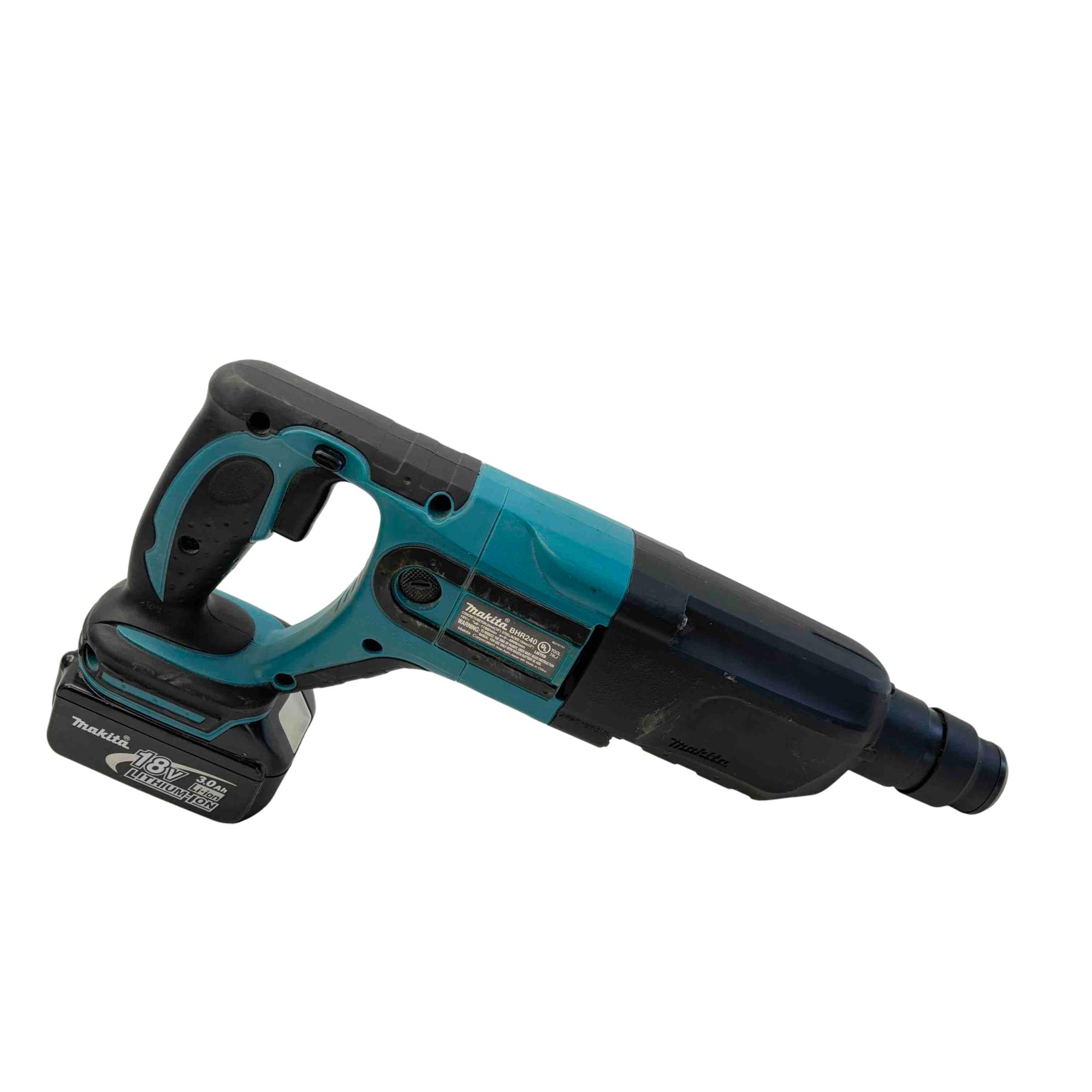 Introducing the Makita BHR240 18V LXT Lithium-Ion Cordless Rotary Hammer Drill, a reliable choice for professionals and DIY enthusiasts alike. This powerful and efficient tool offers superb handling with its lightweight design, making it perfect for drilling through concrete and steel. Equipped with a durable lithium-ion battery and fast charger, its ready to tackle the toughest jobs with ease.