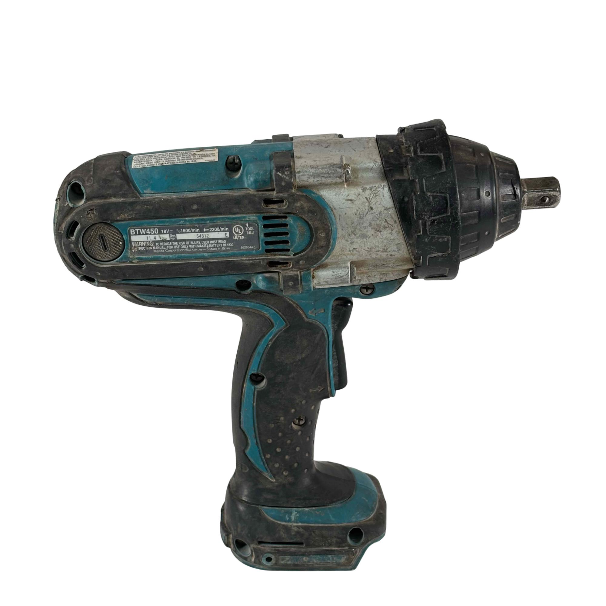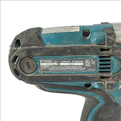 Makita BTW450 18V LXT cordless impact wrench features a 1/2-inch high-torque drive for powerful fastening and efficient performance in a compact, lithium-ion powered design.