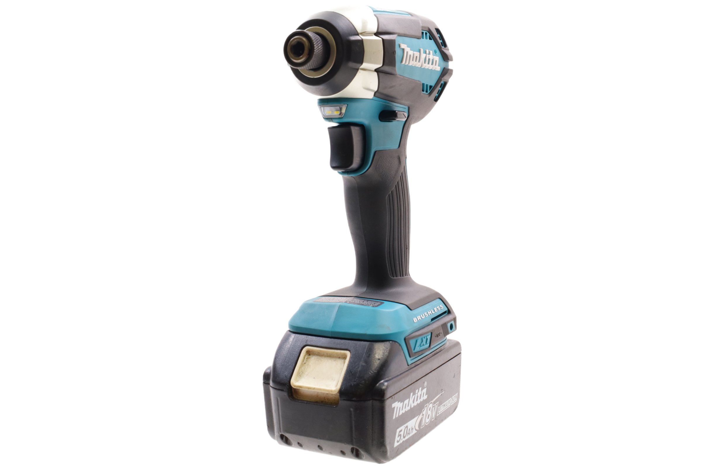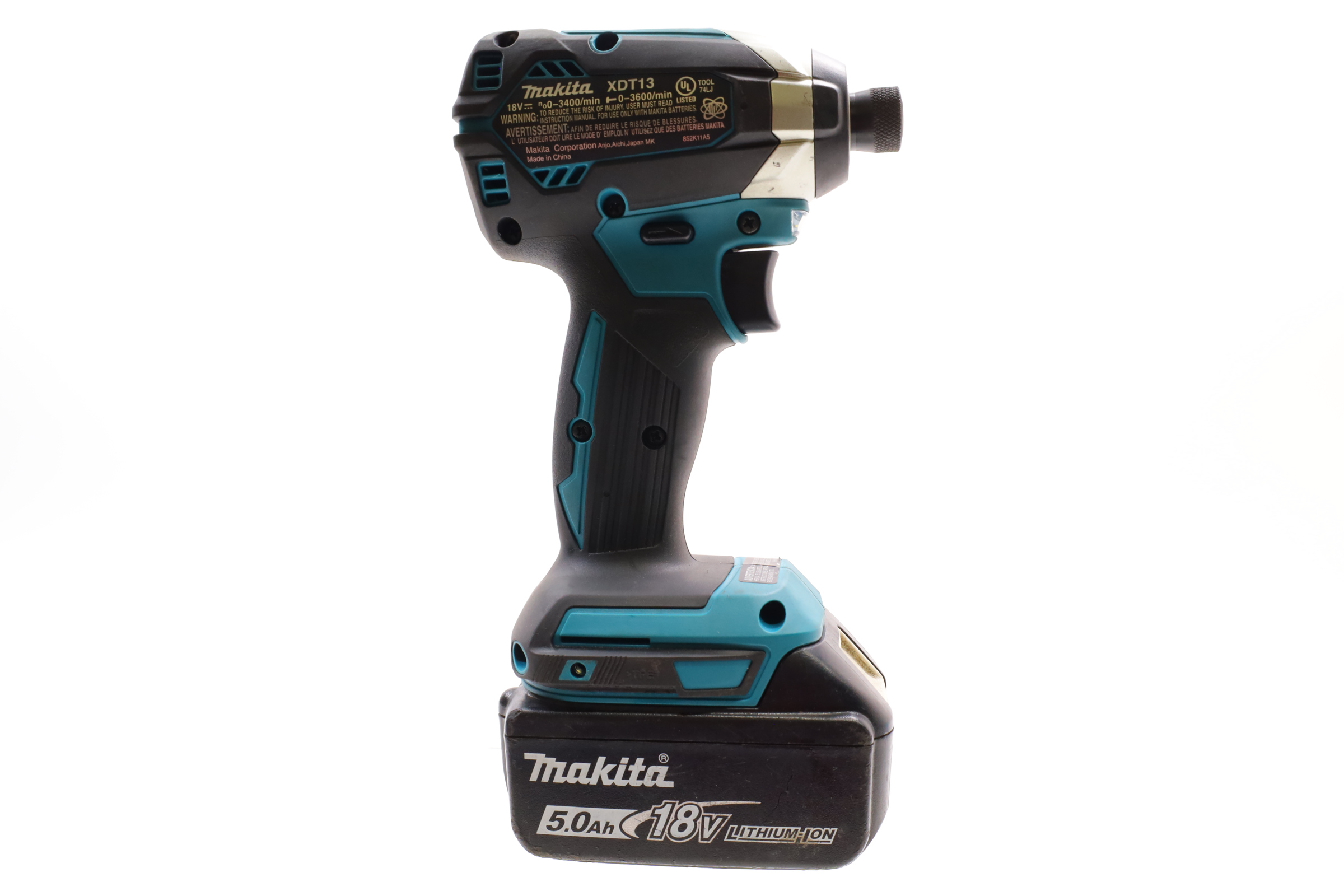 Designed for efficient and powerful fastening tasks. Featuring a BL Brushless Motor, it provides up to 1,500 in. lbs. of maximum torque with variable speed options of 0-3,400 RPM and 0-3,600 IPM. The motor operates without carbon brushes, ensuring cooler and more efficient performance with extended tool life. Its compact design measures 5 inches in length and weighs 3.3 lbs. (with battery), making it easy to handle and reducing user fatigue. The driver includes a 1/4-inch hex chuck for quick bit changes, an ergonomic rubberized grip for comfort, and twin LED lights to illuminate dark workspaces. Built with an aluminum gear housing, it offers durability for demanding job sites. This tool is part of Makita's expanding 18V lithium-ion series and integrates Star Protection technology to guard against overloading, over-discharging, and overheating.
