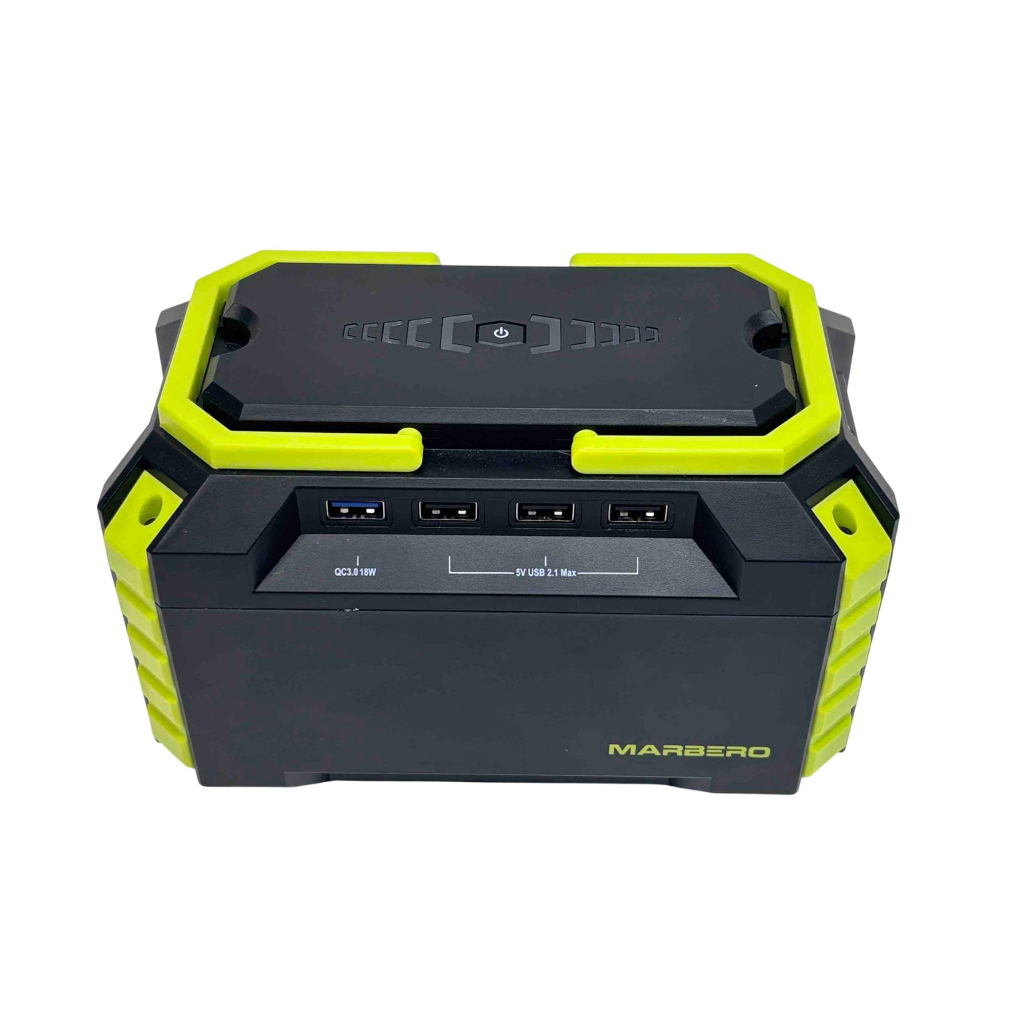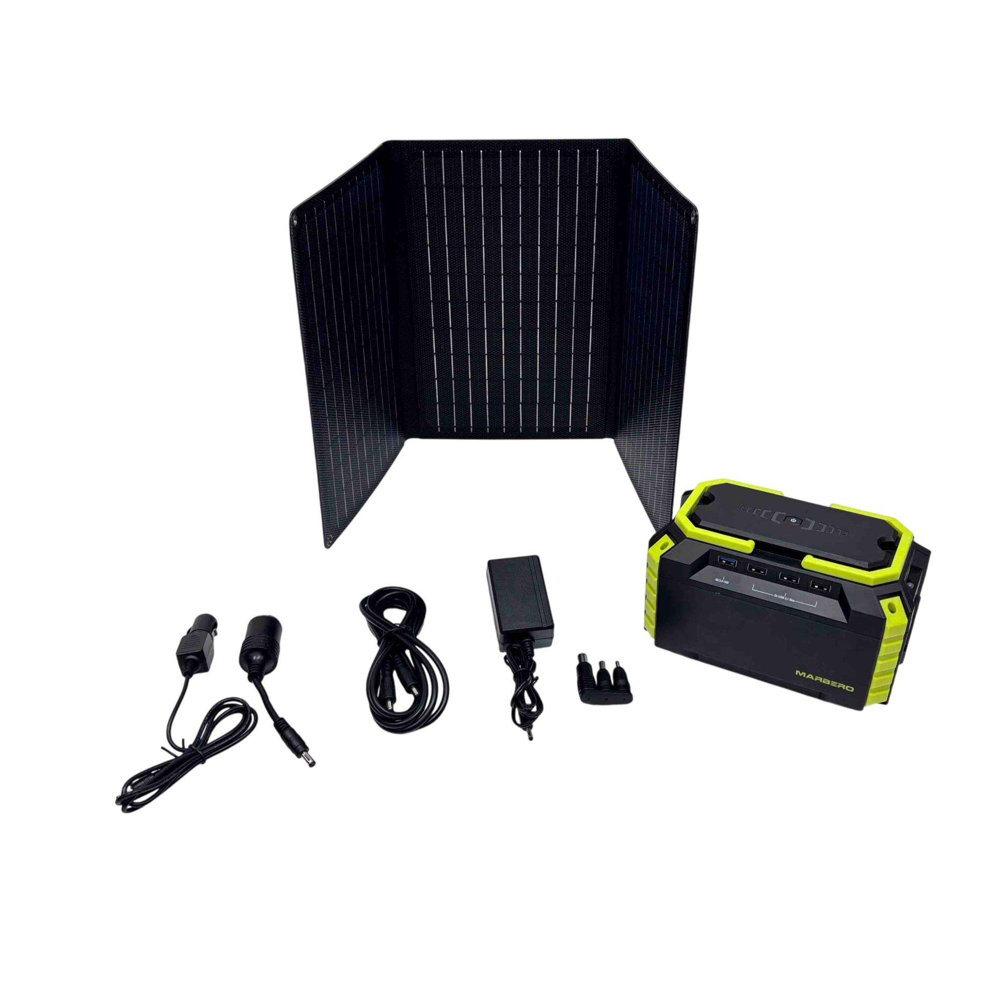 Stay powered up wherever you go with the MARBERO M270 Portable Power Station, featuring a robust 150Wh lithium-ion battery and four USB ports for versatile charging. This compact power generator comes complete with a foldable solar panel, charging cables, and adapters—ideal for outdoor adventures, emergency backup, or off-grid living. Its rugged design, high-capacity battery, and solar compatibility make it a reliable and eco-friendly choice for keeping all your devices running.
