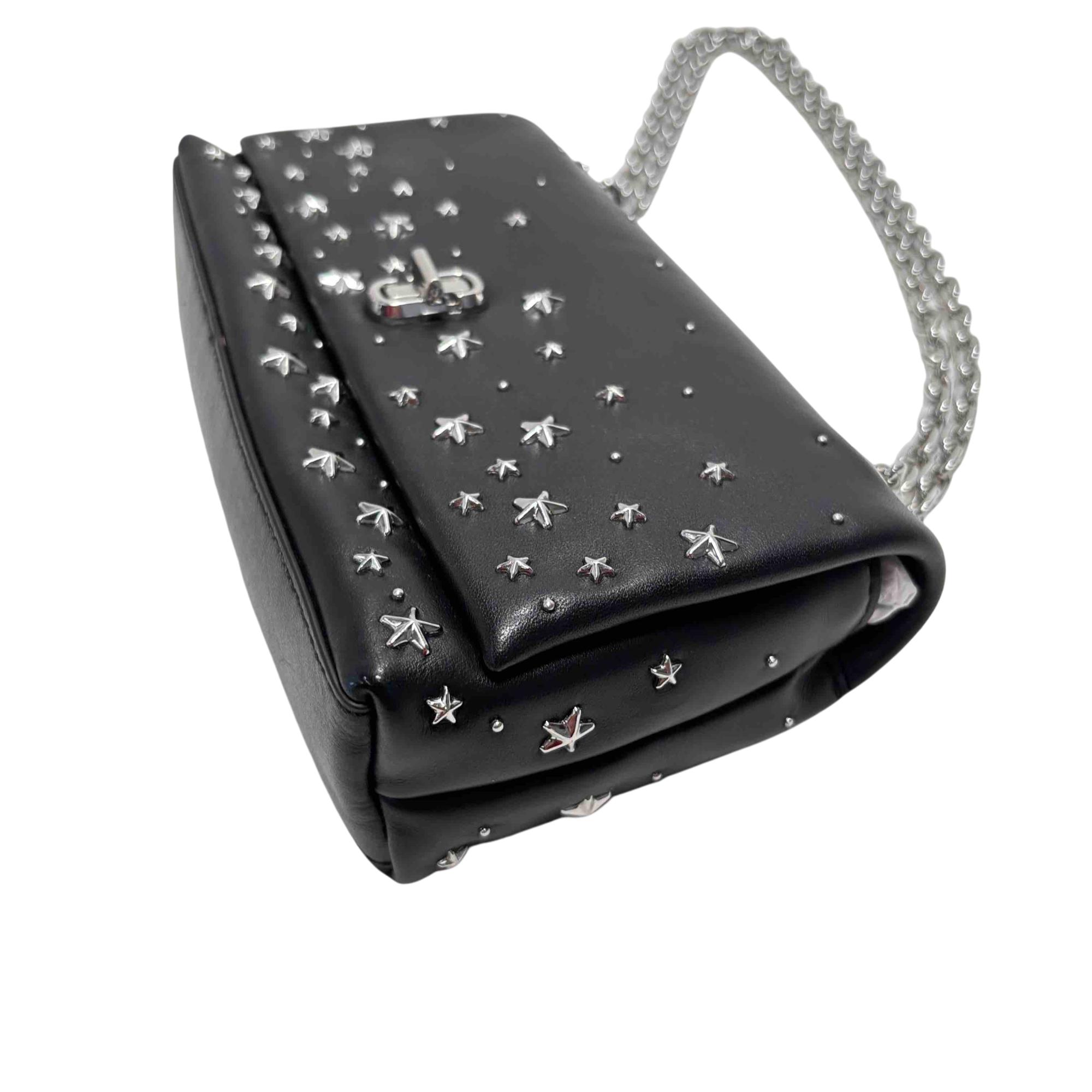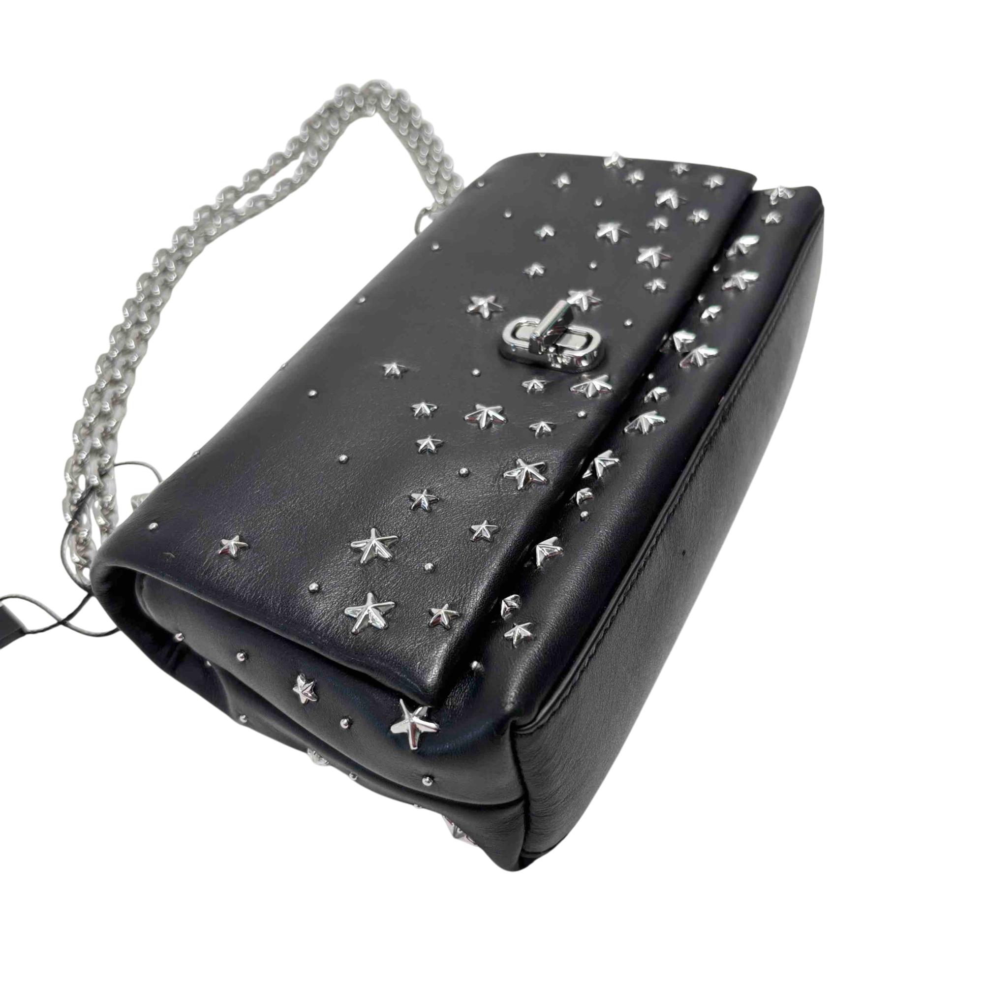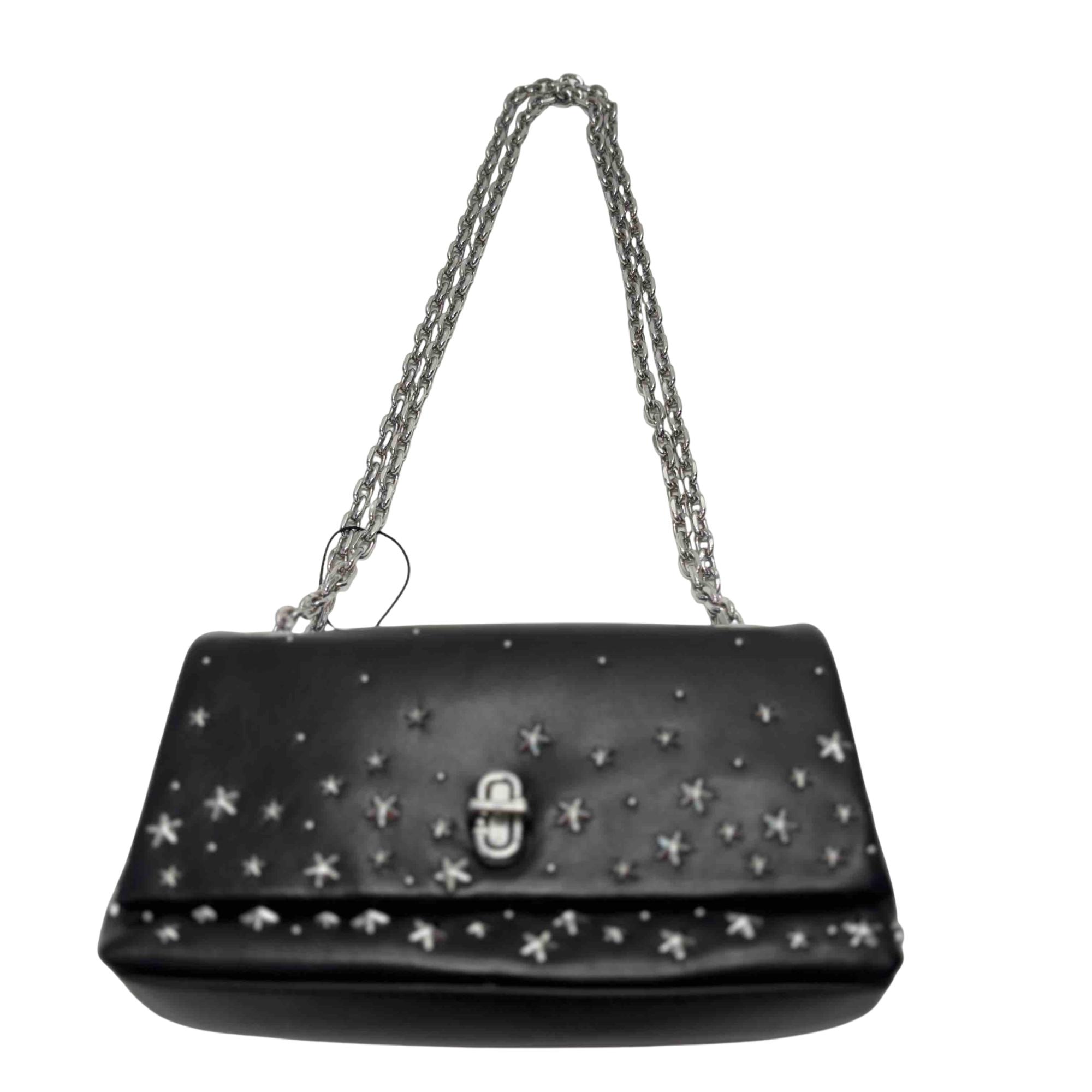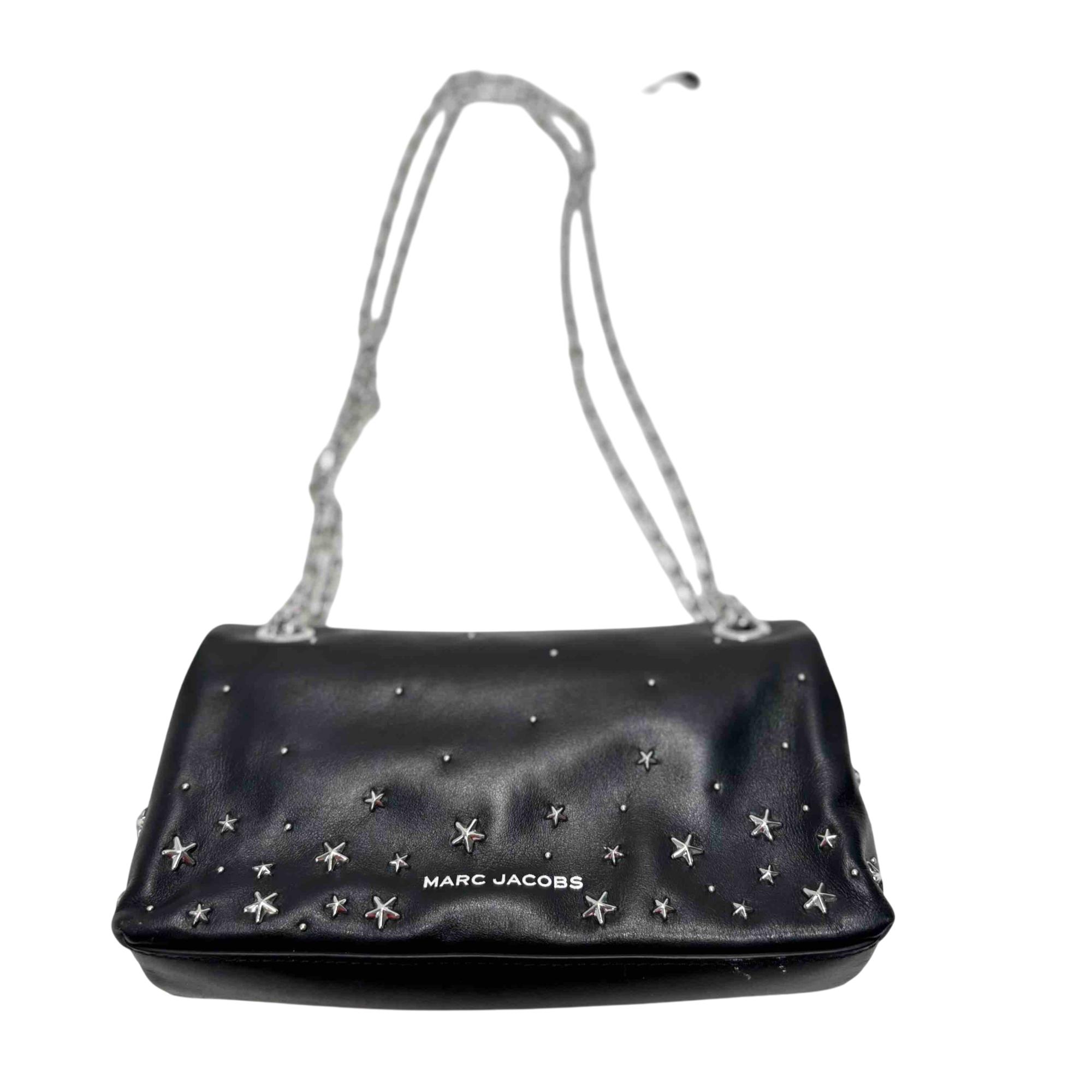 This eye-catching Marc Jacobs Star Studded Shoulder Bag features luxurious black leather adorned with silver star studs and a chic dual silver chain strap. Ideal for both special occasions and everyday glam, this designer handbag boasts elegance while offering enough space for your essentials. Carry a piece that perfectly blends edgy design with iconic style and quality craftsmanship.