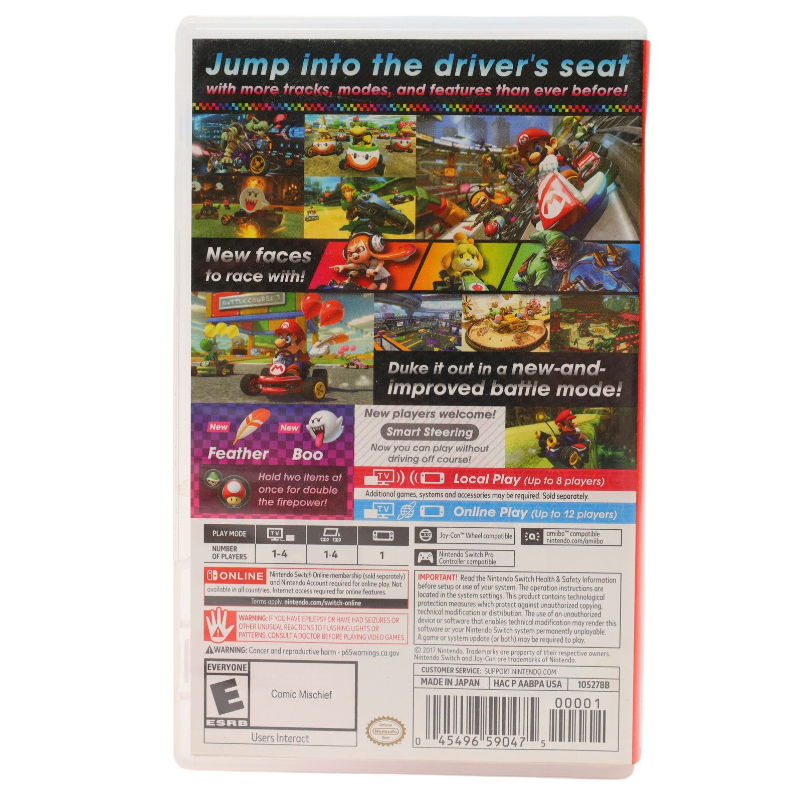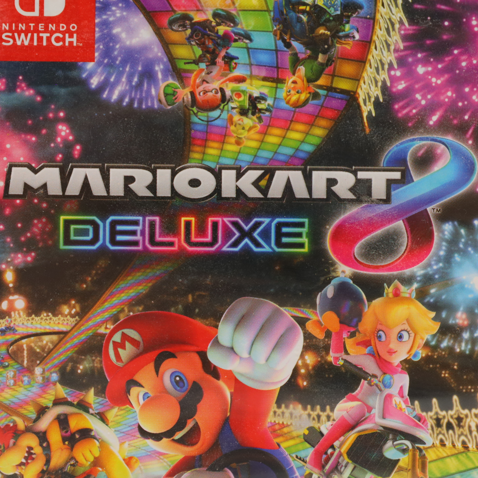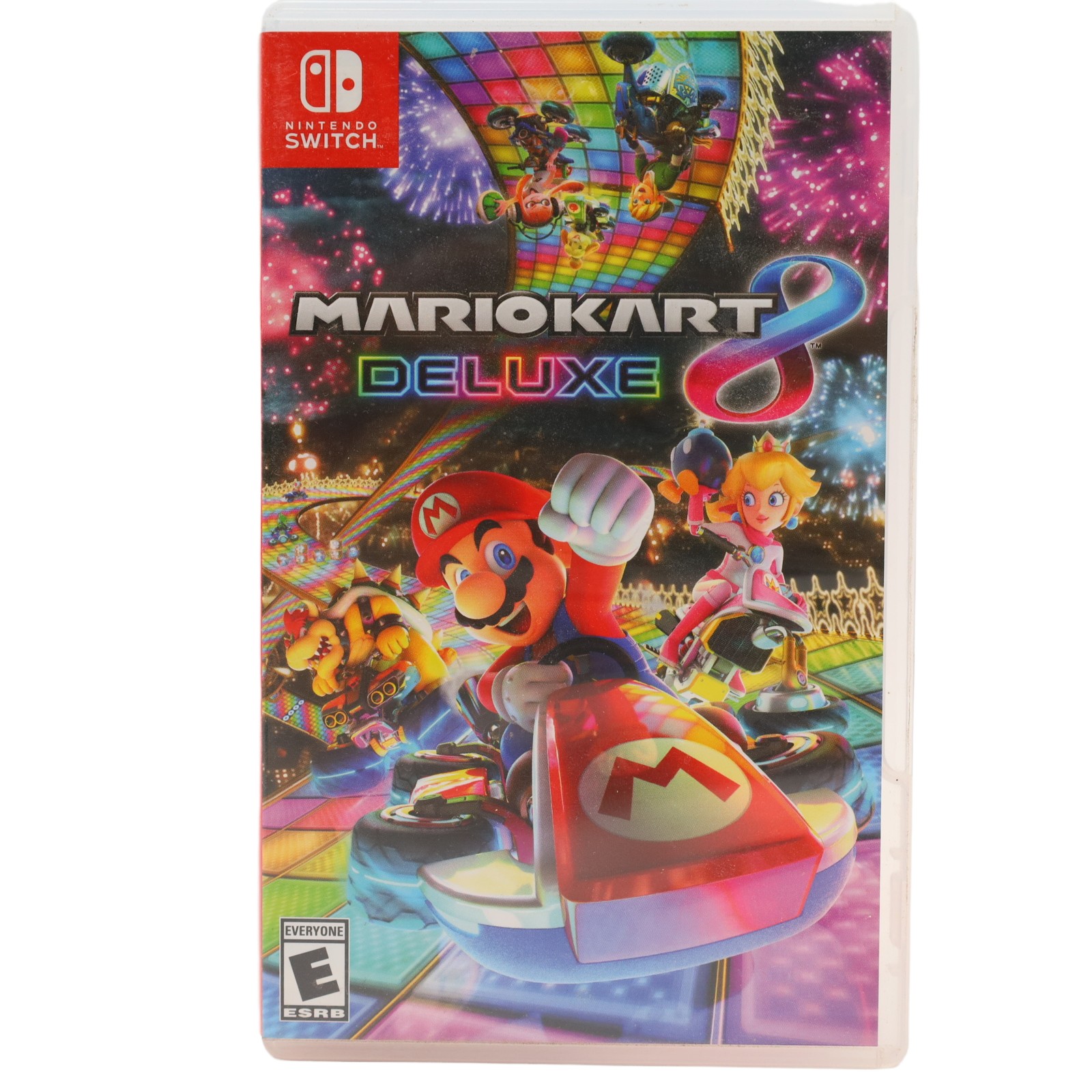 Hit the road with the definitive version of Mario Kart 8 and play anytime, any-where! Race your friends or battle them in a revised battle mode on new and returning battle courses. Play locally in up to 4-player multiplayer in 1080p while playing in TV Mode. Every track from the Wii U version, including DLC, makes a glorious return. Plus, the Inklings appear as all-new guest characters, along with returning favorites, such as King Boo, Dry Bones, and Bowser Jr.!