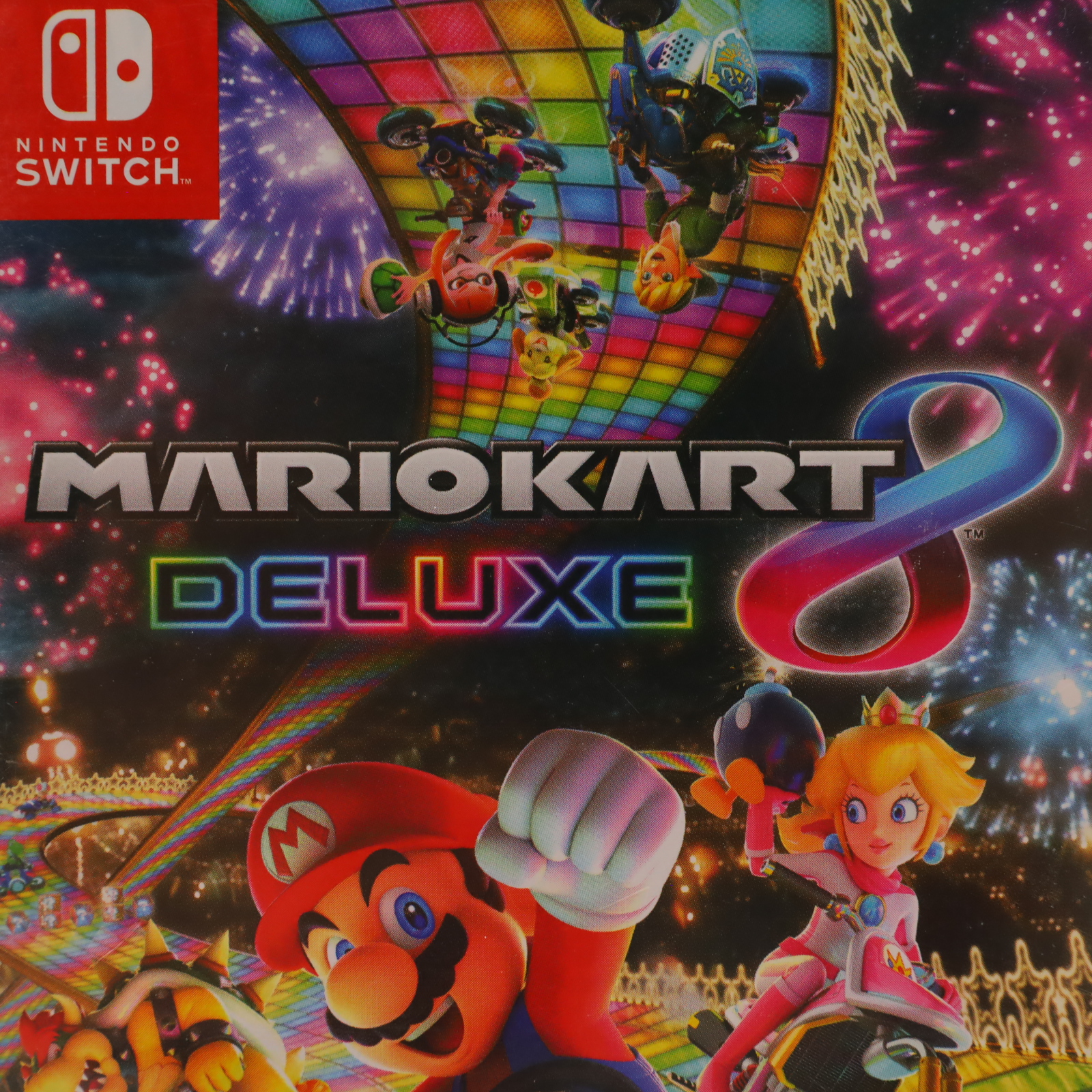Hit the road with the definitive version of Mario Kart 8 and play anytime, any-where! Race your friends or battle them in a revised battle mode on new and returning battle courses. Play locally in up to 4-player multiplayer in 1080p while playing in TV Mode. Every track from the Wii U version, including DLC, makes a glorious return. Plus, the Inklings appear as all-new guest characters, along with returning favorites, such as King Boo, Dry Bones, and Bowser Jr.!