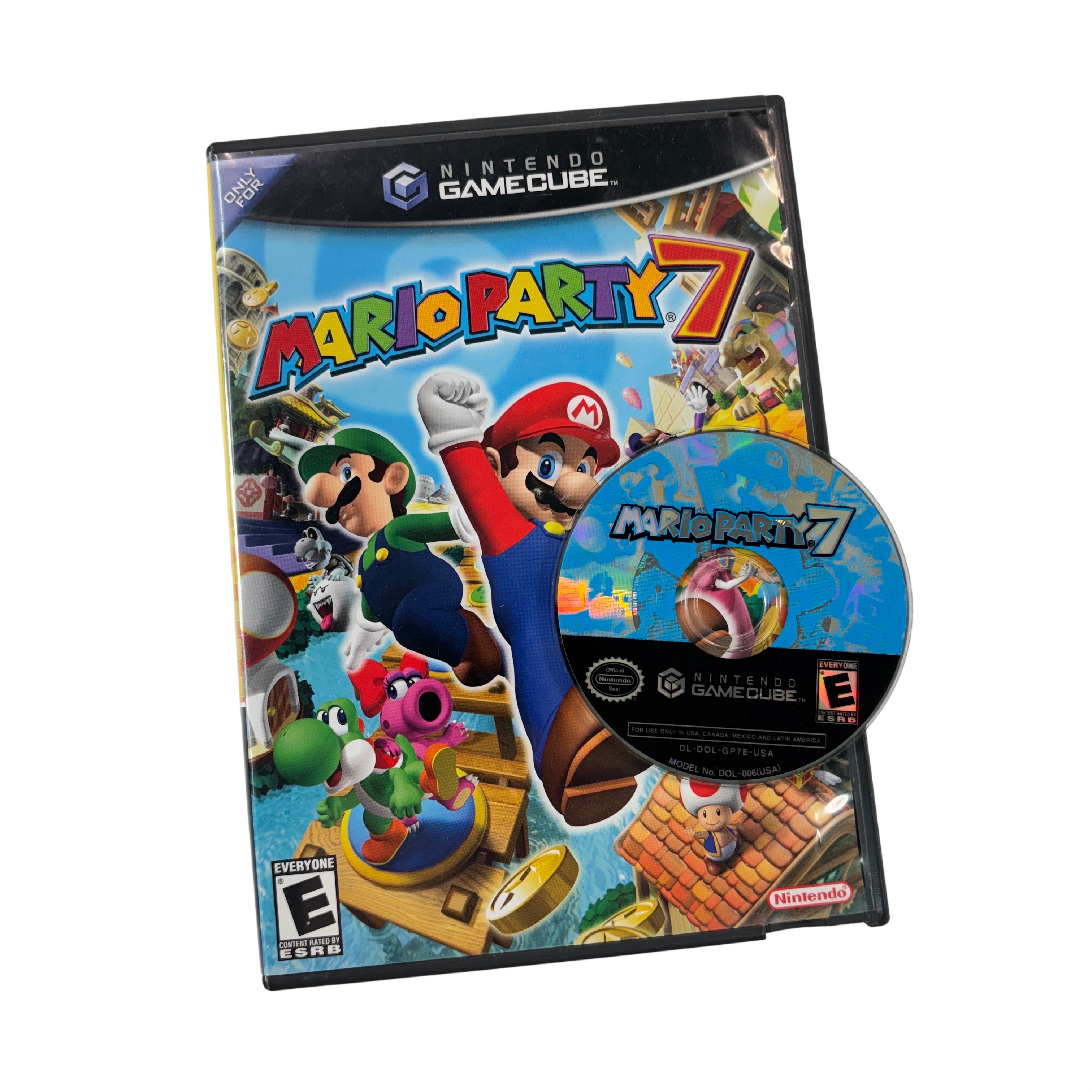Nintendo Mario Party 7 for the GameCube is a fun-filled multiplayer video game featuring Mario and friends. This game disc supports up to eight players with the included GameCube microphone and offers 86 new minigames across various exotic boards. Rated E for Everyone, it provides engaging party gameplay suitable for all ages. The package includes the original game disc and case, perfect for collectors and fans of the Mario Party series.